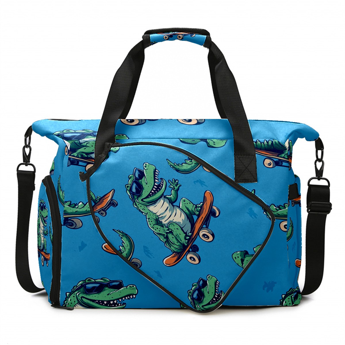 Pickleball Tote Bag Carryall for Paddles Balls and Accessories, Portable Lightweight Gear Bag for Players(Alligator Riding)