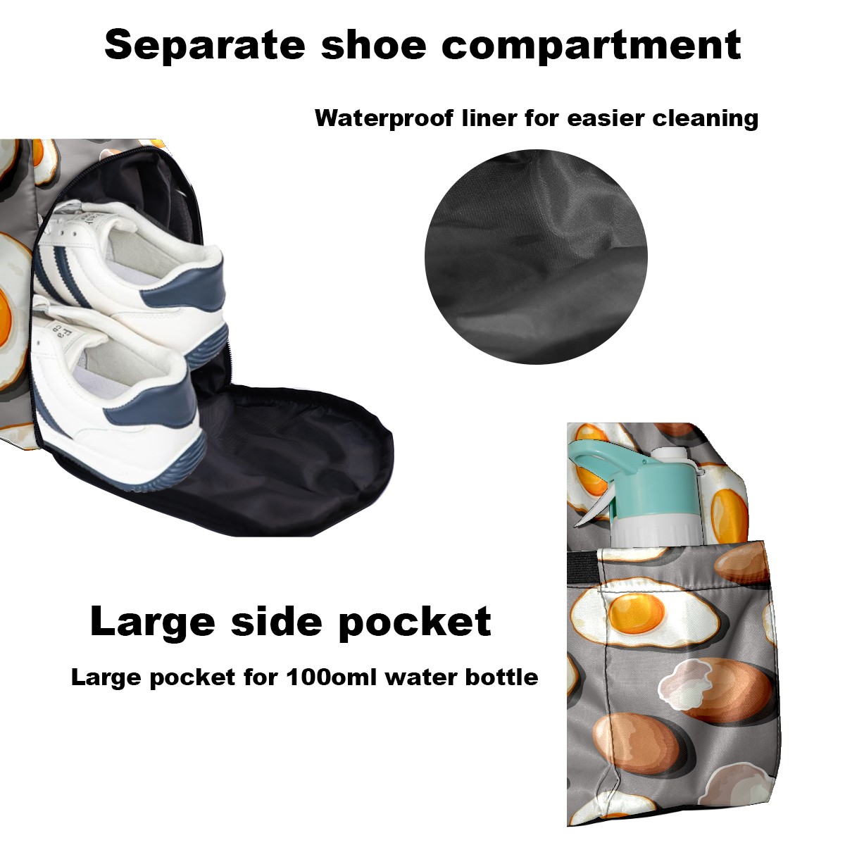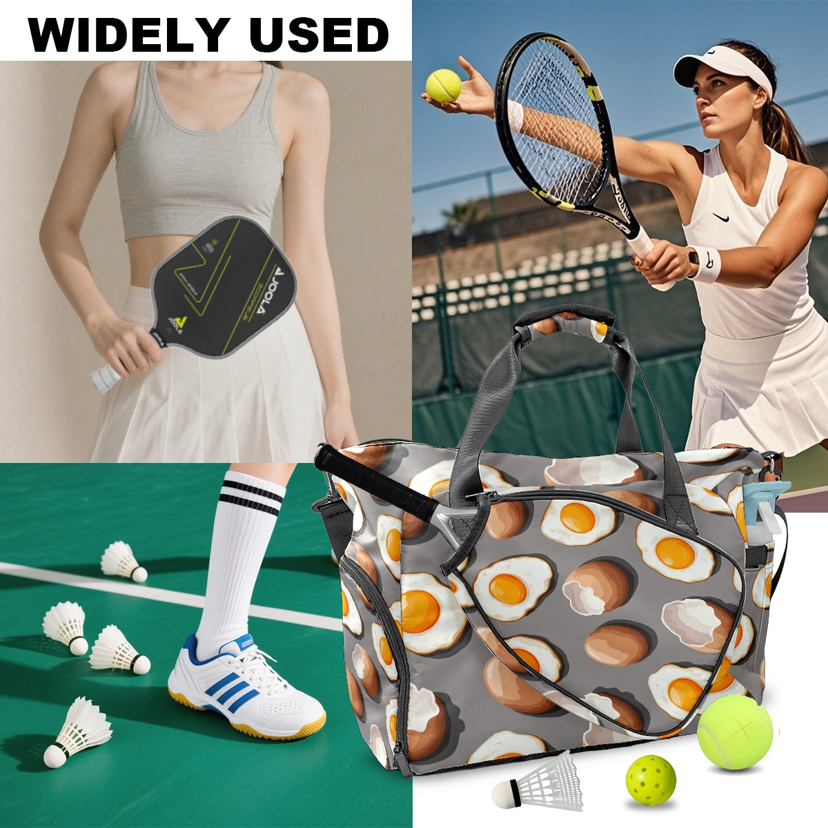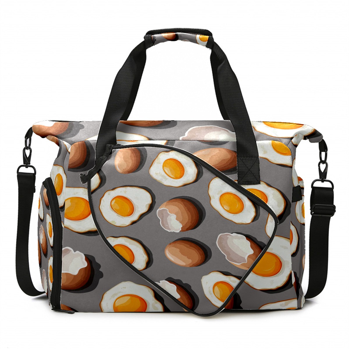 Pickleball Tote Bag Carryall for Paddles Balls and Accessories, Portable Lightweight Gear Bag for Players(Fried Eggs And Eggshells)