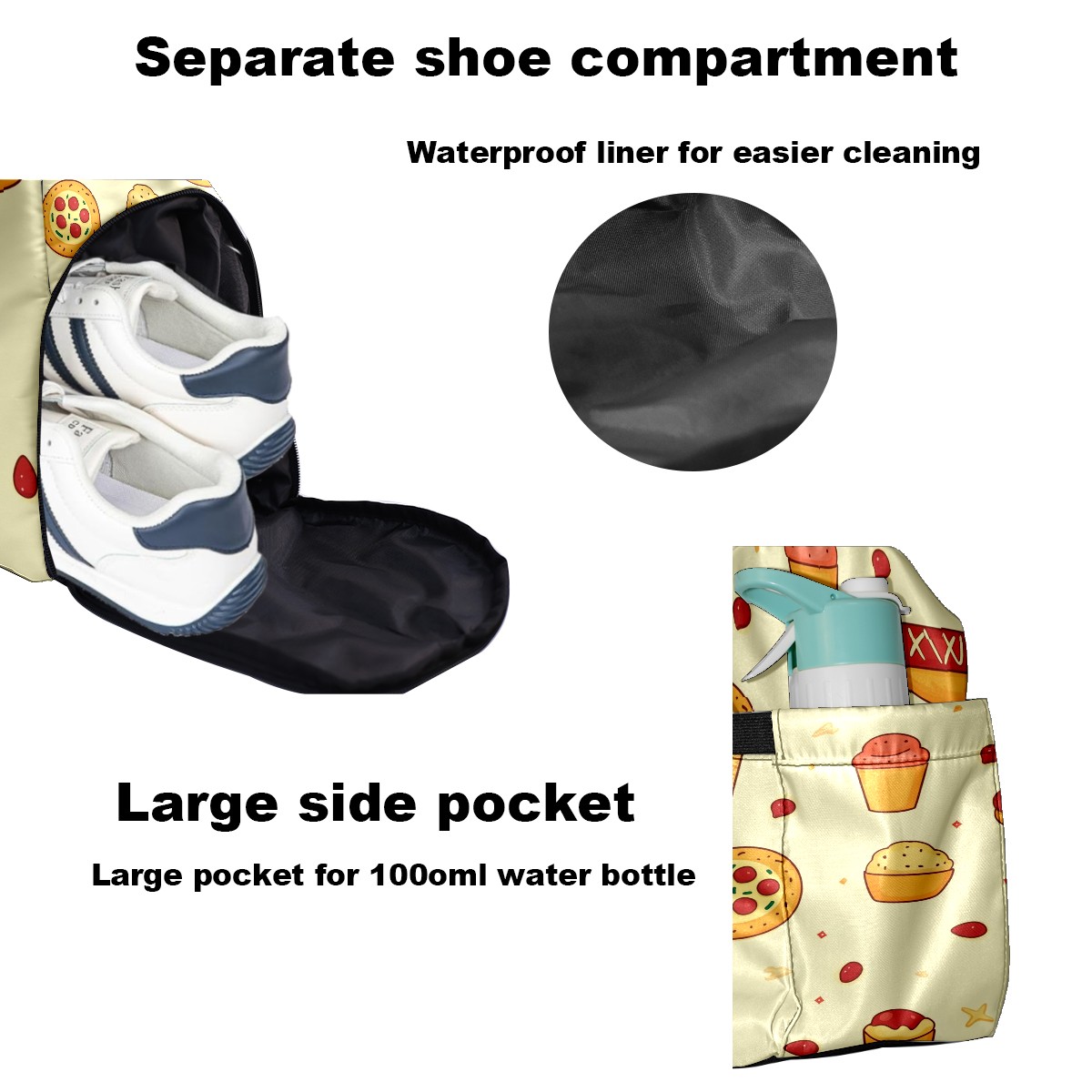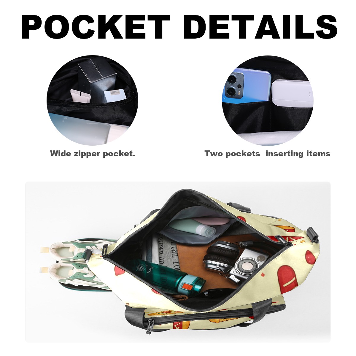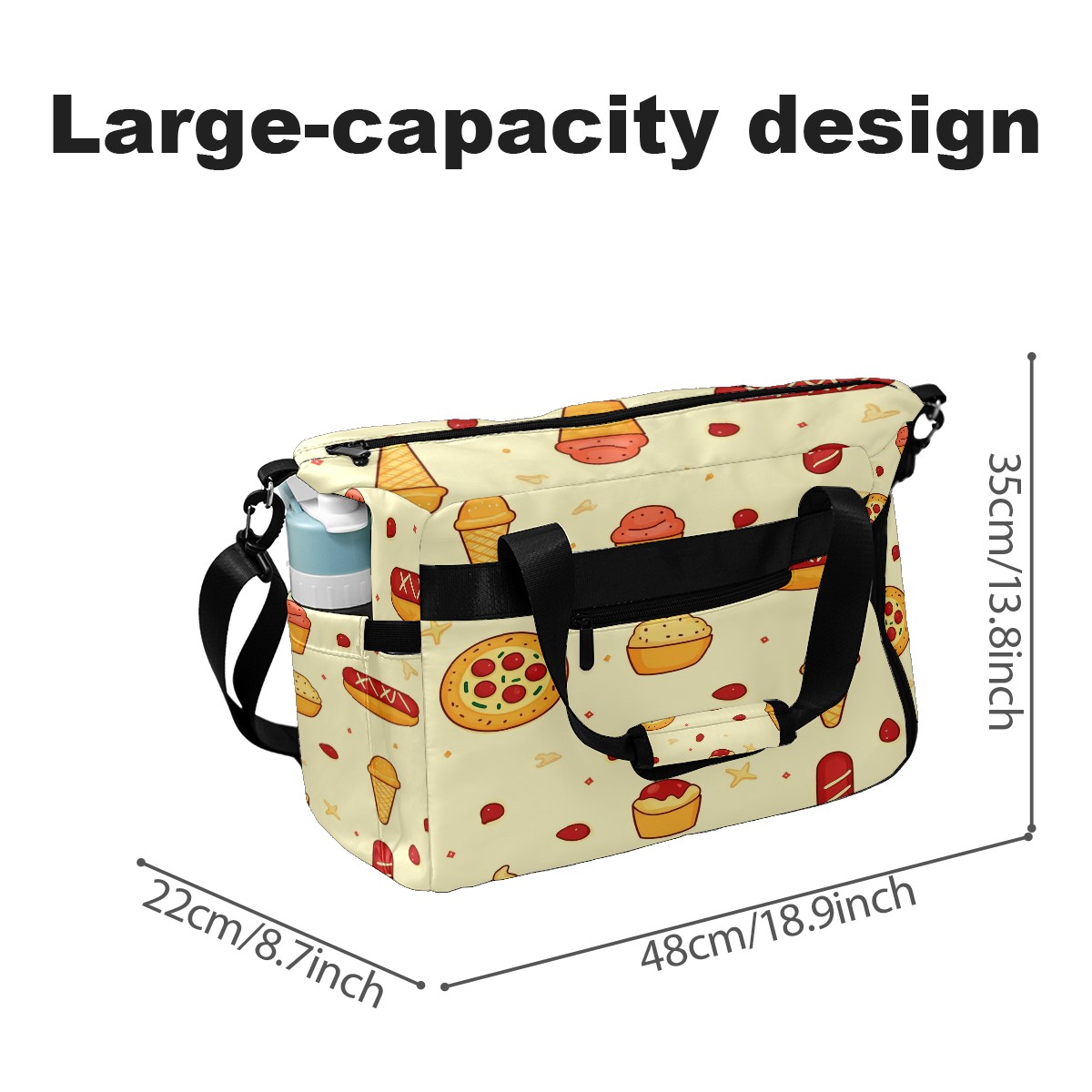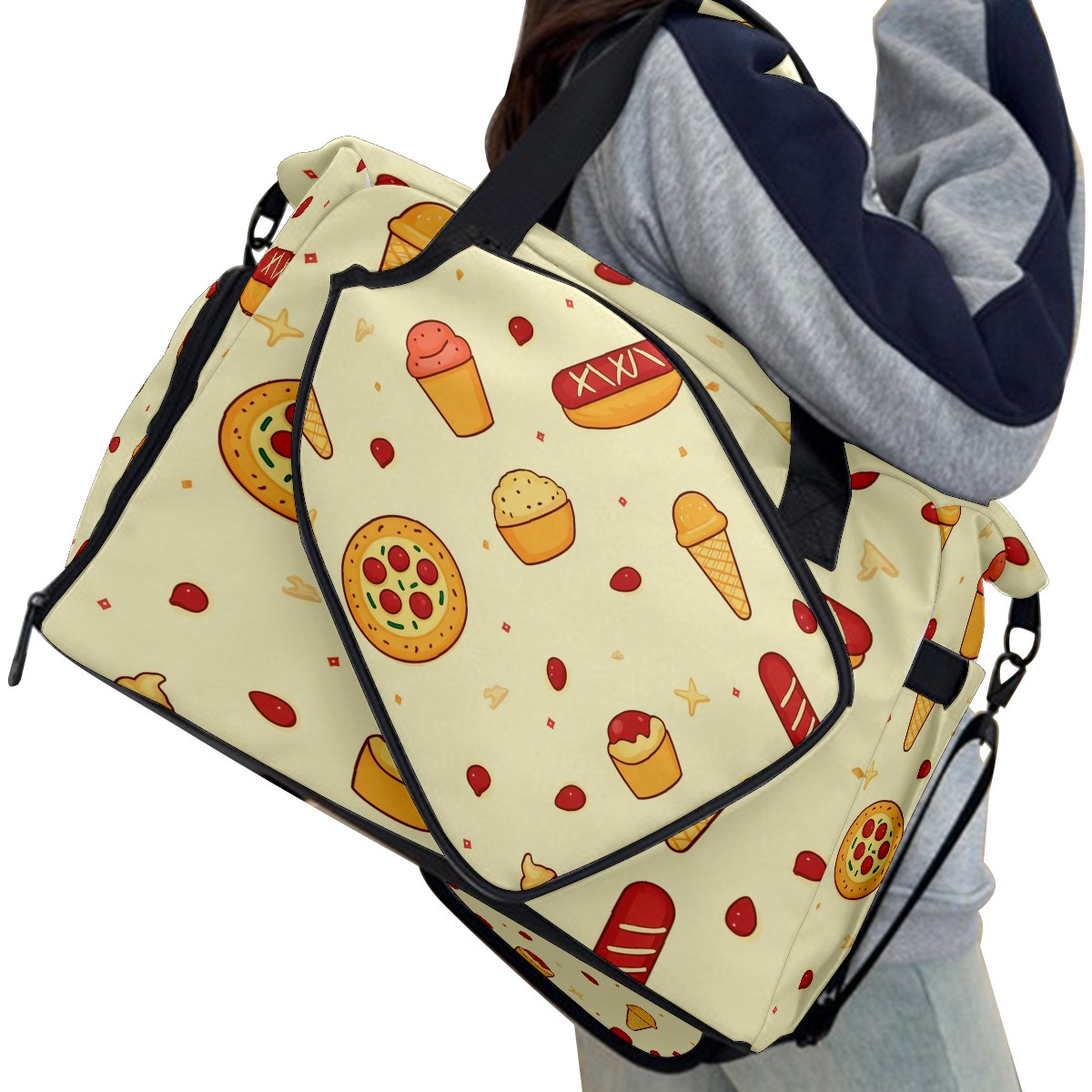 Pickleball Tote Bag Carryall for Paddles Balls and Accessories, Portable Lightweight Gear Bag for Players(Pizza And Hot Dog)