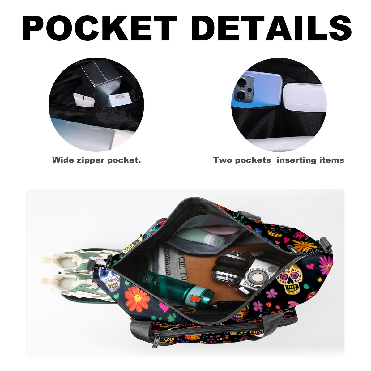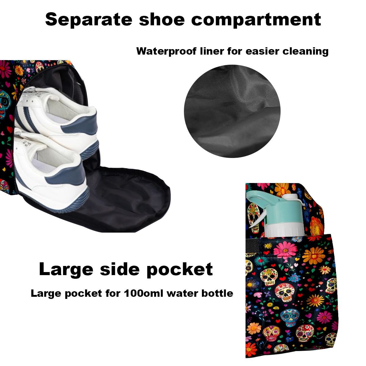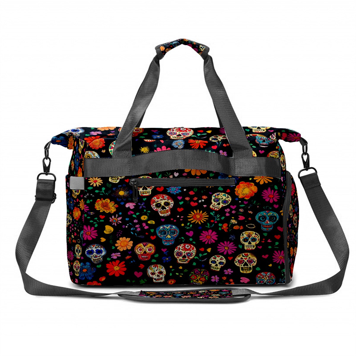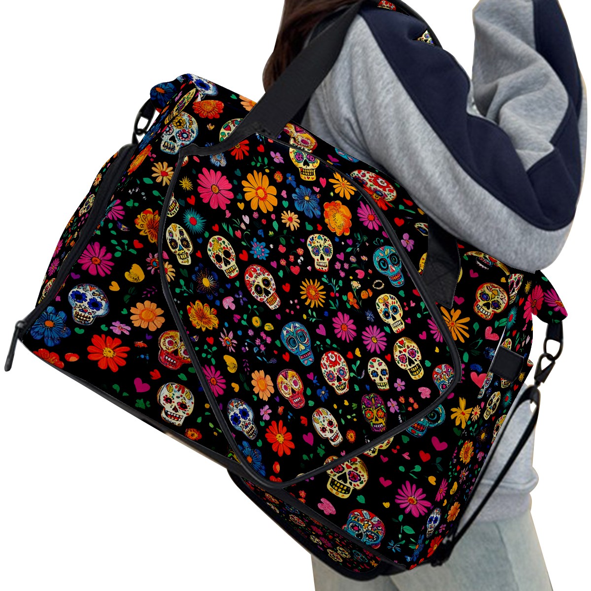 Pickleball Tote Bag Carryall for Paddles Balls and Accessories, Portable Lightweight Gear Bag for Players(Colorful Sugar Skulls And Flowers)