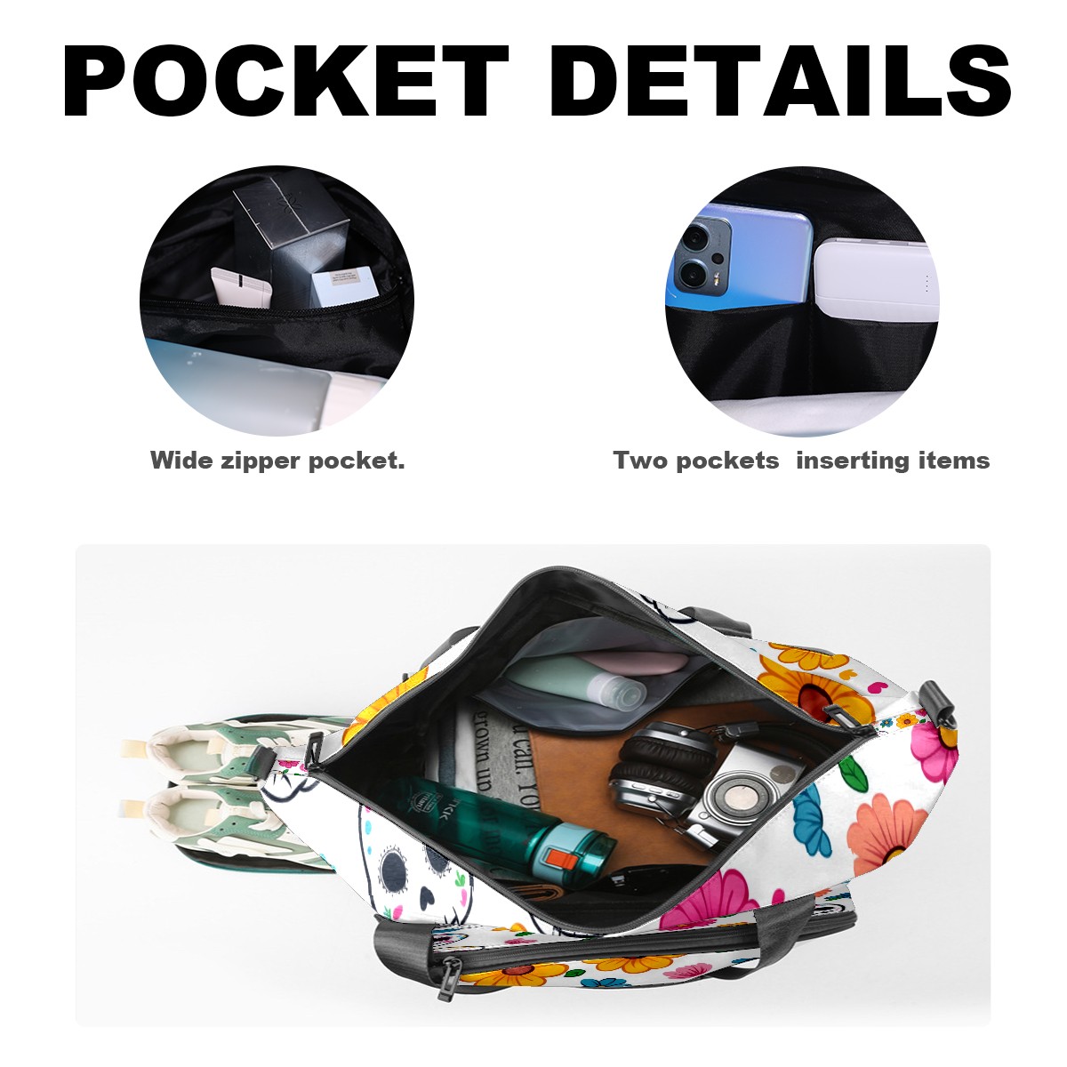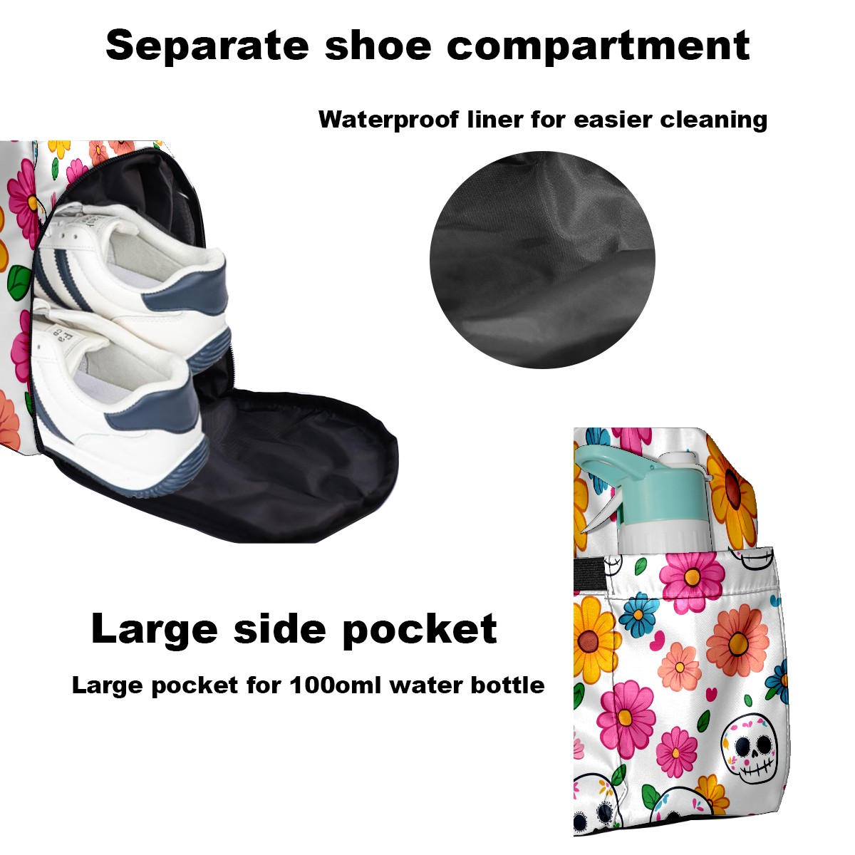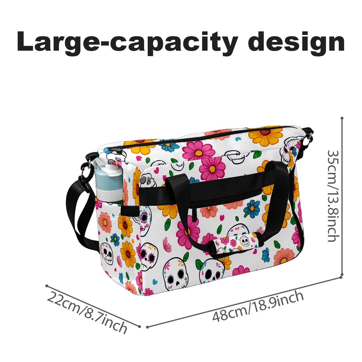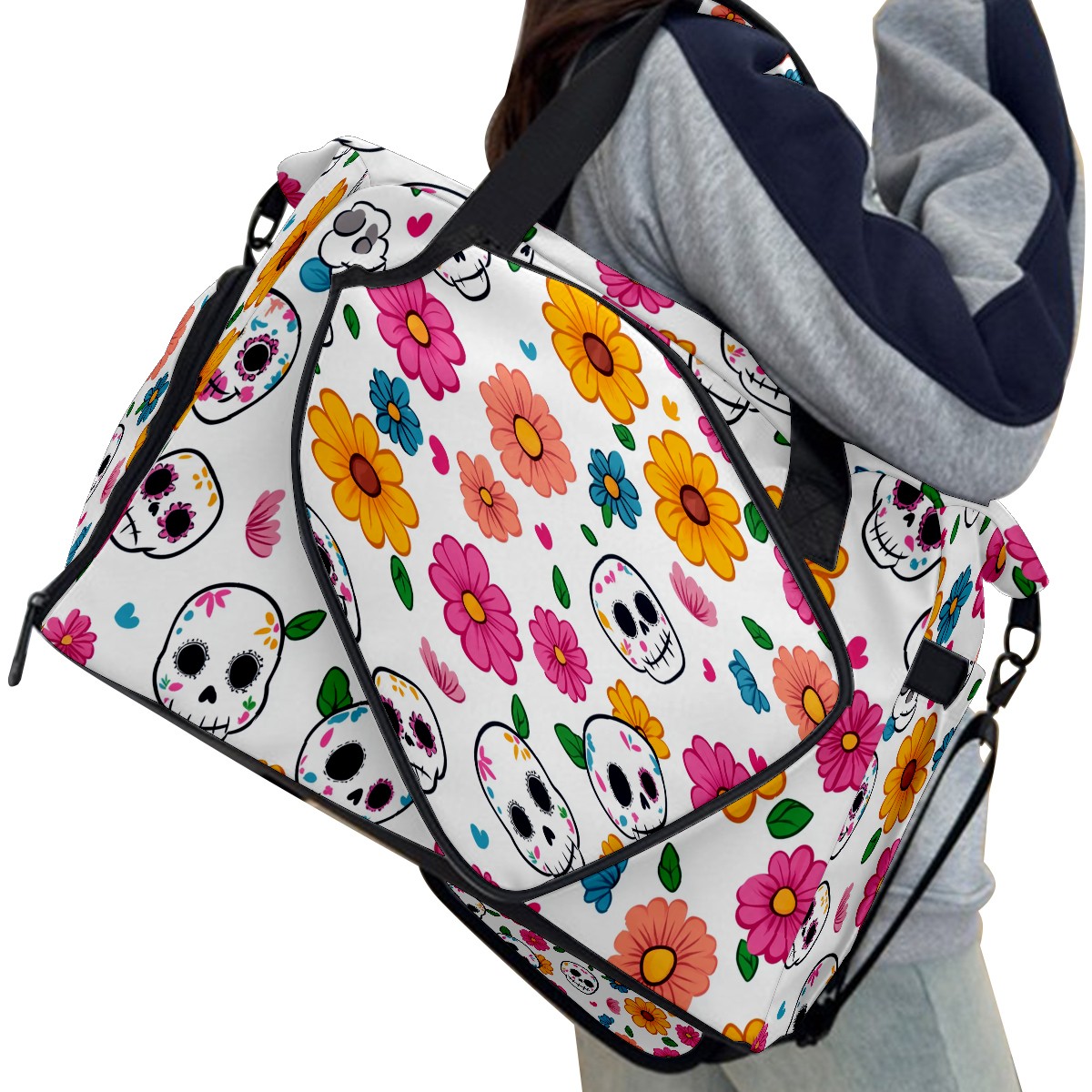 Pickleball Tote Bag Carryall for Paddles Balls and Accessories, Portable Lightweight Gear Bag for Players(Sugar Skulls)
