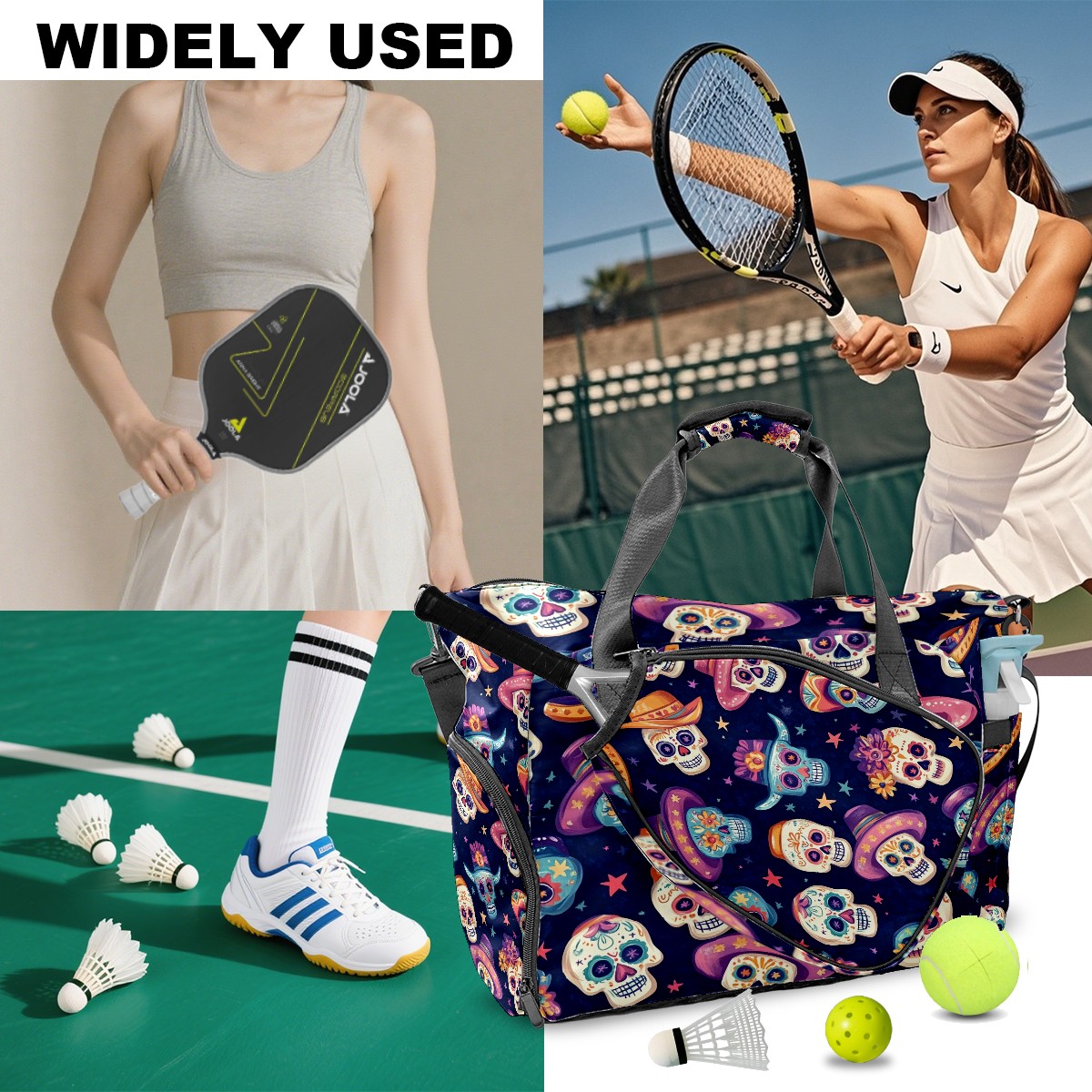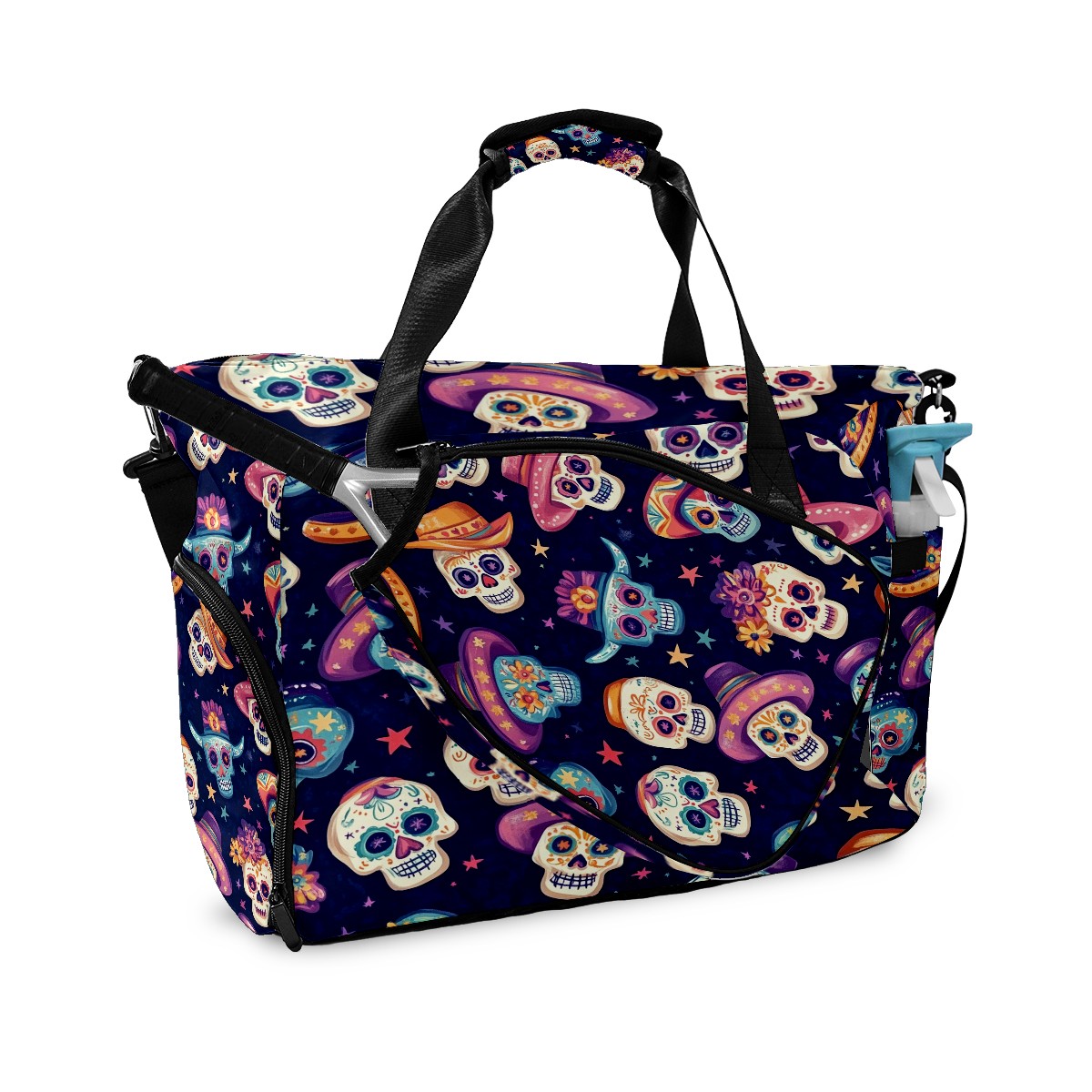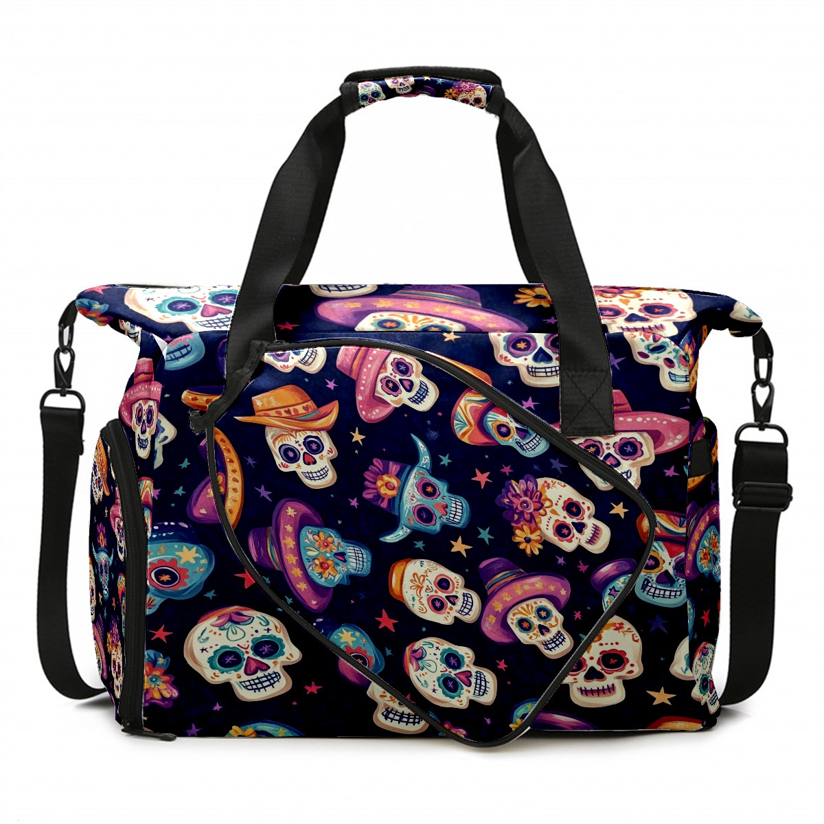 Pickleball Tote Bag Carryall for Paddles Balls and Accessories, Portable Lightweight Gear Bag for Players(Sugar Skulls And Mexican Hat)