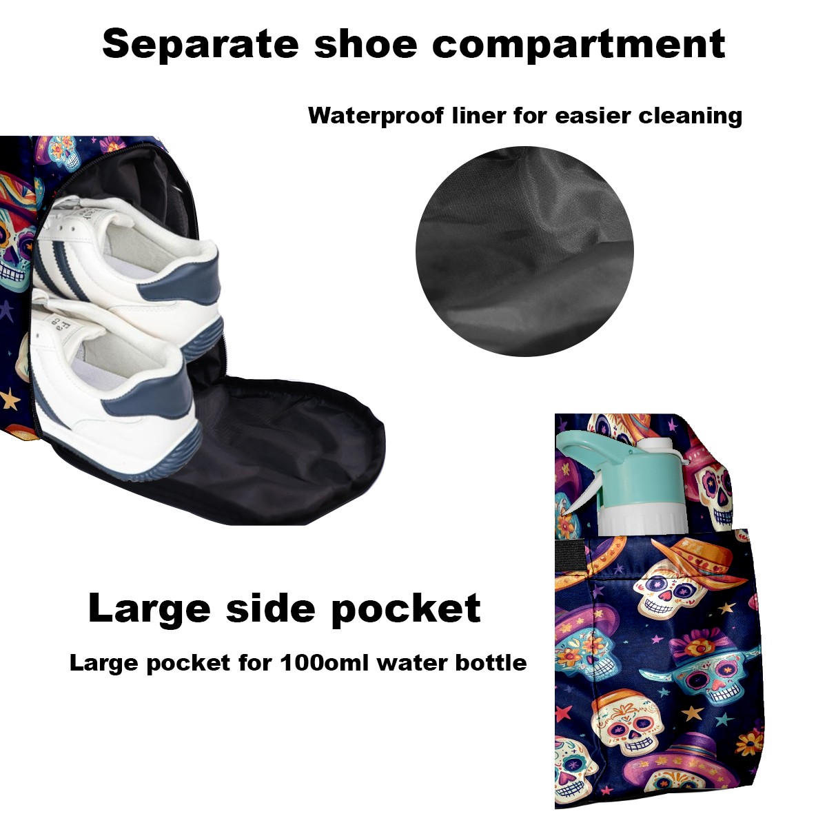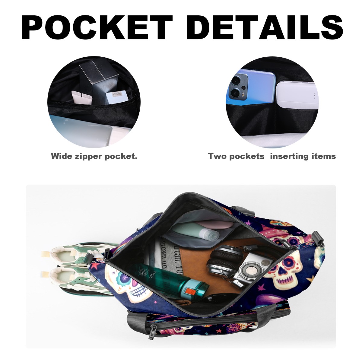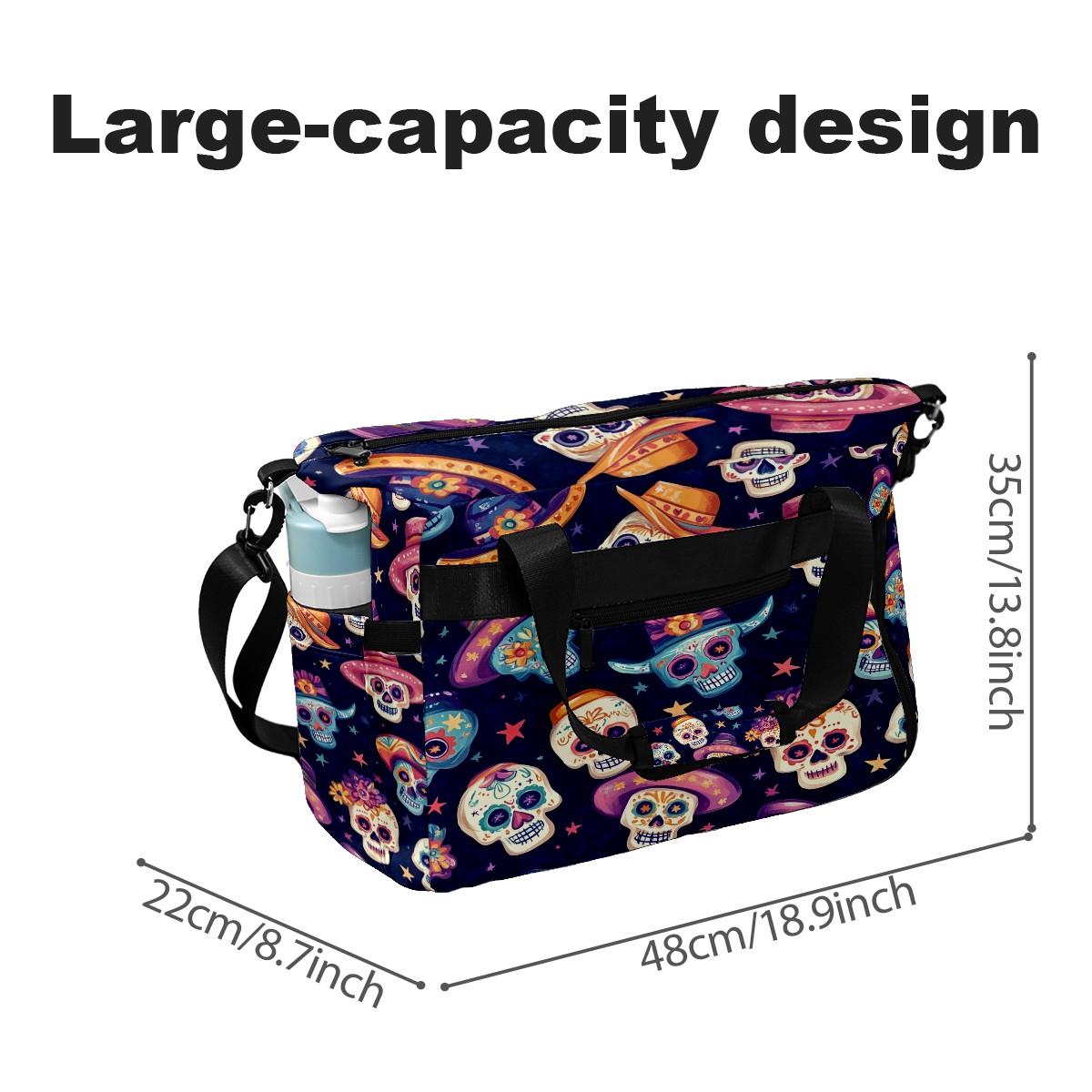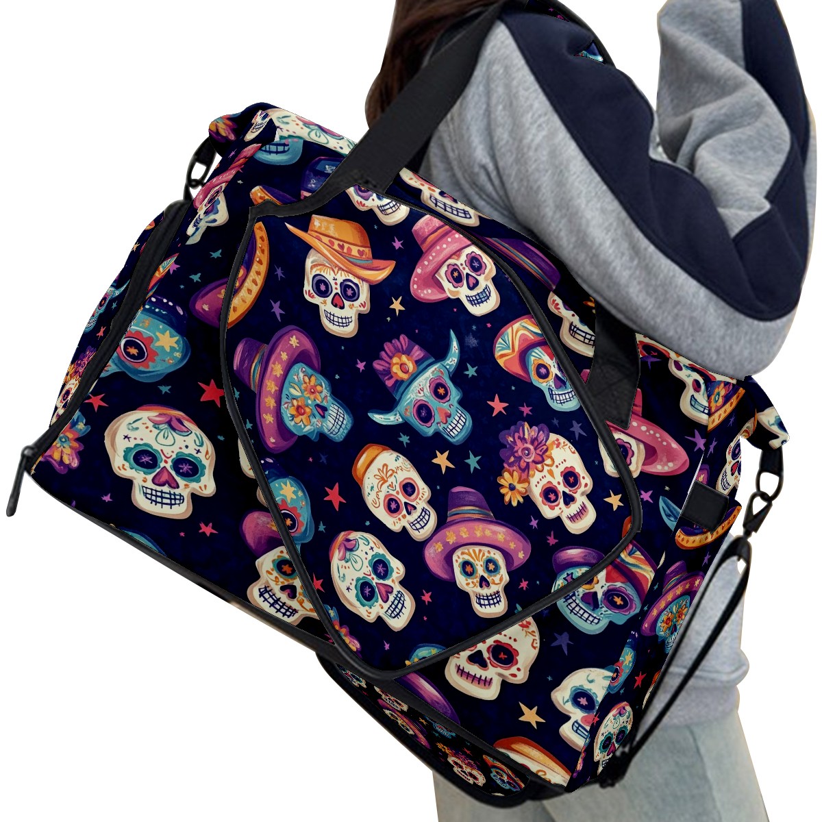 Pickleball Tote Bag Carryall for Paddles Balls and Accessories, Portable Lightweight Gear Bag for Players(Sugar Skulls And Mexican Hat)