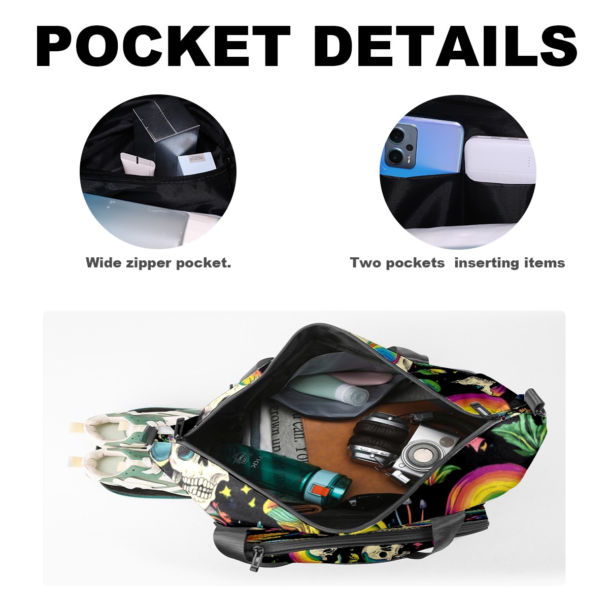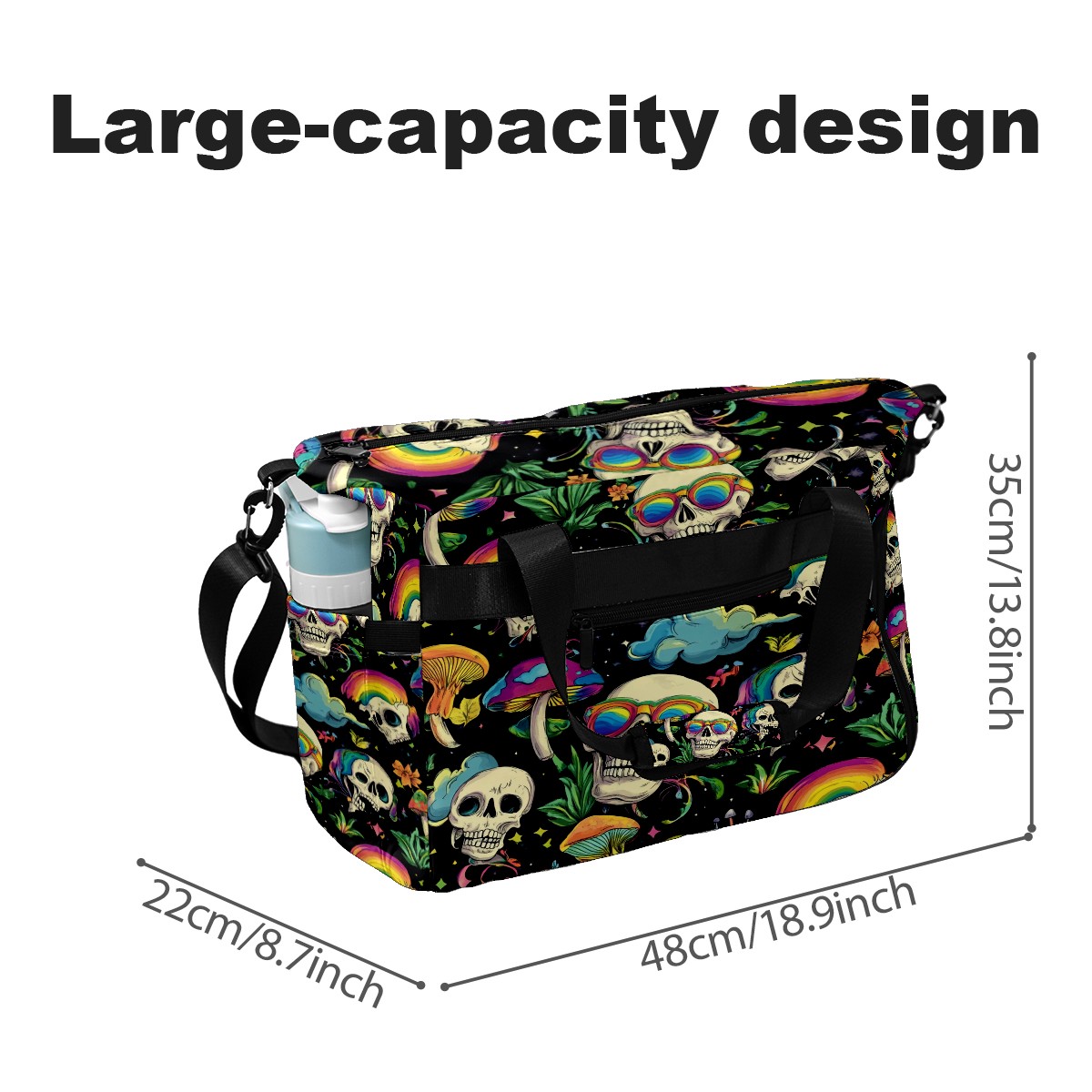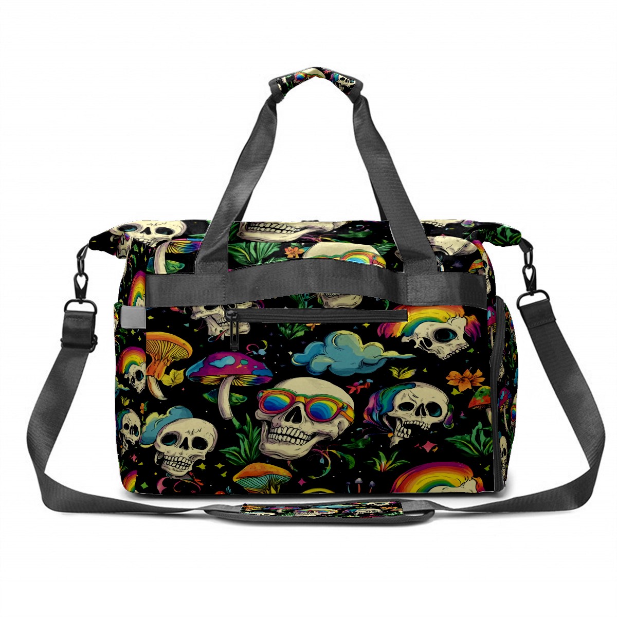 Pickleball Tote Bag Carryall for Paddles Balls and Accessories, Portable Lightweight Gear Bag for Players(Skulls With Rainbow Eyes Mushrooms)