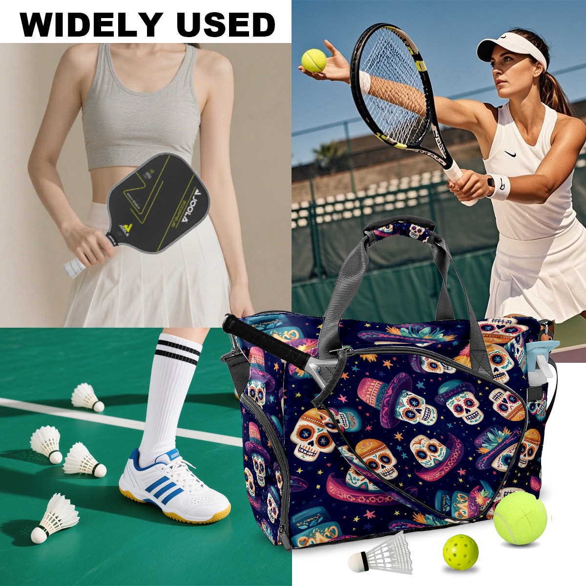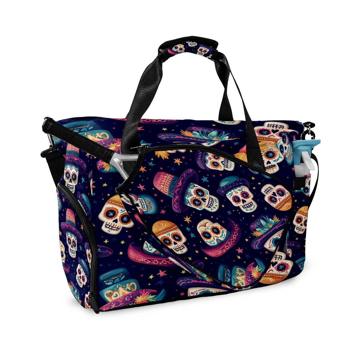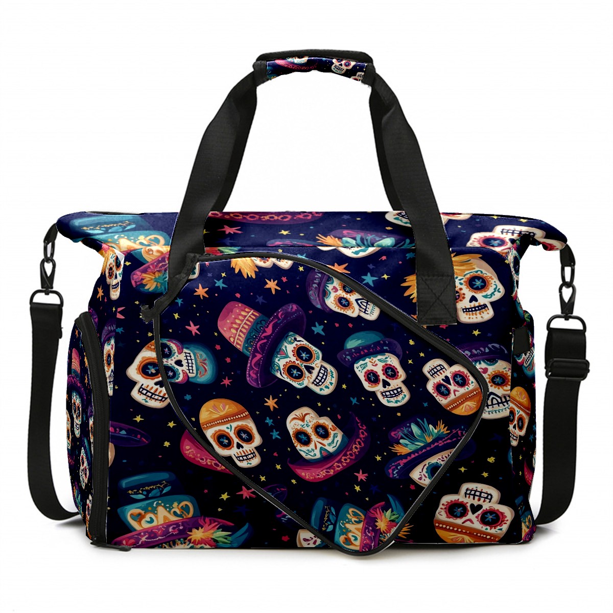Pickleball Tote Bag Carryall for Paddles Balls and Accessories, Portable Lightweight Gear Bag for Players(Skulls And Mexican Hat)