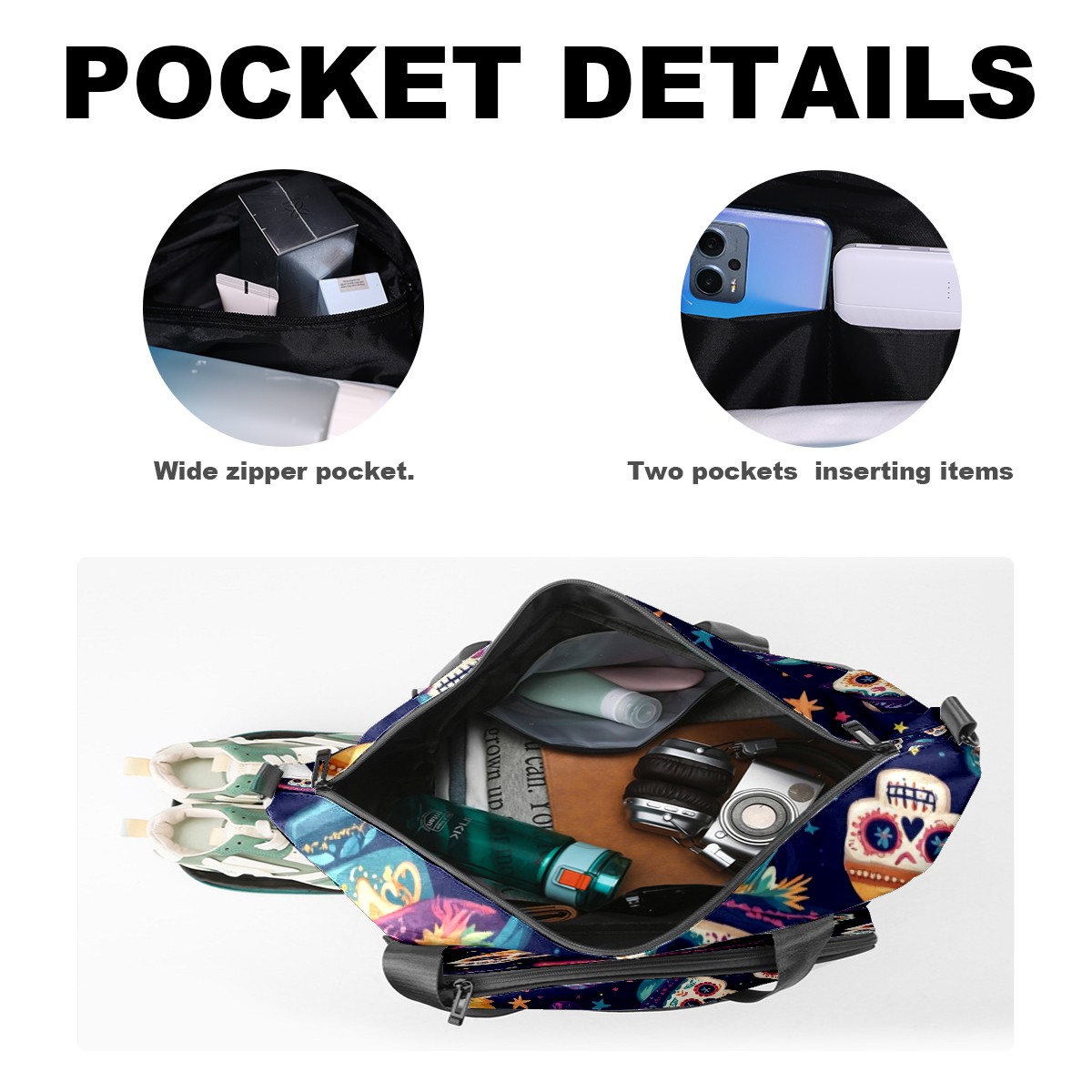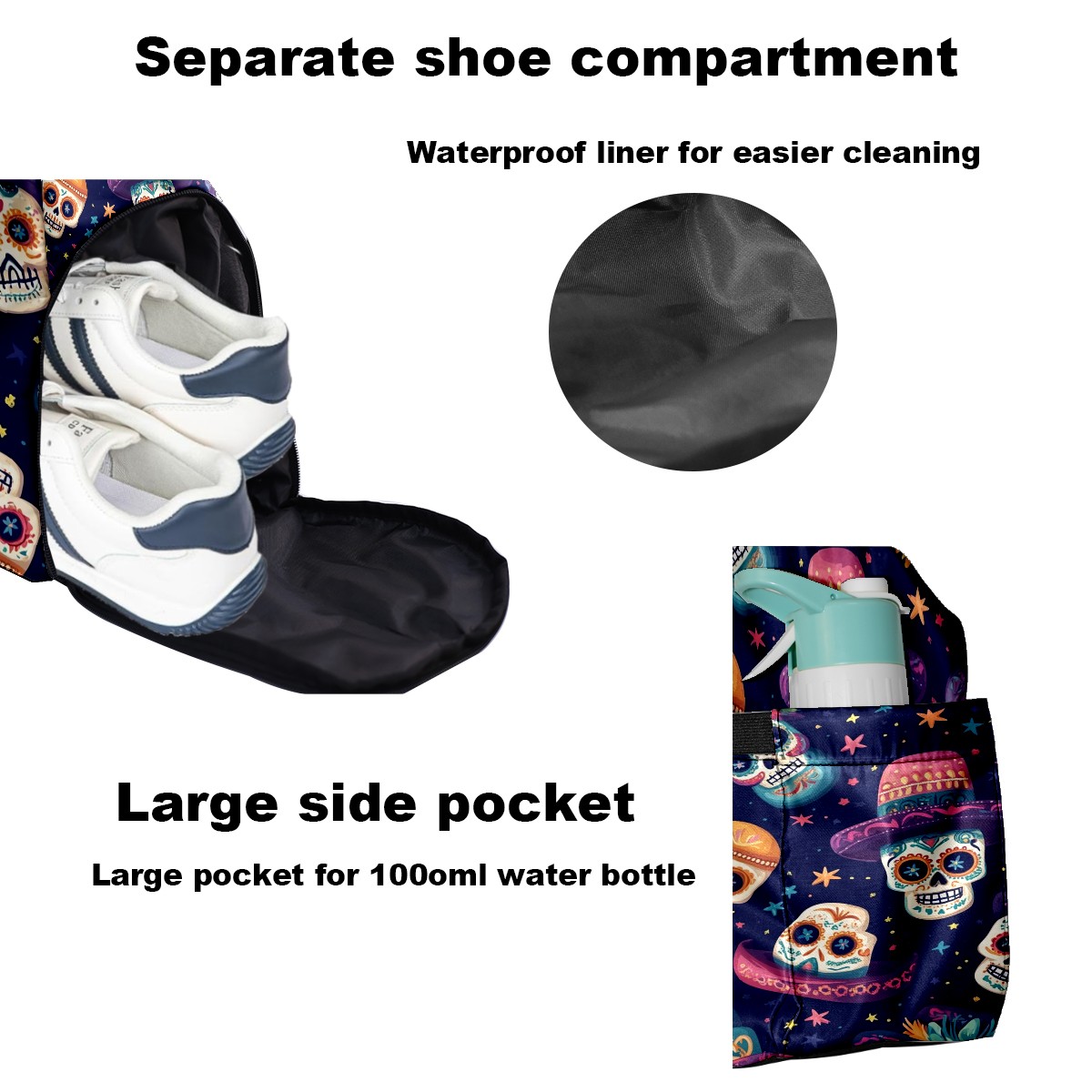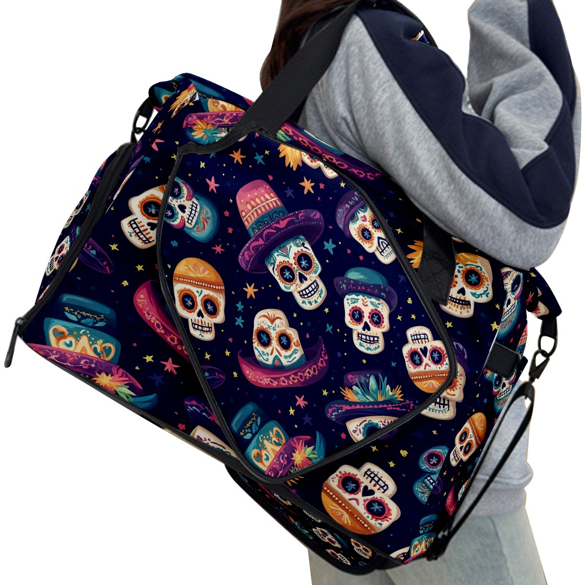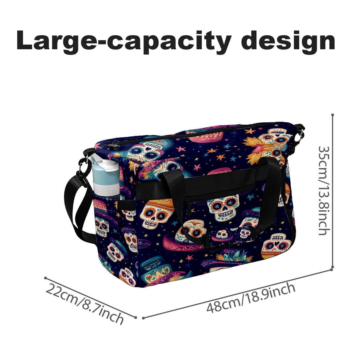 Pickleball Tote Bag Carryall for Paddles Balls and Accessories, Portable Lightweight Gear Bag for Players(Skulls And Mexican Hat)