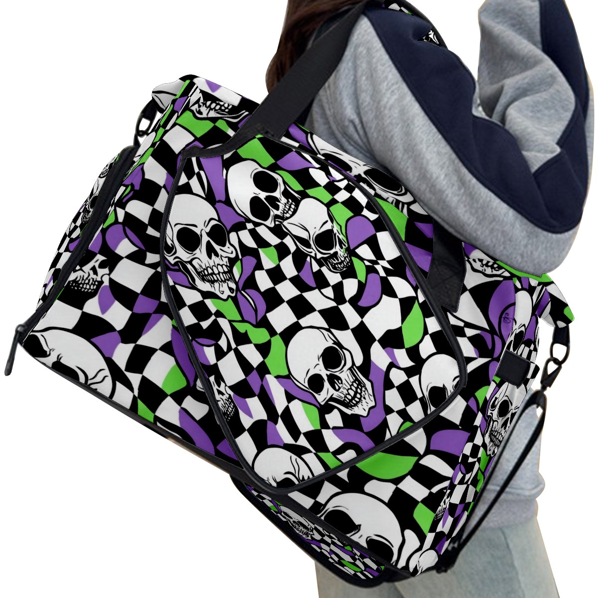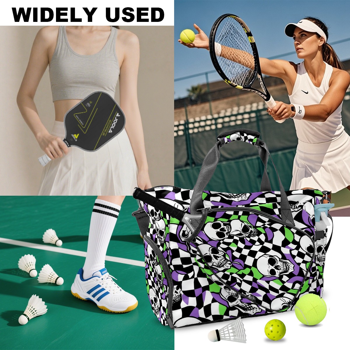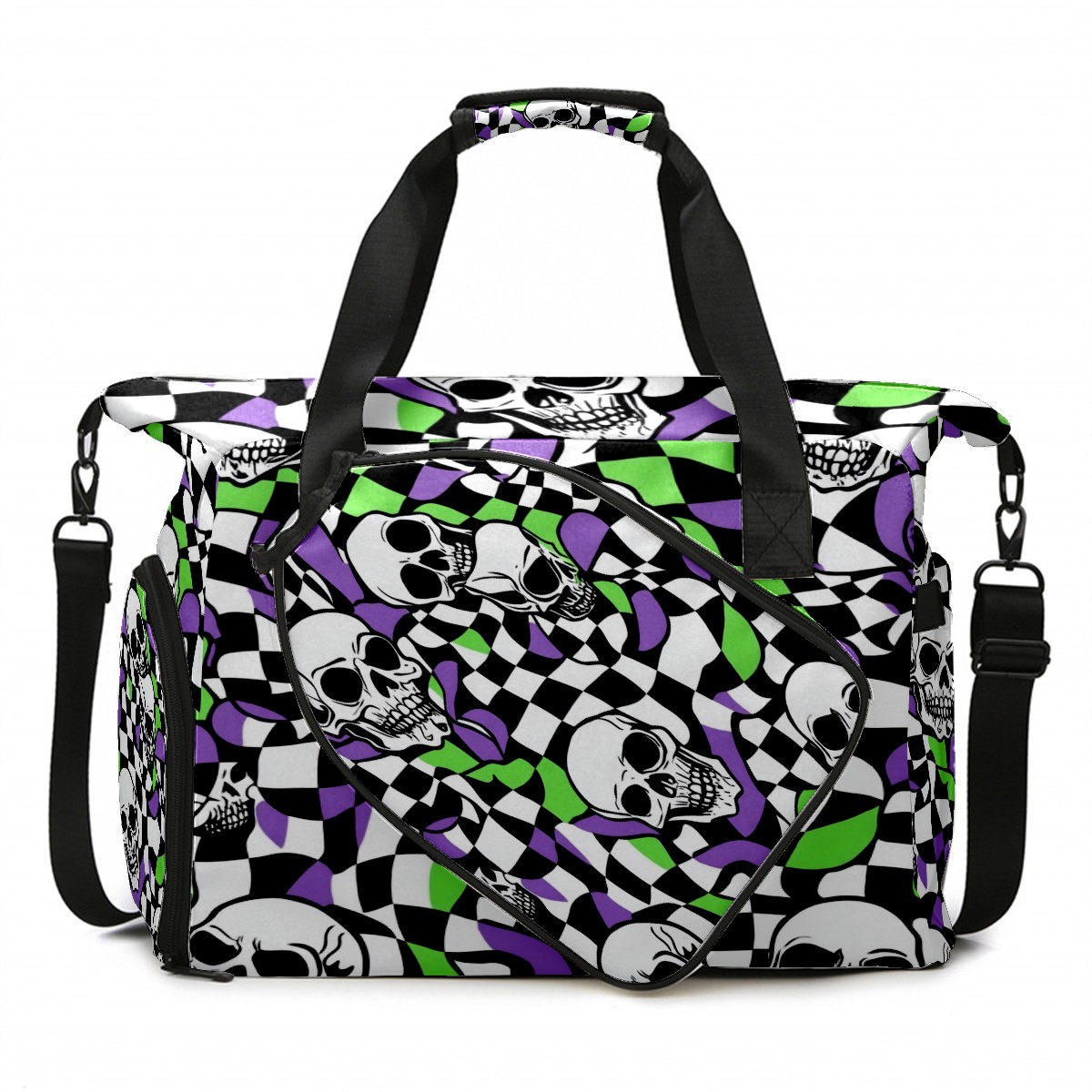 Pickleball Tote Bag Carryall for Paddles Balls and Accessories, Portable Lightweight Gear Bag for Players(Skulls And Checkered Flags)