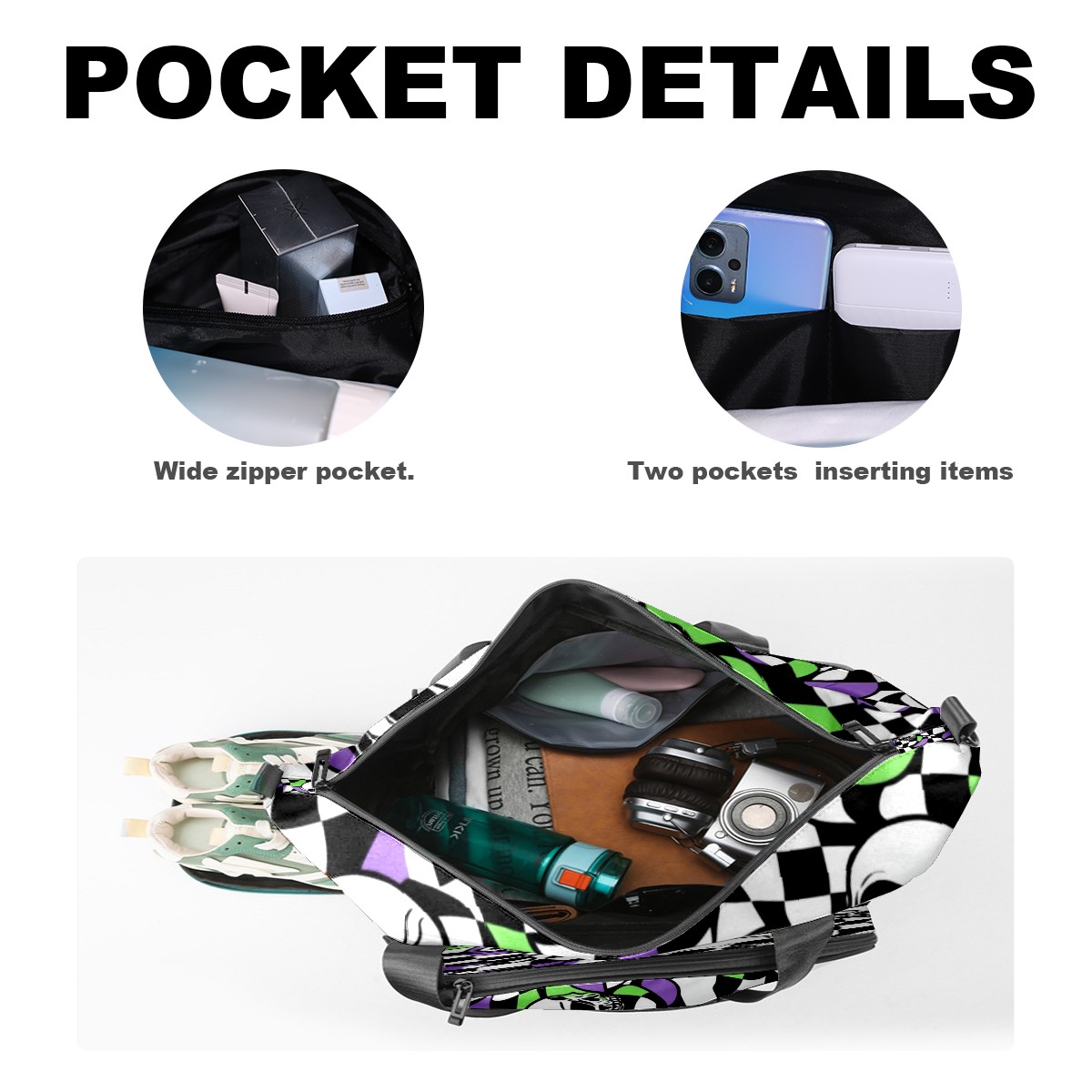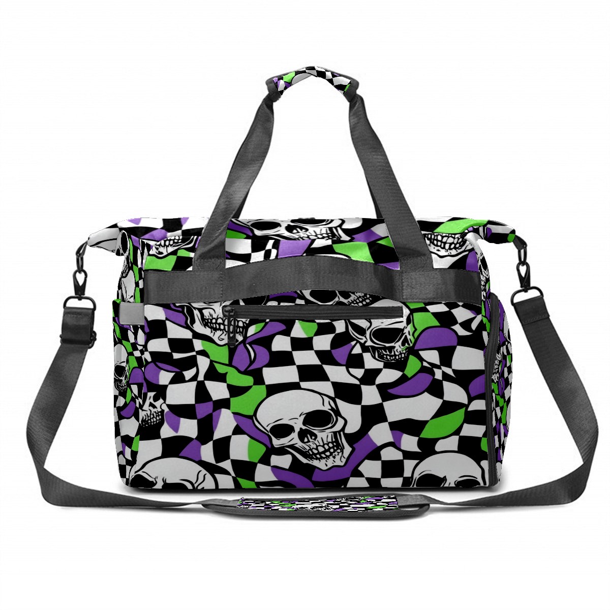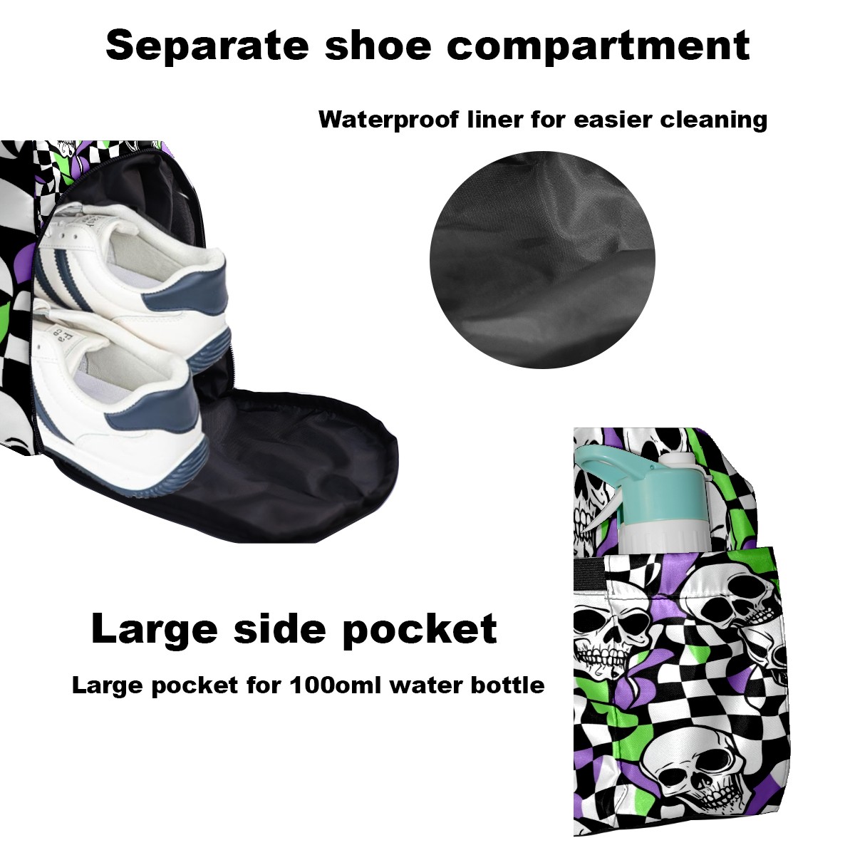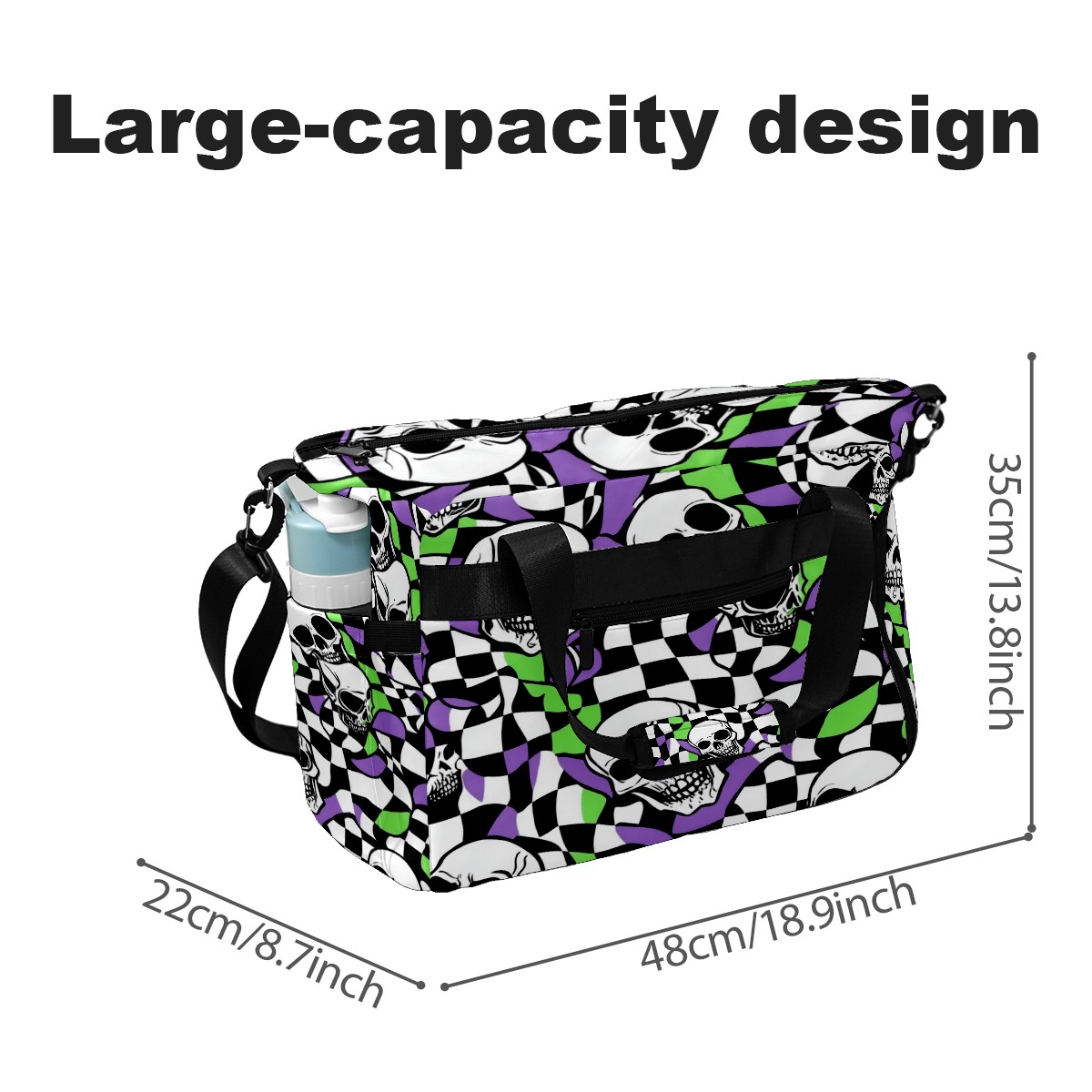Pickleball Tote Bag Carryall for Paddles Balls and Accessories, Portable Lightweight Gear Bag for Players(Skulls And Checkered Flags)