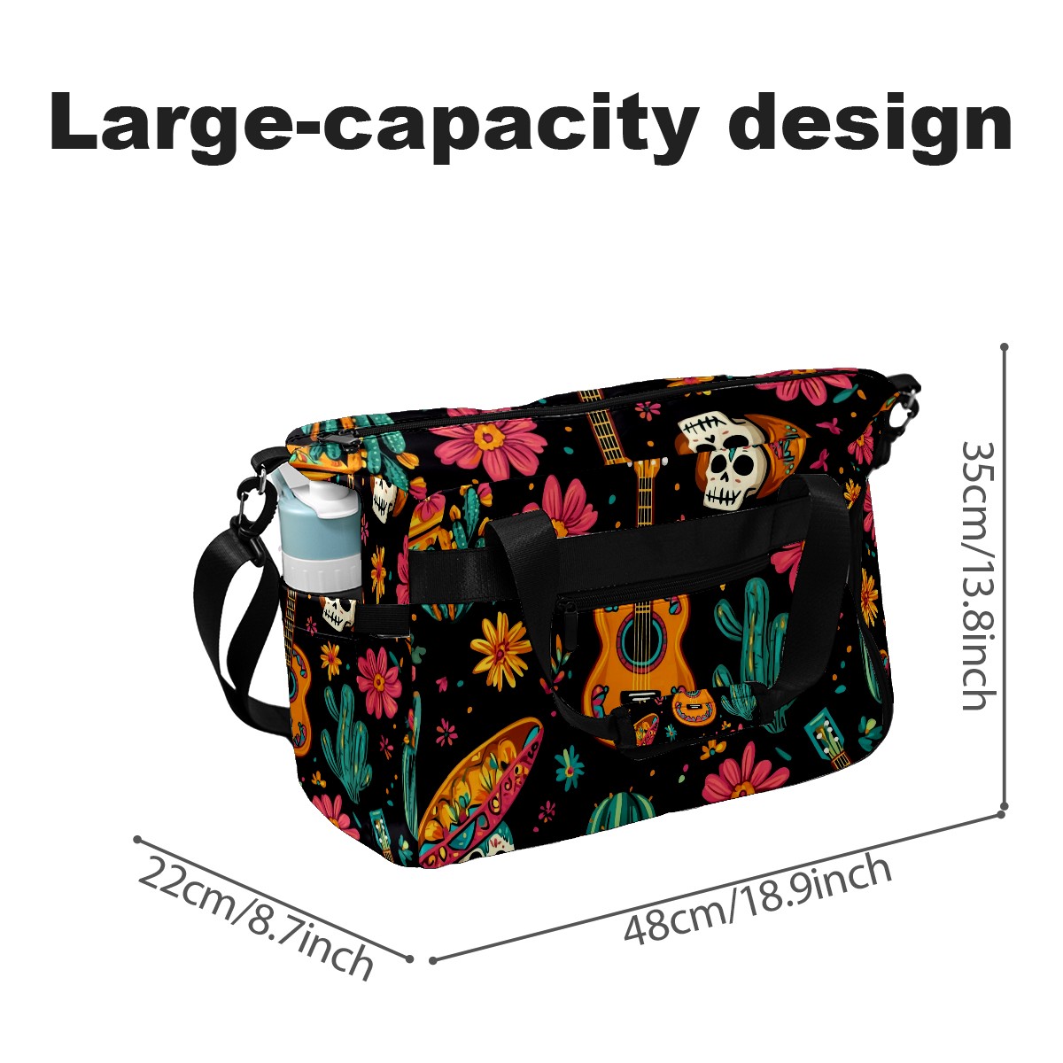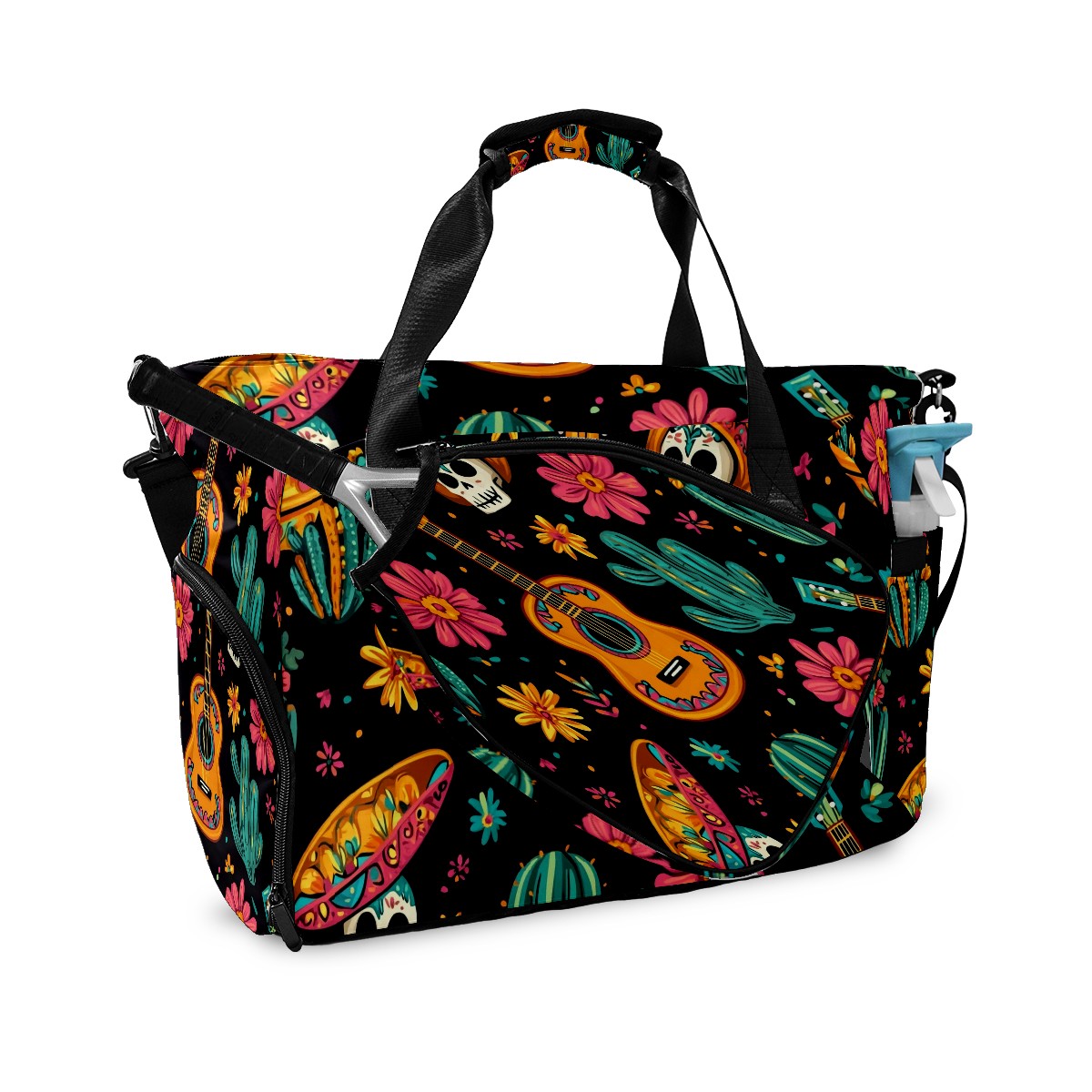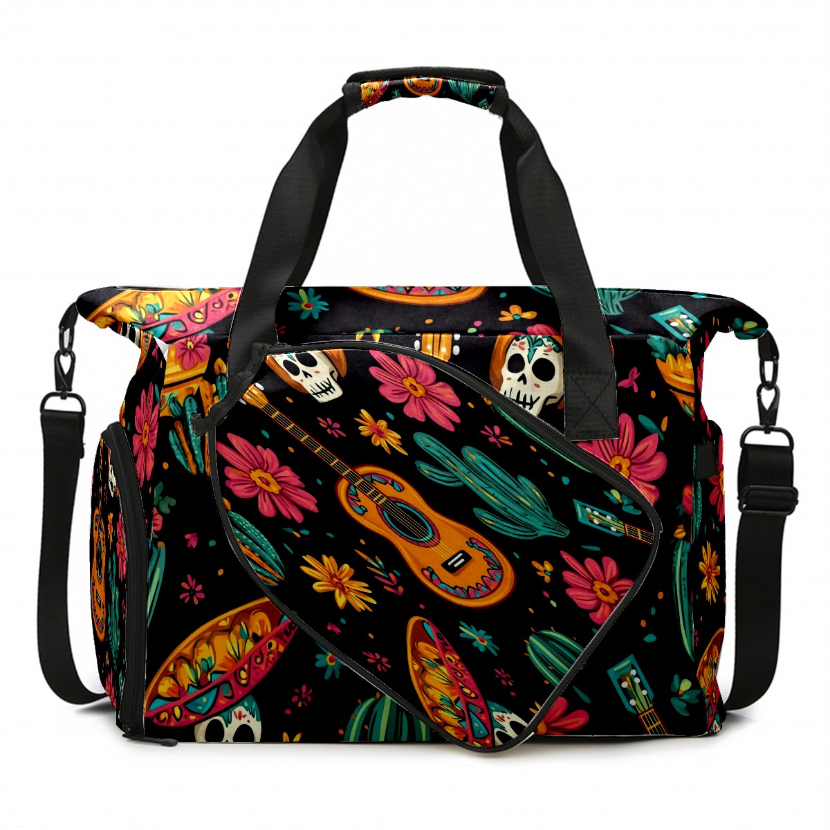 Pickleball Tote Bag Carryall for Paddles Balls and Accessories, Portable Lightweight Gear Bag for Players(Mexican Seamless Pattern)