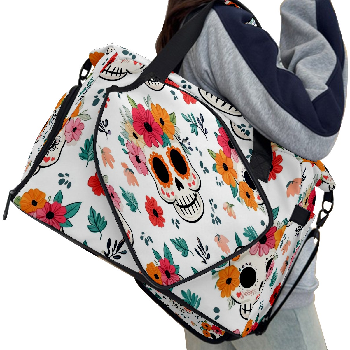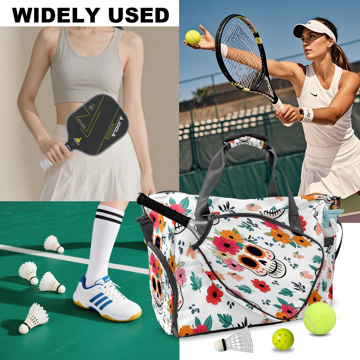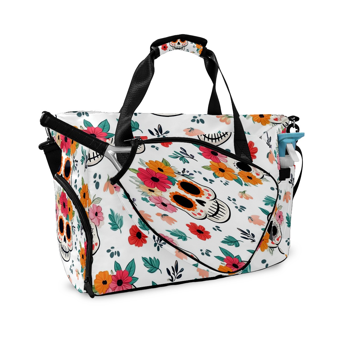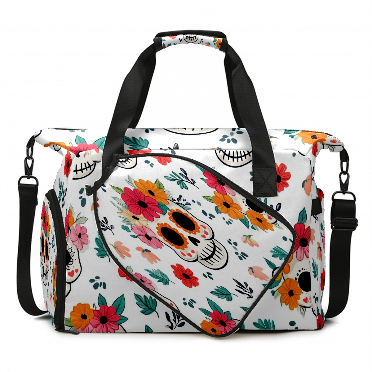 Pickleball Tote Bag Carryall for Paddles Balls and Accessories, Portable Lightweight Gear Bag for Players(Cute Skull And Floral)
