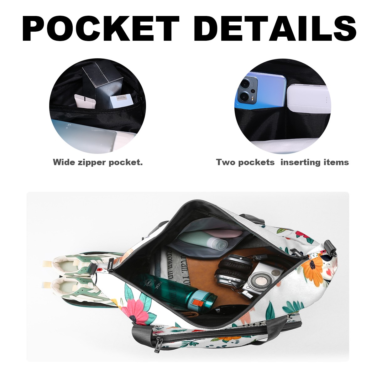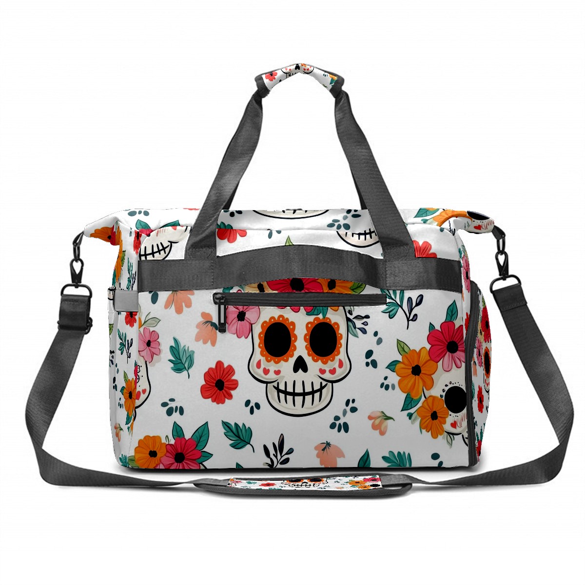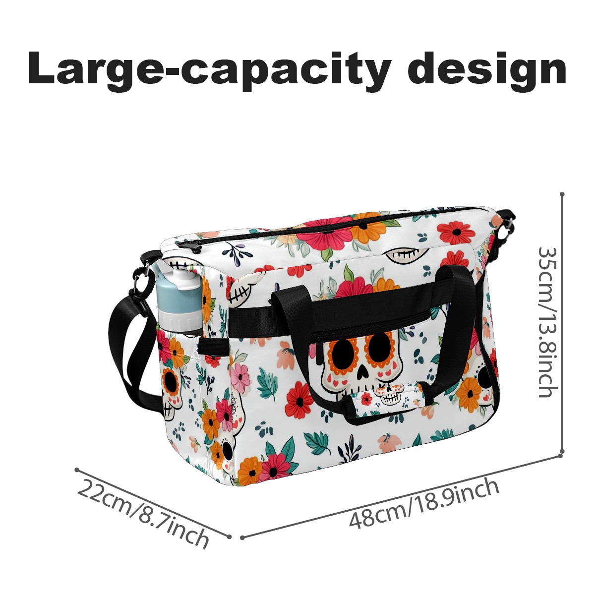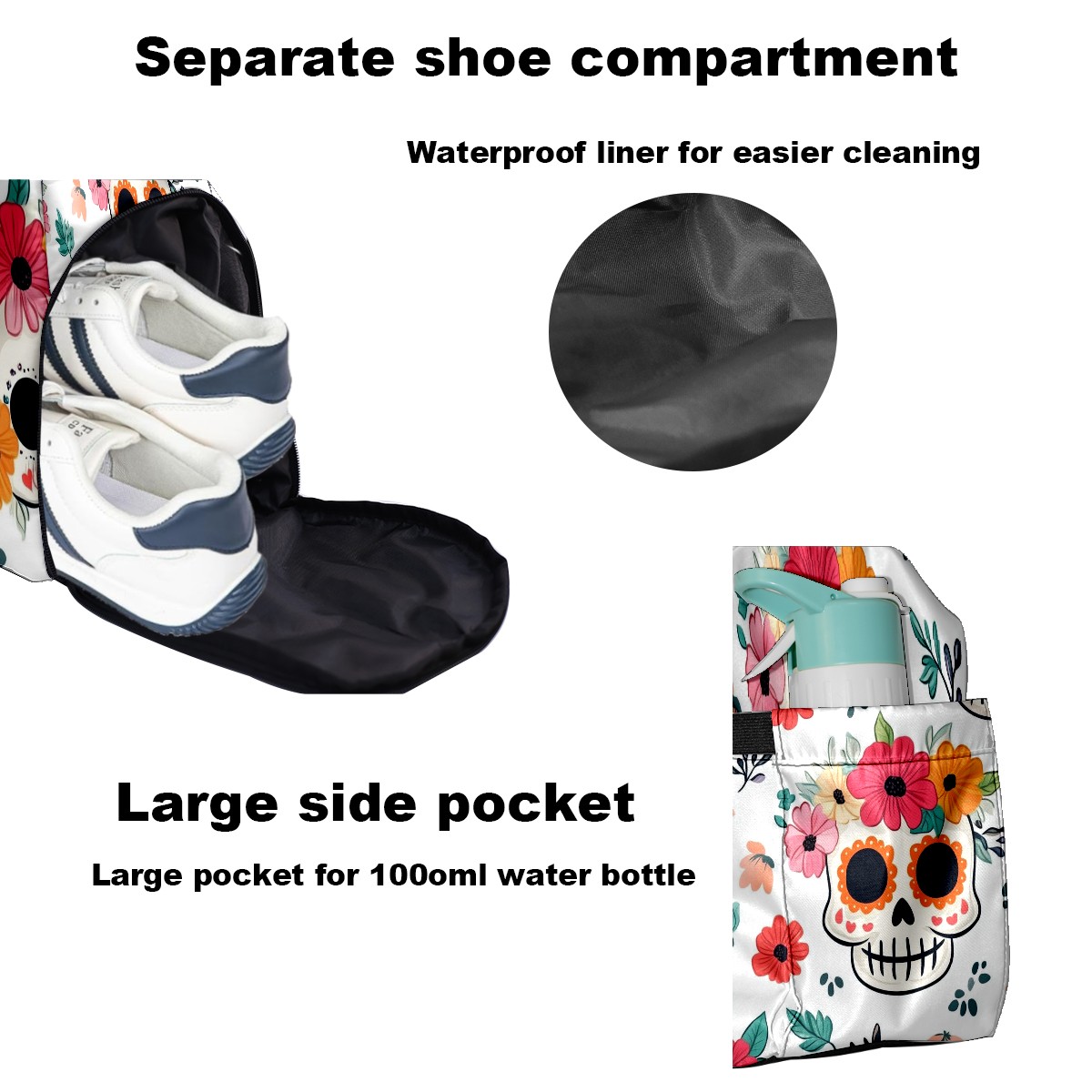 Pickleball Tote Bag Carryall for Paddles Balls and Accessories, Portable Lightweight Gear Bag for Players(Cute Skull And Floral)