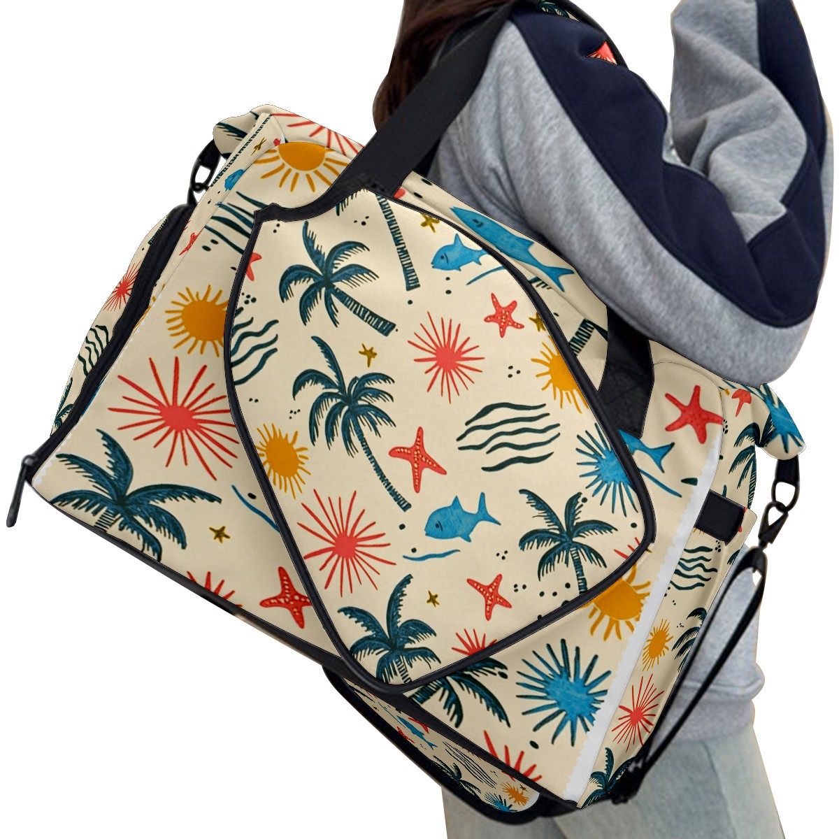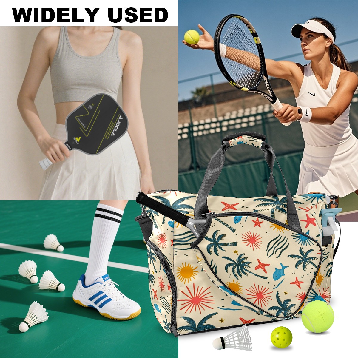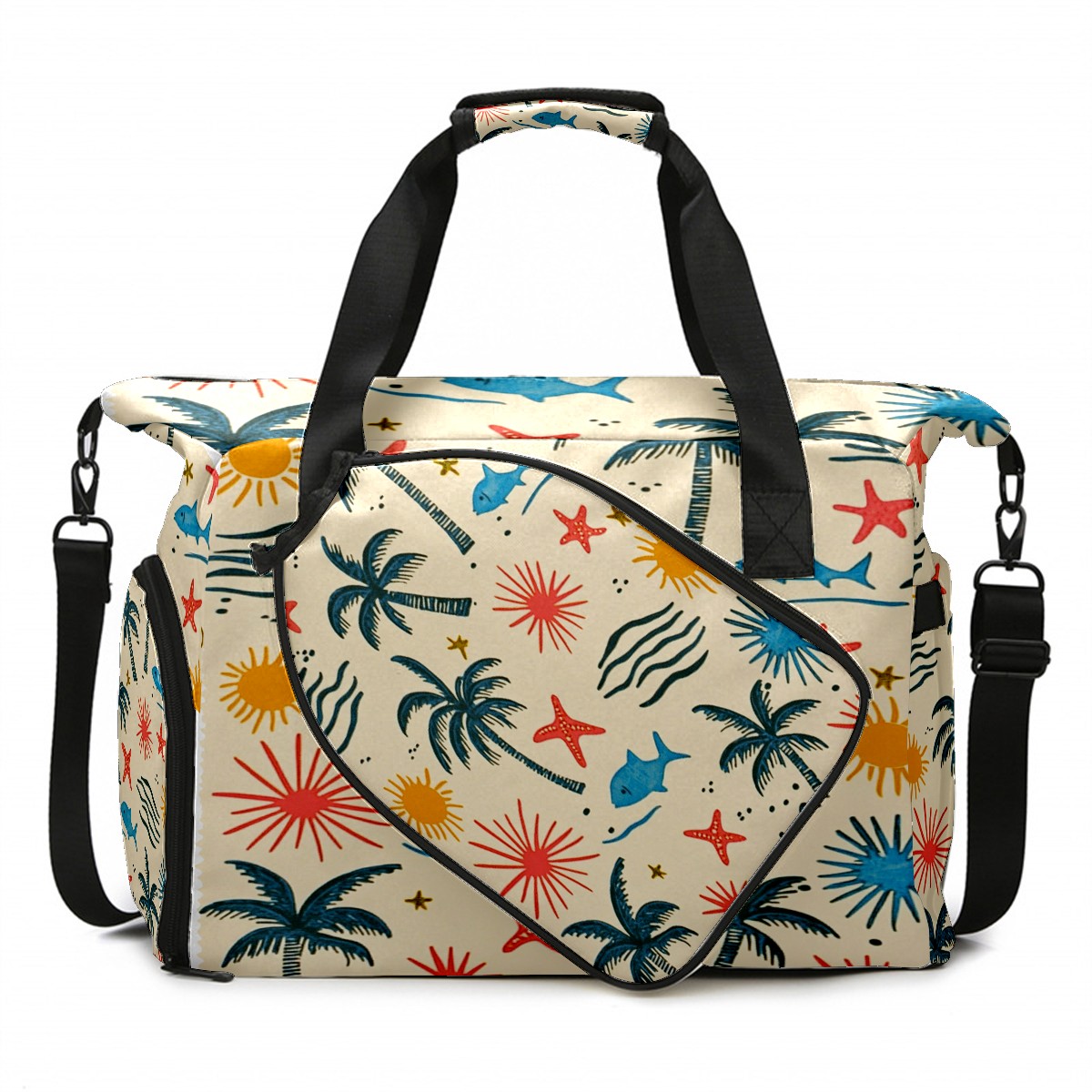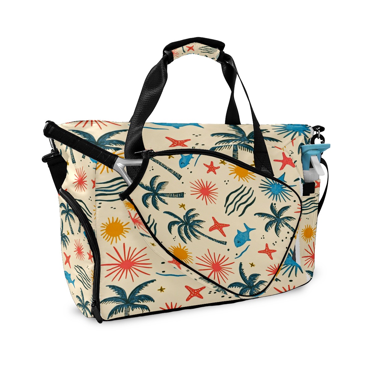 Pickleball Tote Bag Carryall for Paddles Balls and Accessories, Portable Lightweight Gear Bag for Players(Palm Trees Suns And Starfish)
