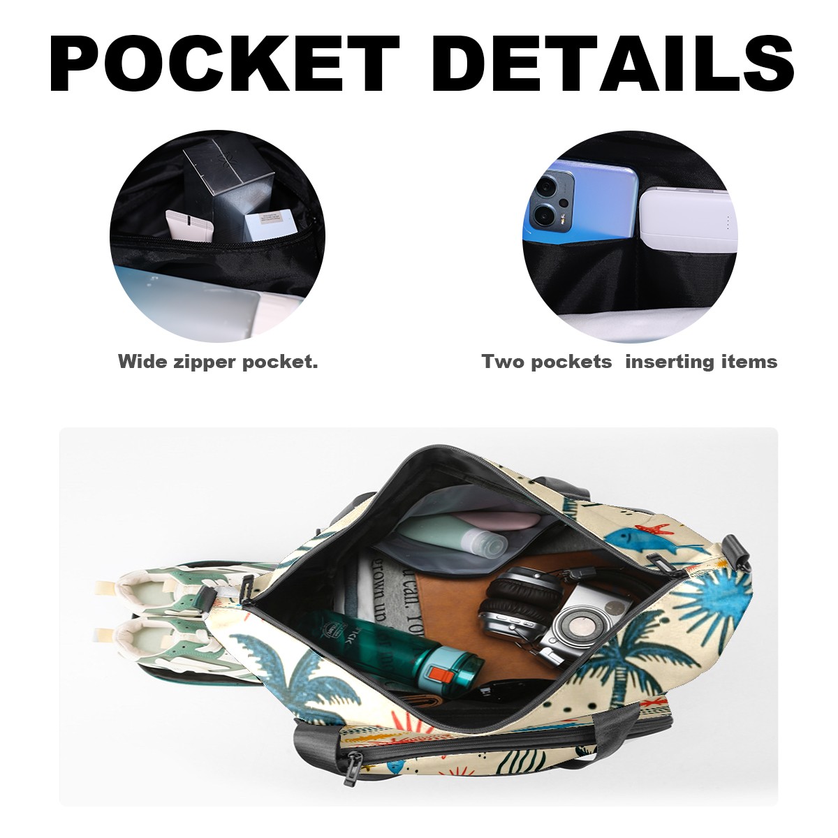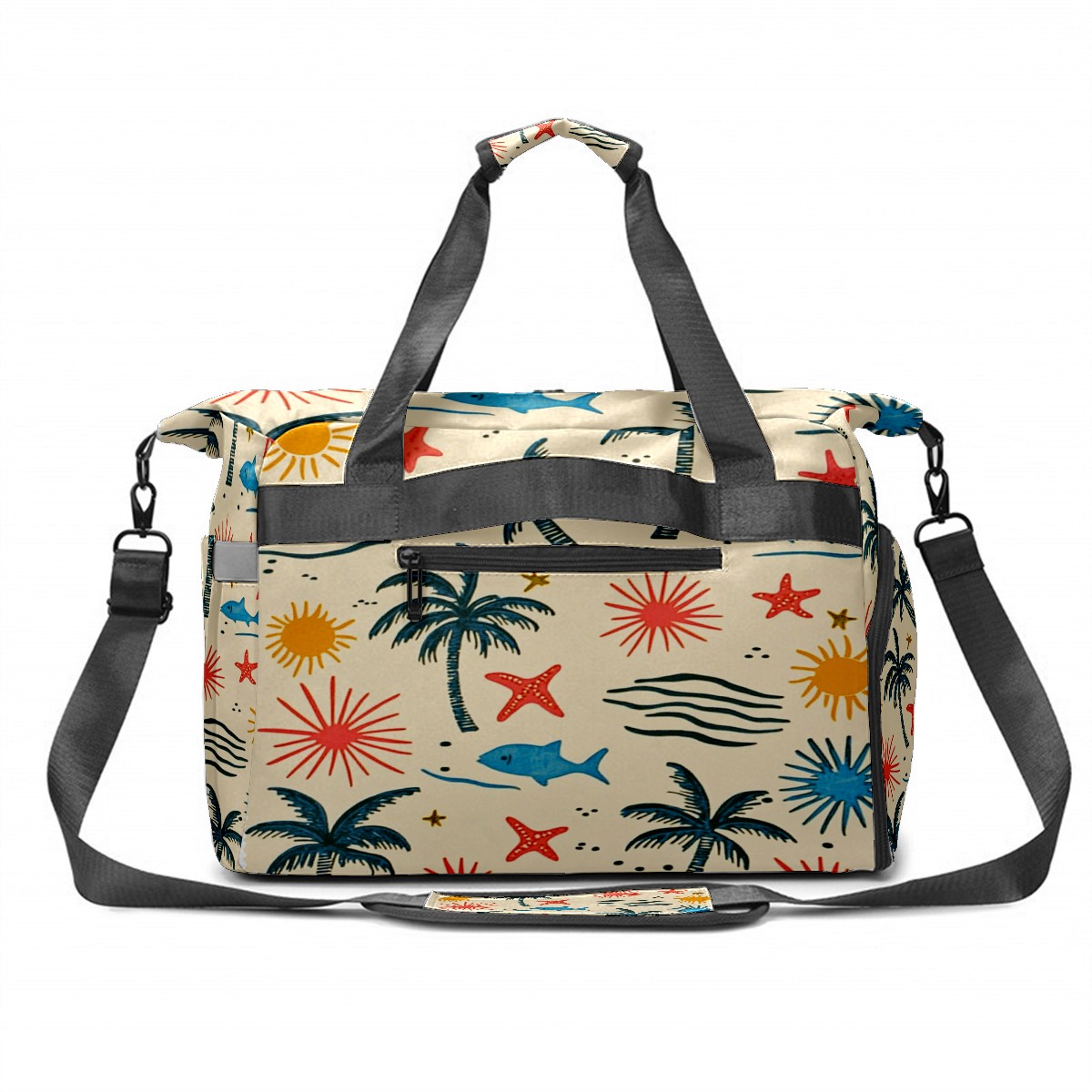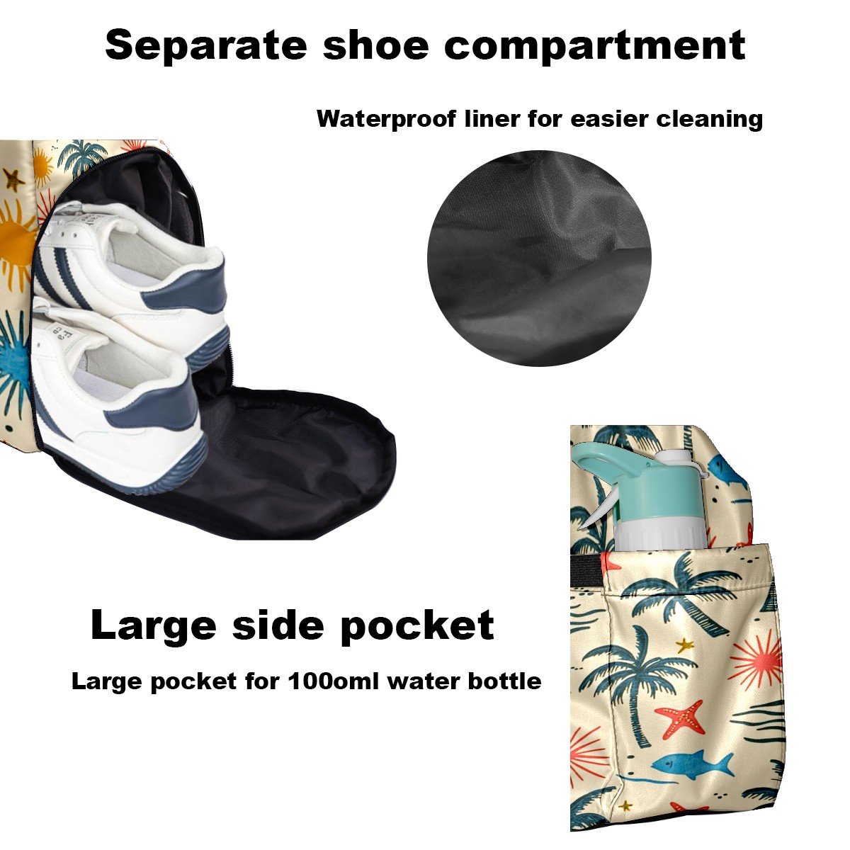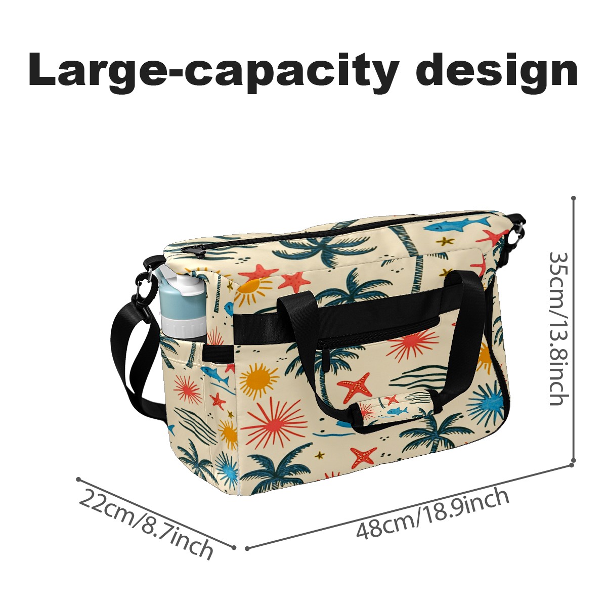 Pickleball Tote Bag Carryall for Paddles Balls and Accessories, Portable Lightweight Gear Bag for Players(Palm Trees Suns And Starfish)