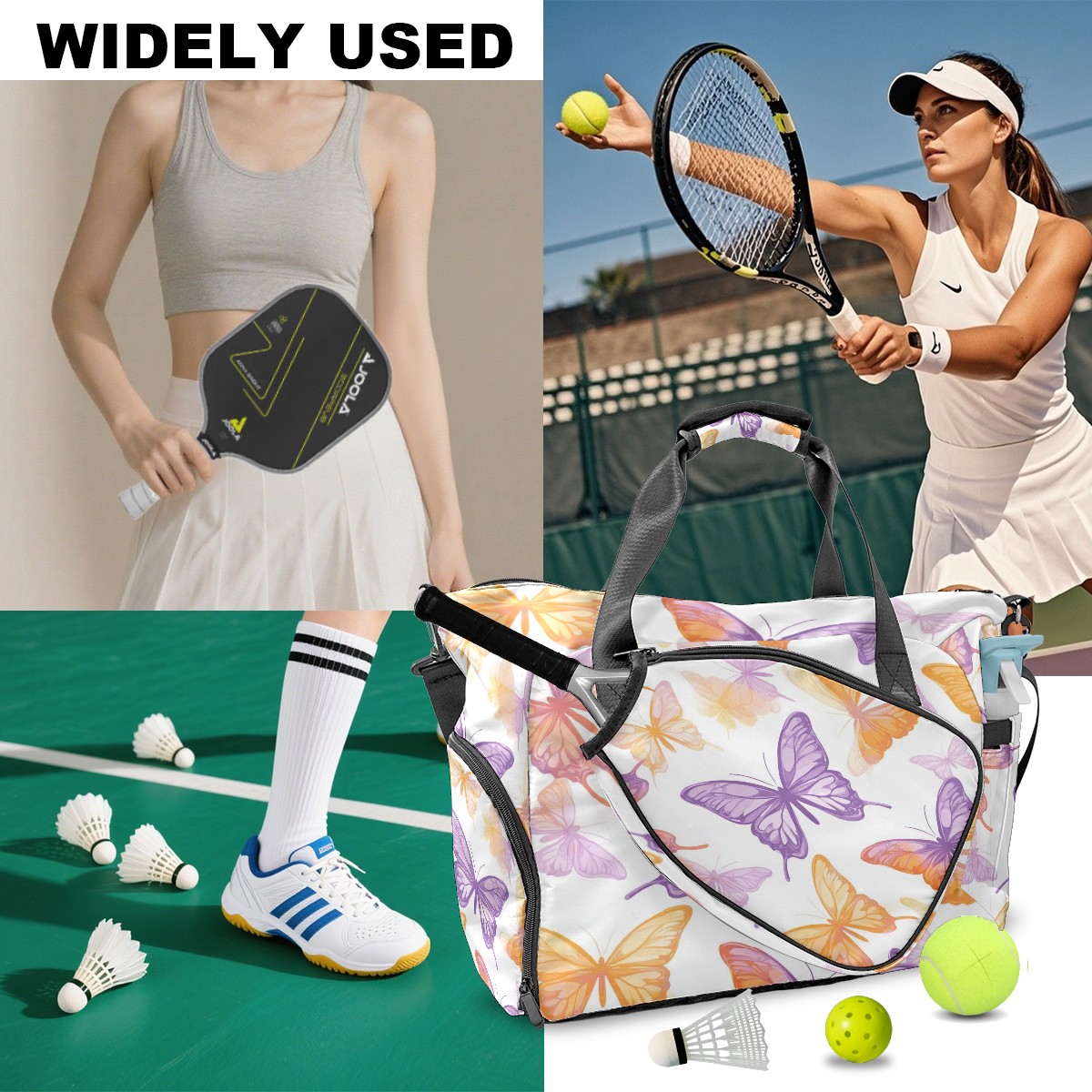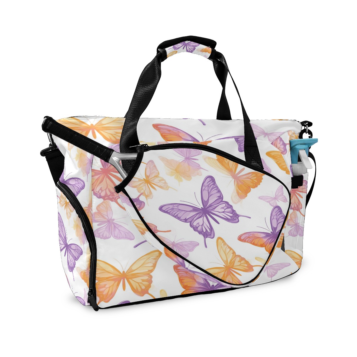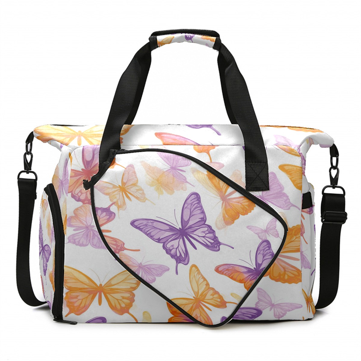 Pickleball Tote Bag Carryall for Paddles Balls and Accessories, Portable Lightweight Gear Bag for Players(Pink And Orange Butterflies)