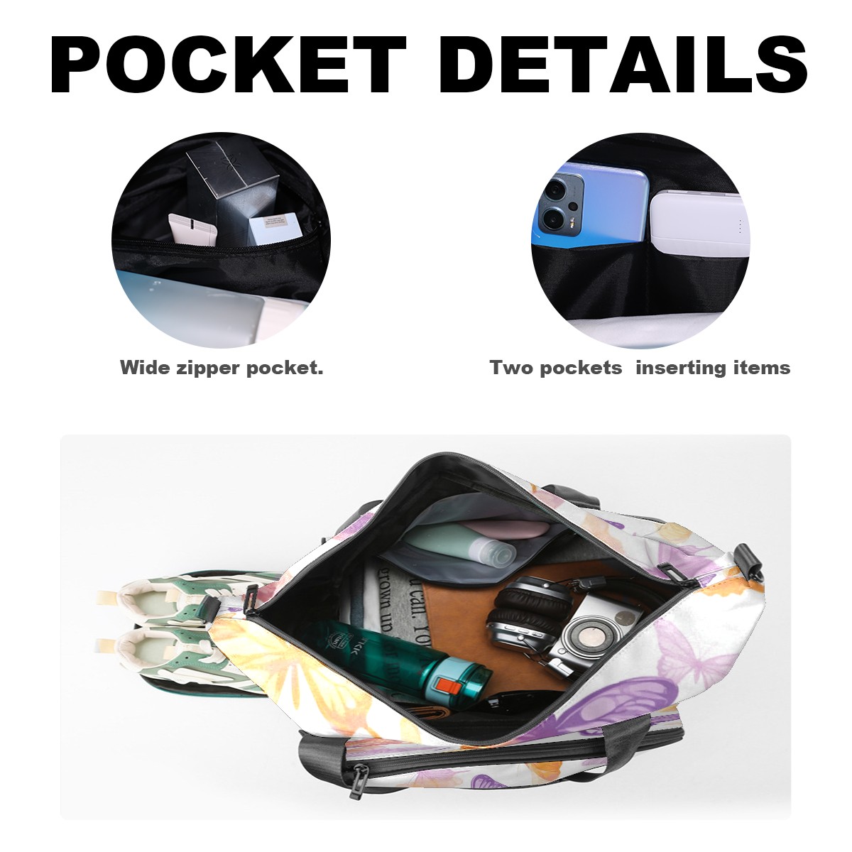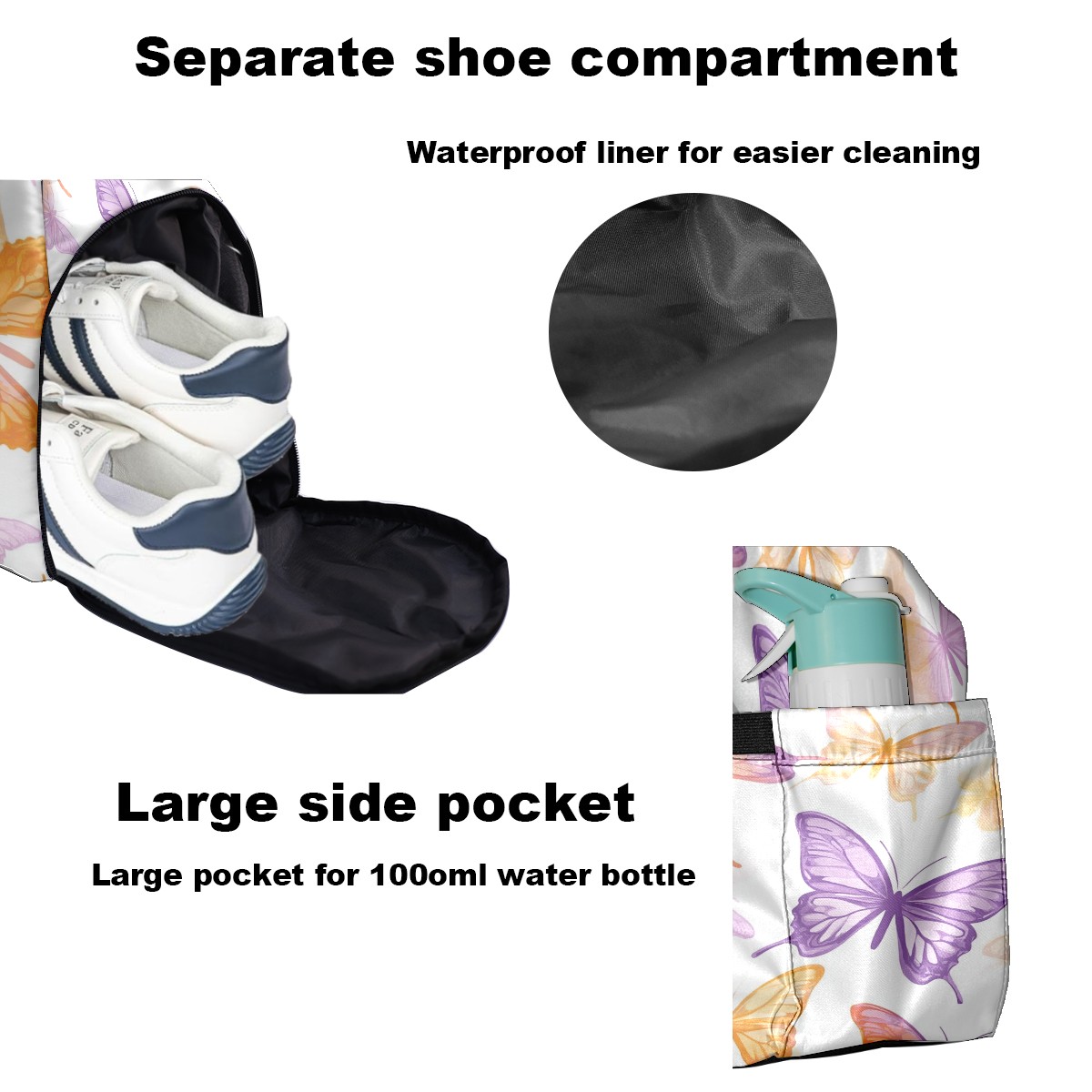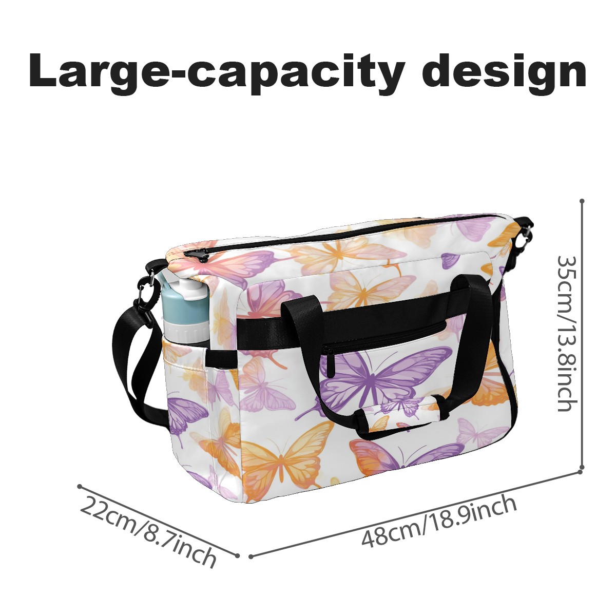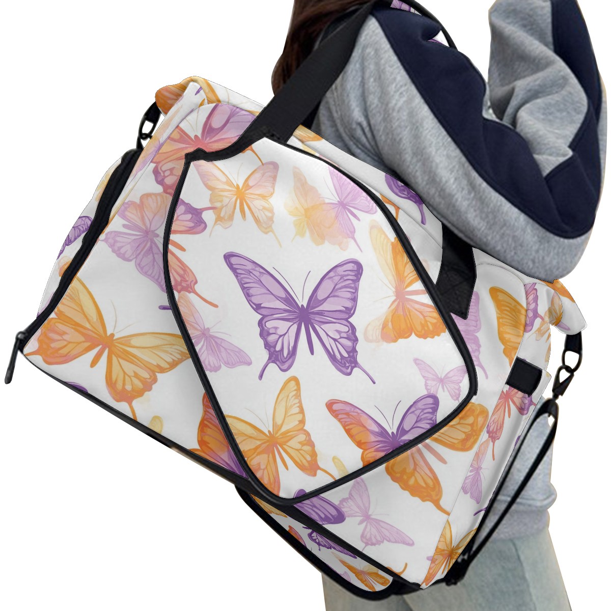 Pickleball Tote Bag Carryall for Paddles Balls and Accessories, Portable Lightweight Gear Bag for Players(Pink And Orange Butterflies)