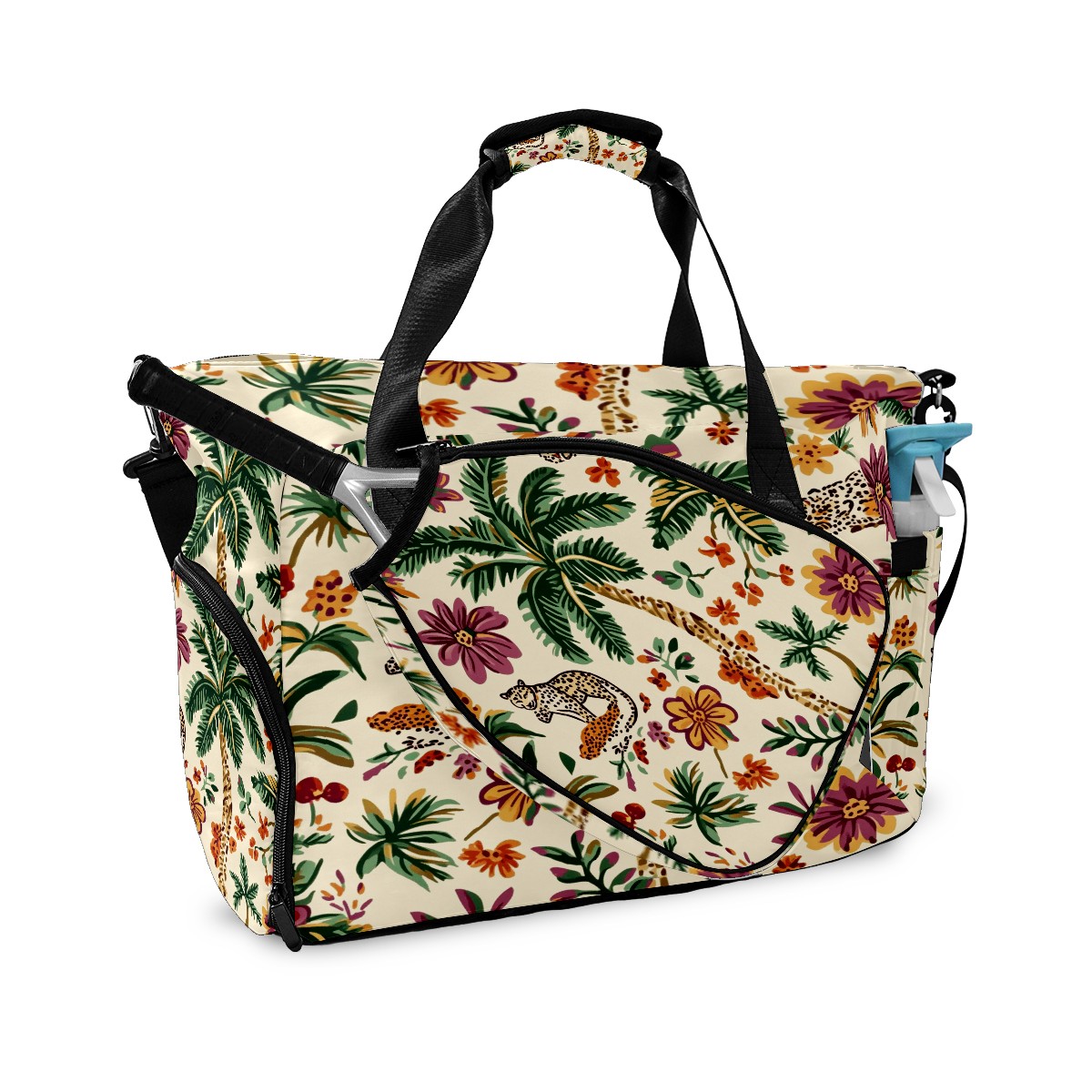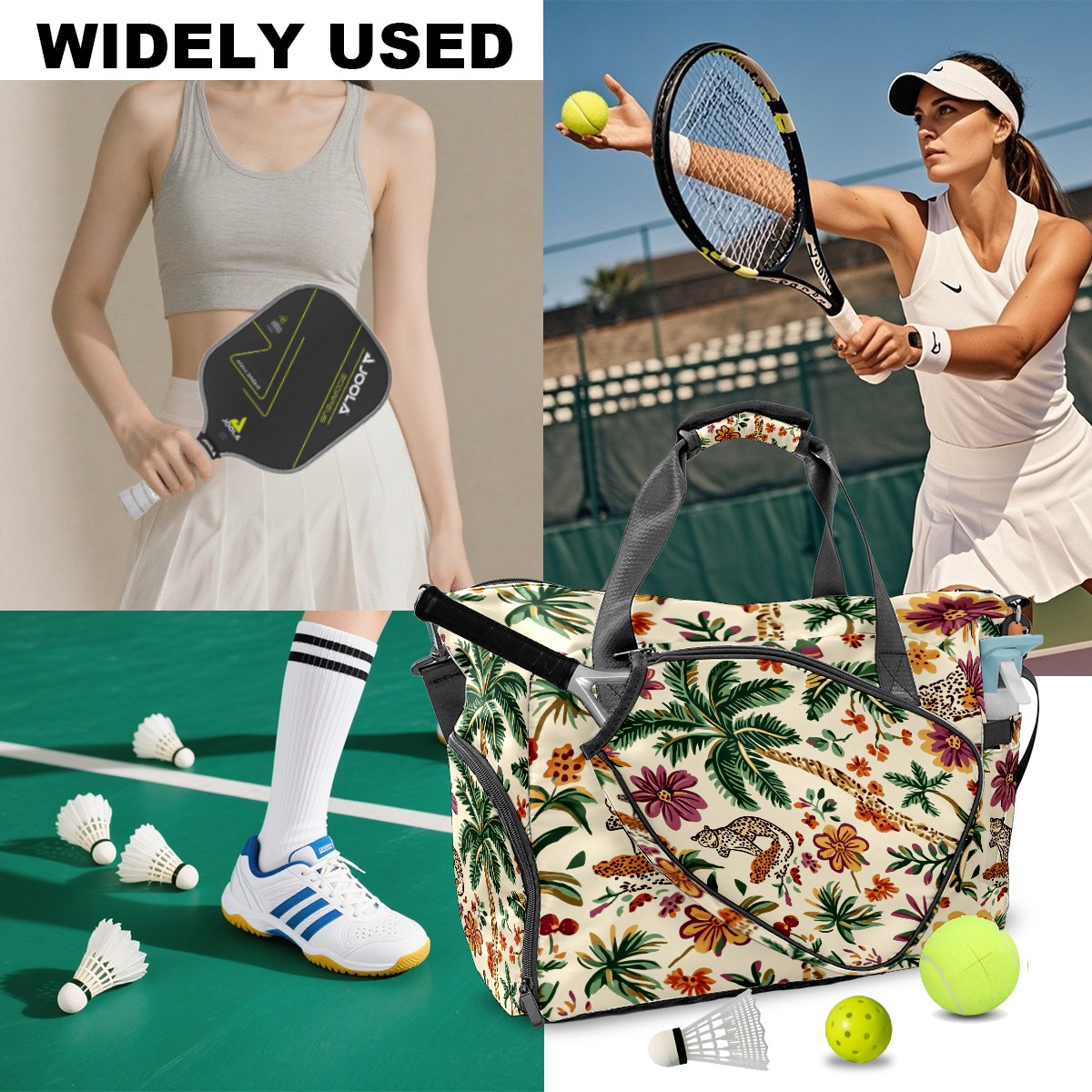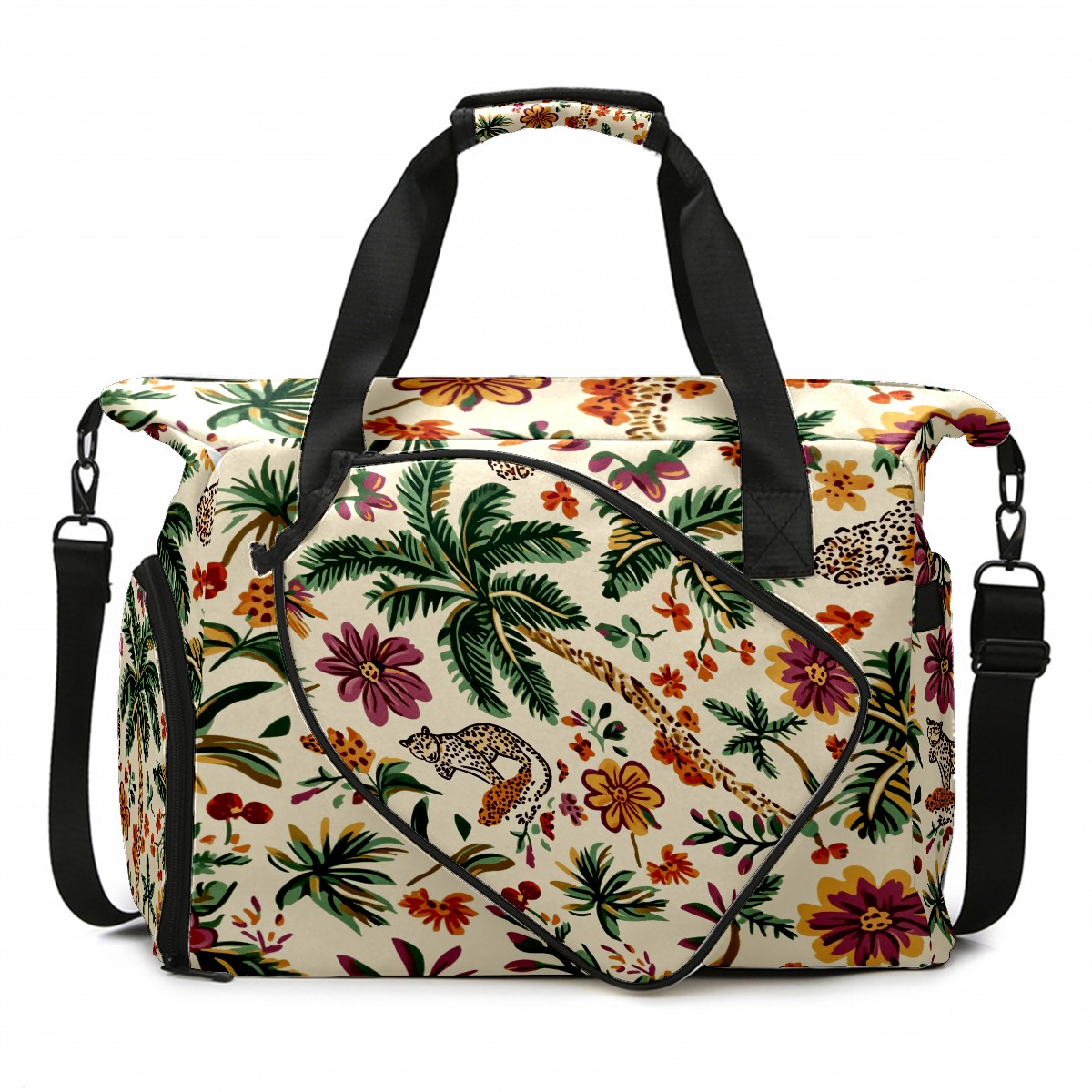 Pickleball Tote Bag Carryall for Paddles Balls and Accessories, Portable Lightweight Gear Bag for Players(Tropical Jungle Theme)