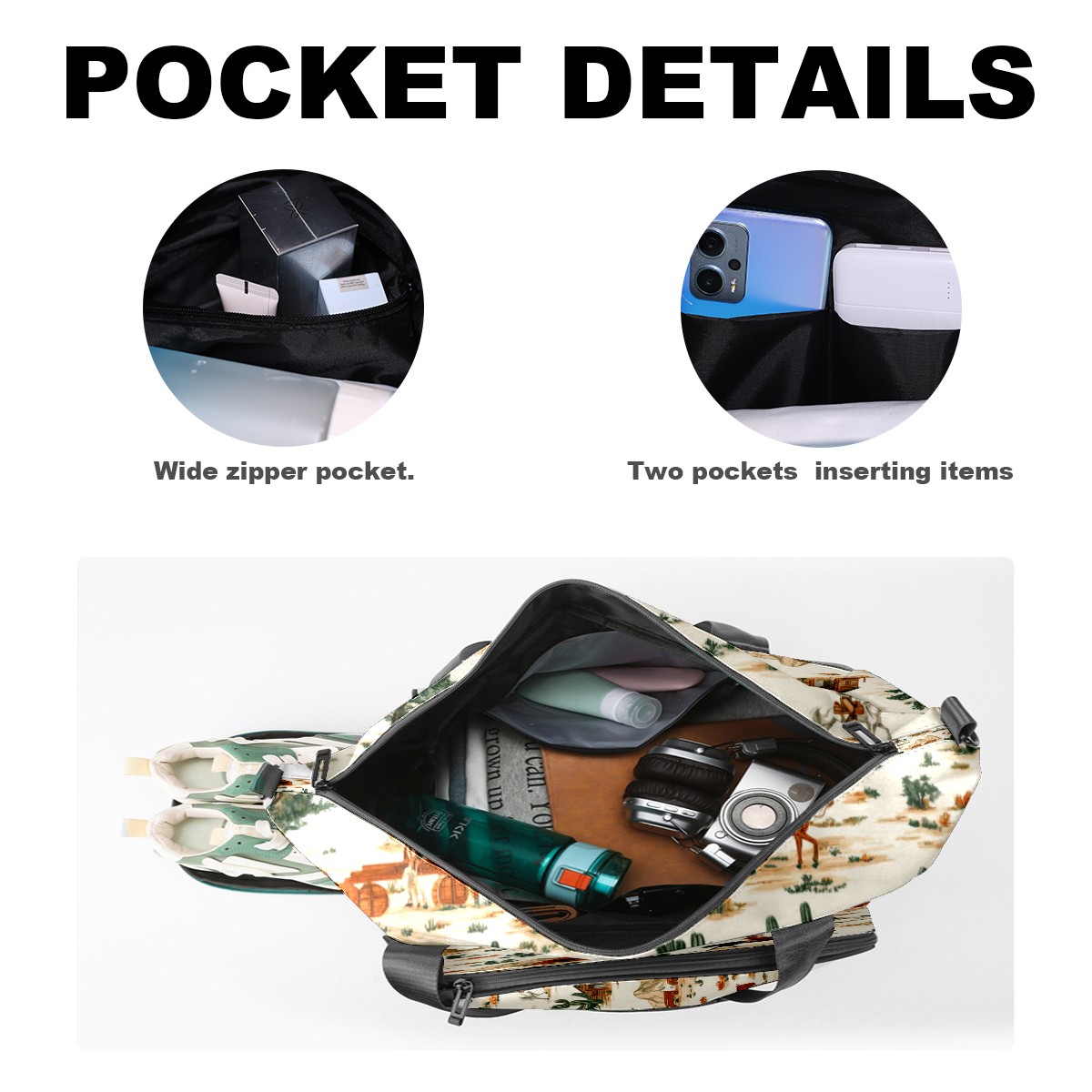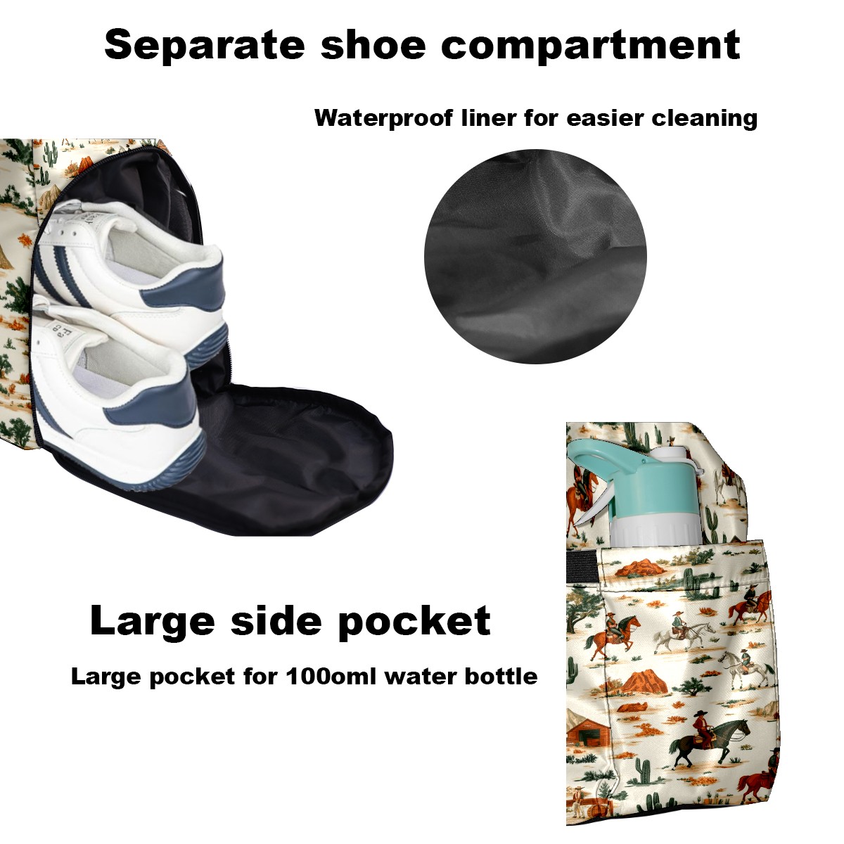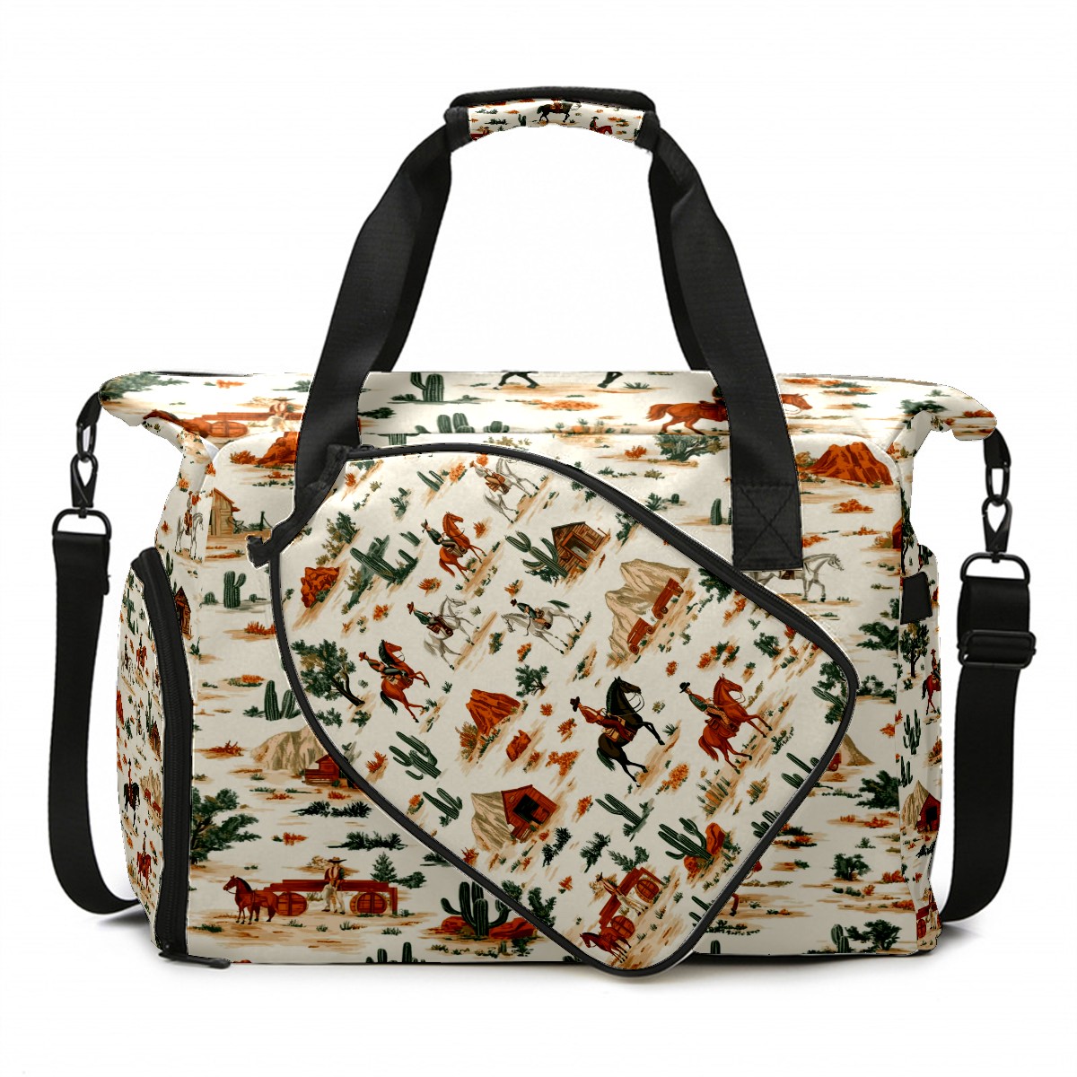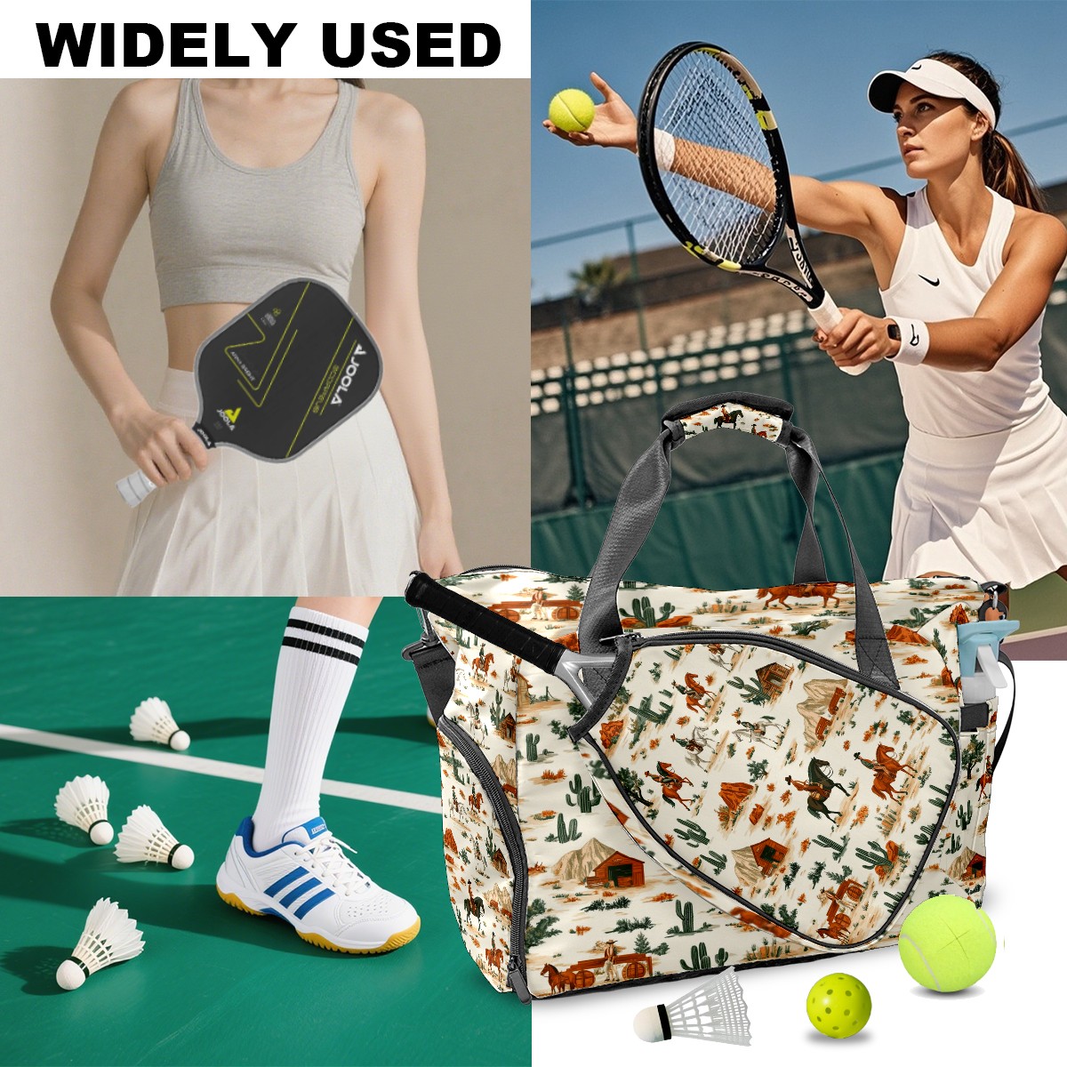 Pickleball Tote Bag Carryall for Paddles Balls and Accessories, Portable Lightweight Gear Bag for Players(Western Theme Pattern)
