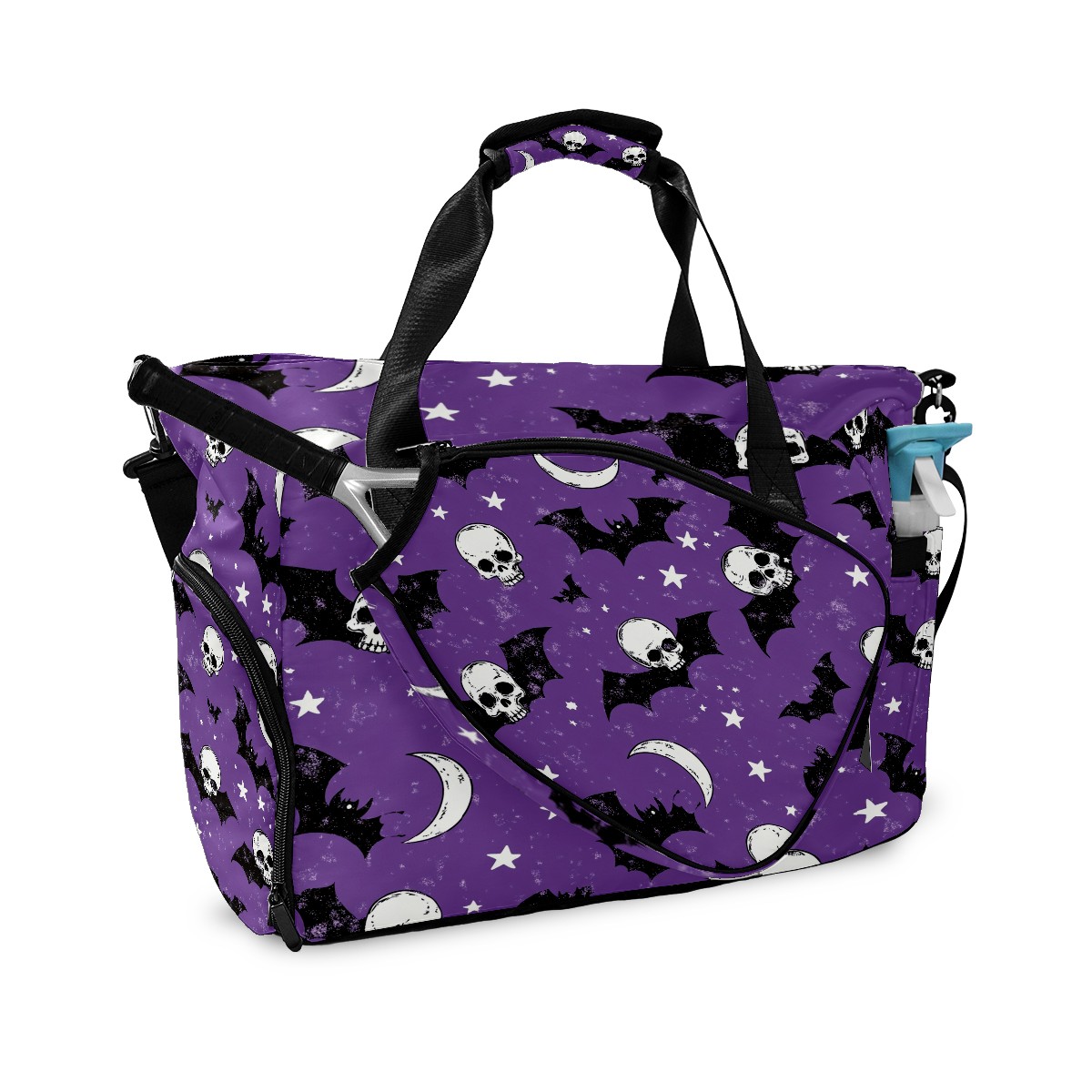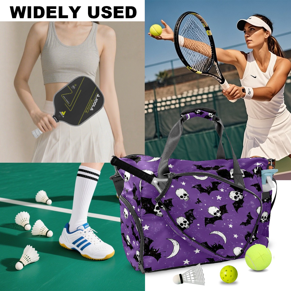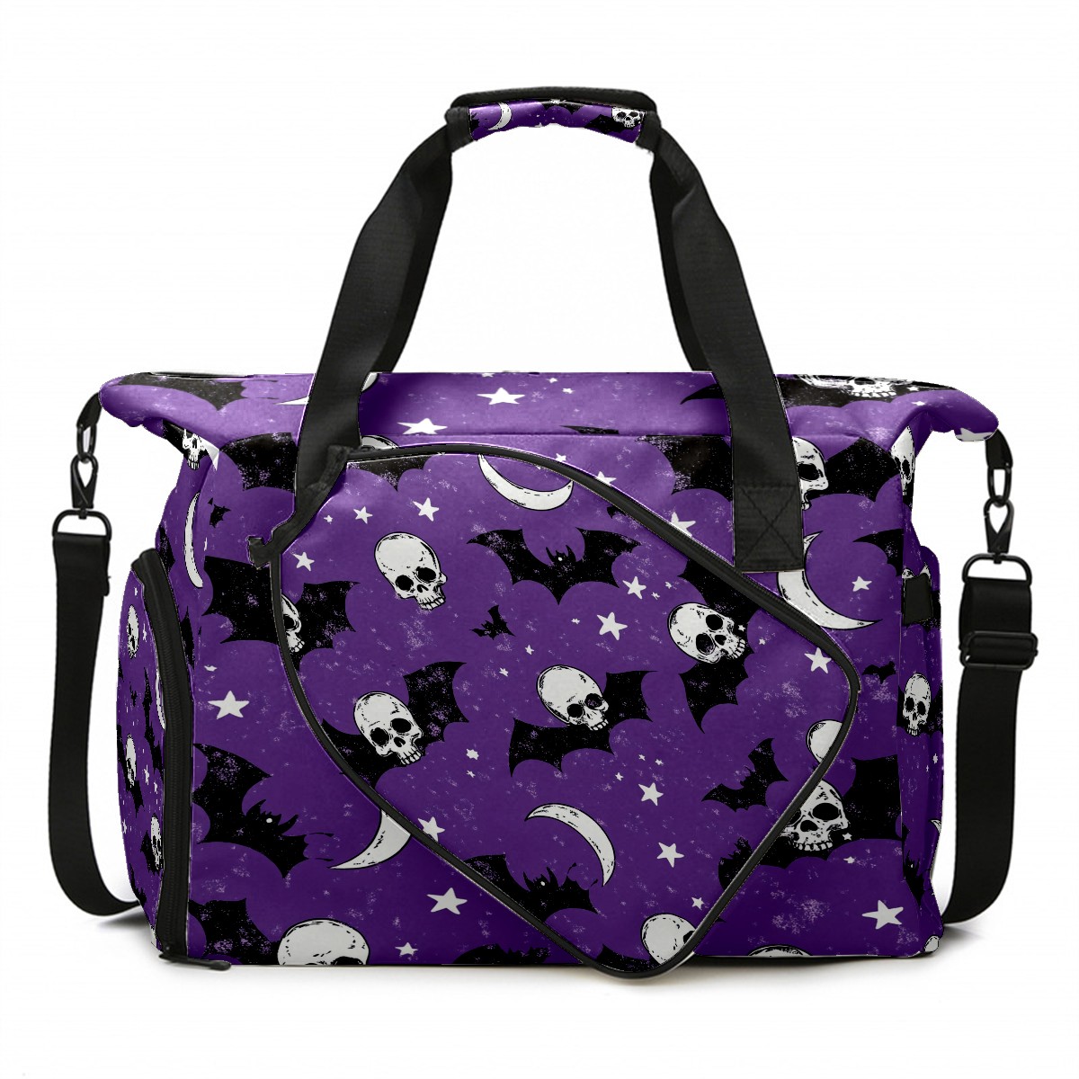 Pickleball Tote Bag Carryall for Paddles Balls and Accessories, Portable Lightweight Gear Bag for Players(Bats And Skulls)