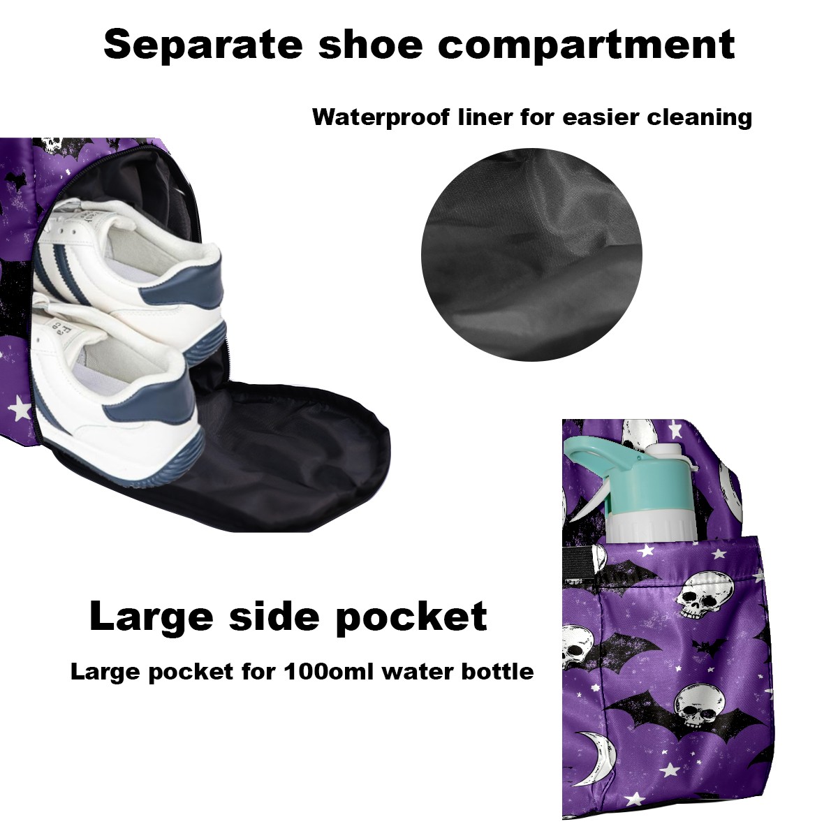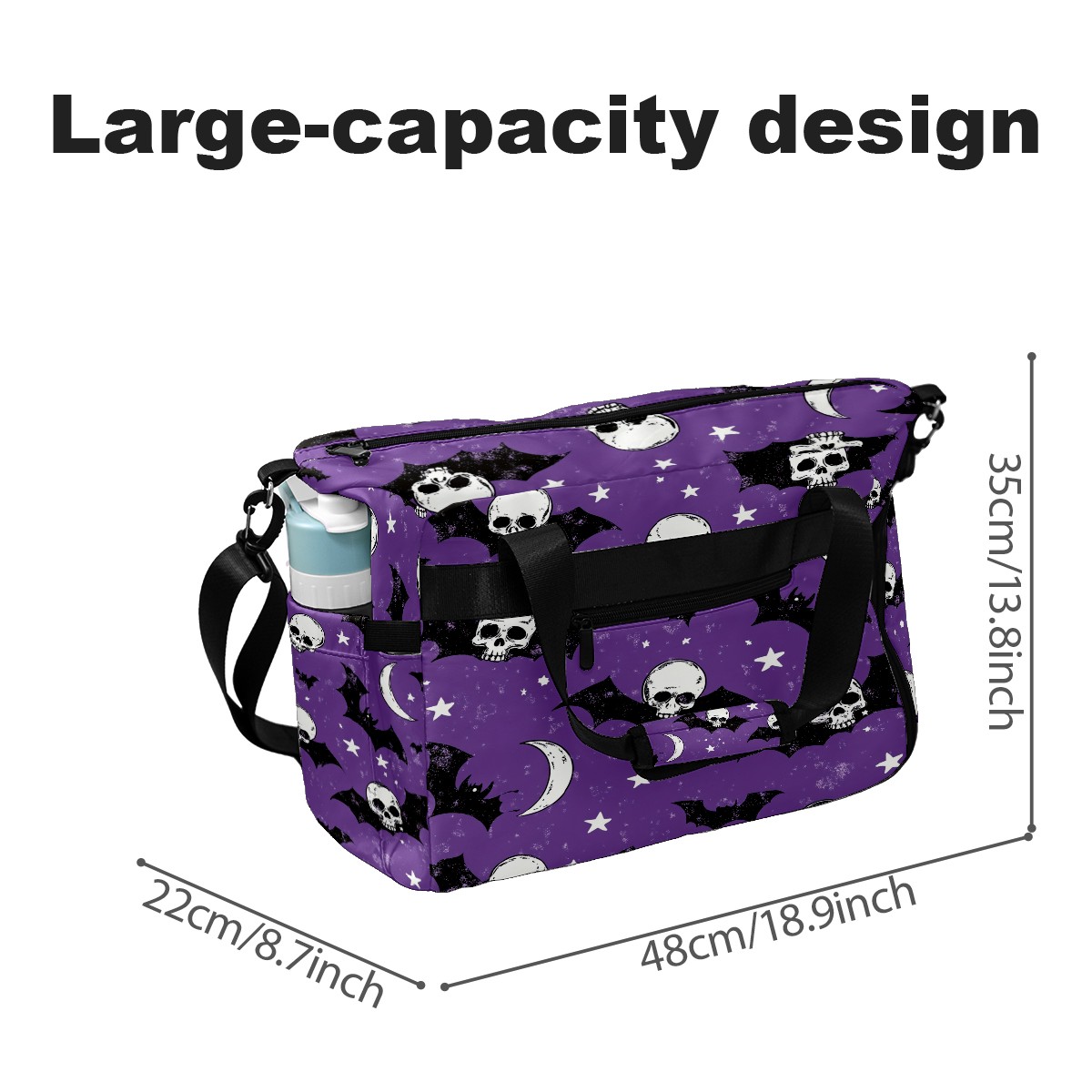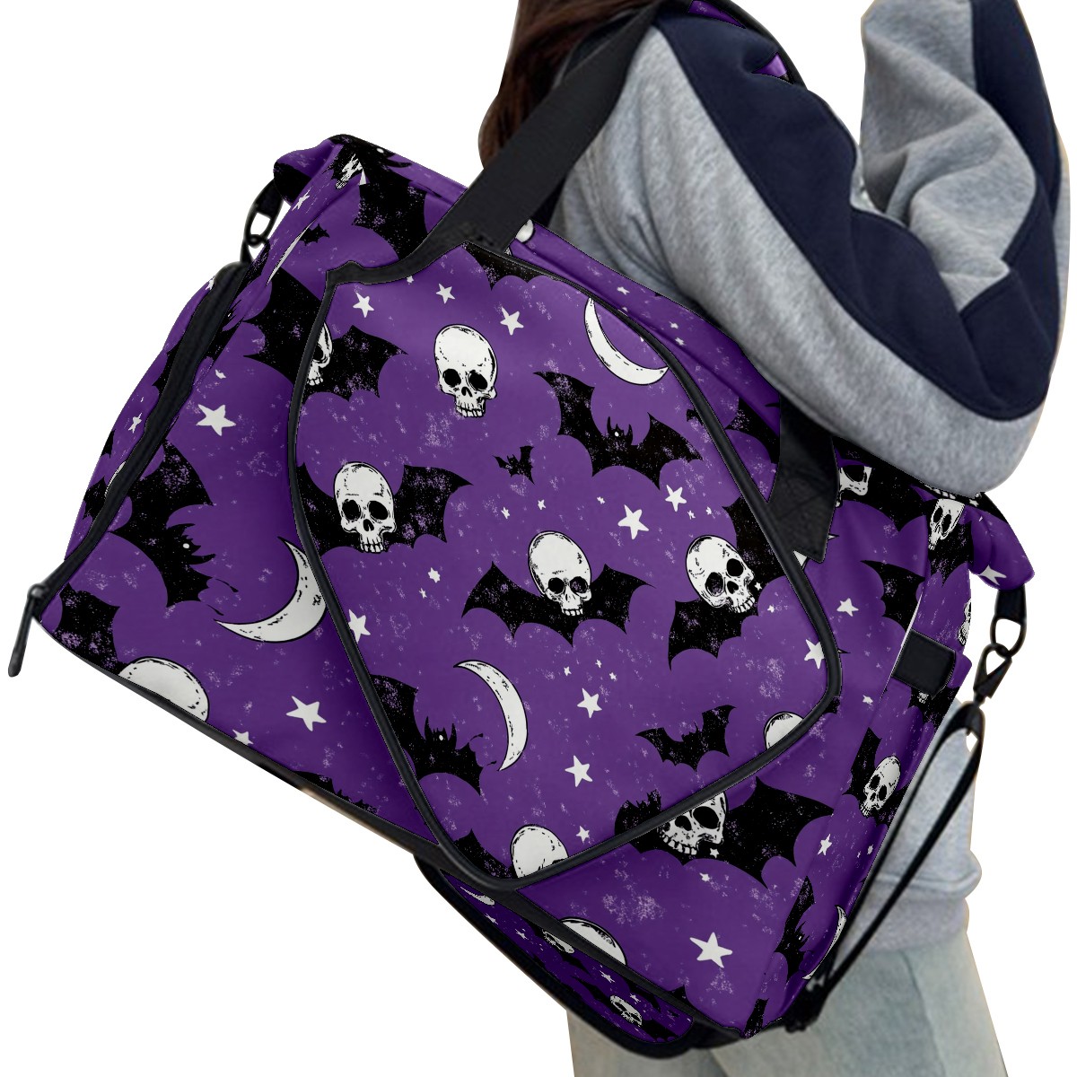 Pickleball Tote Bag Carryall for Paddles Balls and Accessories, Portable Lightweight Gear Bag for Players(Bats And Skulls)