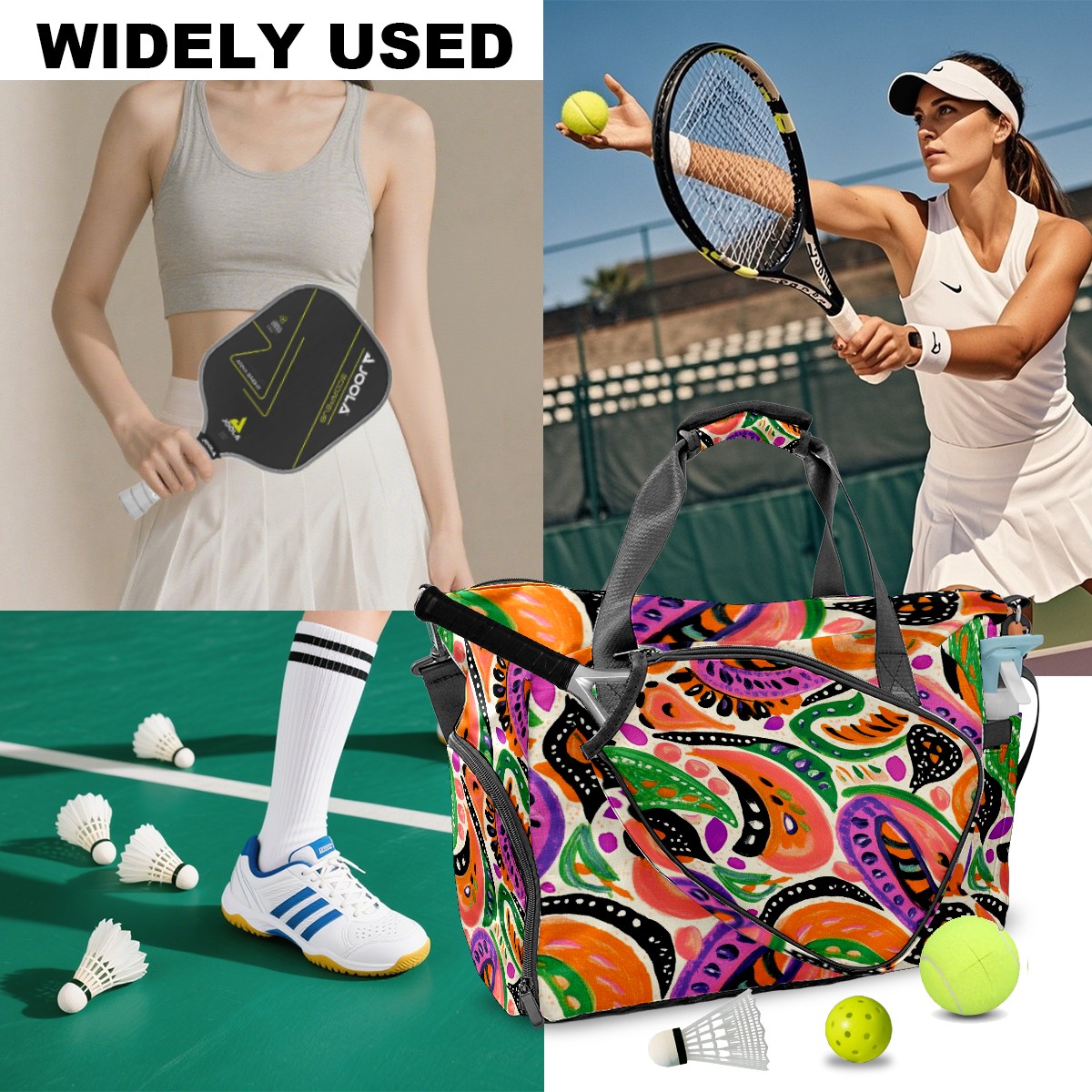 <p>Meet your ultimate court companion – the premium pickleball bag designed for players who demand durability and smart organization. Whether you're heading to a local tournament or a casual game with friends, our meticulously crafted bag keeps your gear secure, accessible, and tournament-ready.</p> <p><b>Built for the Active Lifestyle:</b></p> <p>From casual pickleball games to competitive leagues, this bag adapts to your needs. Store paddles, balls, towels, water bottles, and phones in intelligently placed pockets. The nylon fabric construction withstands court abrasions and daily use season after season.</p>