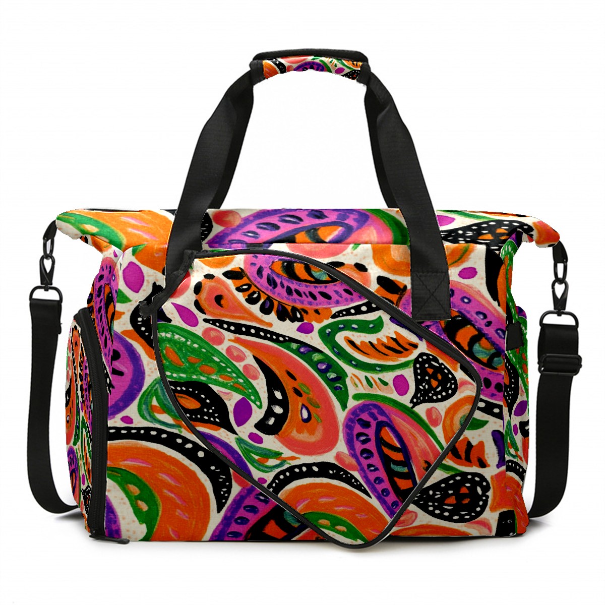 Pickleball Tote Bag Carryall for Paddles Balls and Accessories, Portable Lightweight Gear Bag for Players(Paisley)