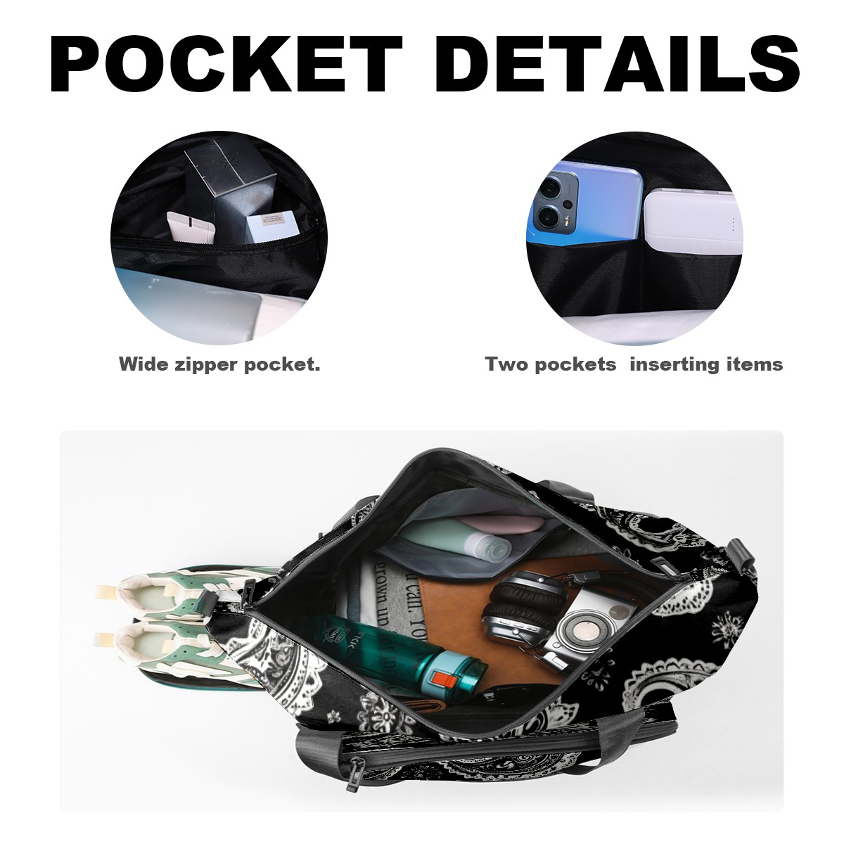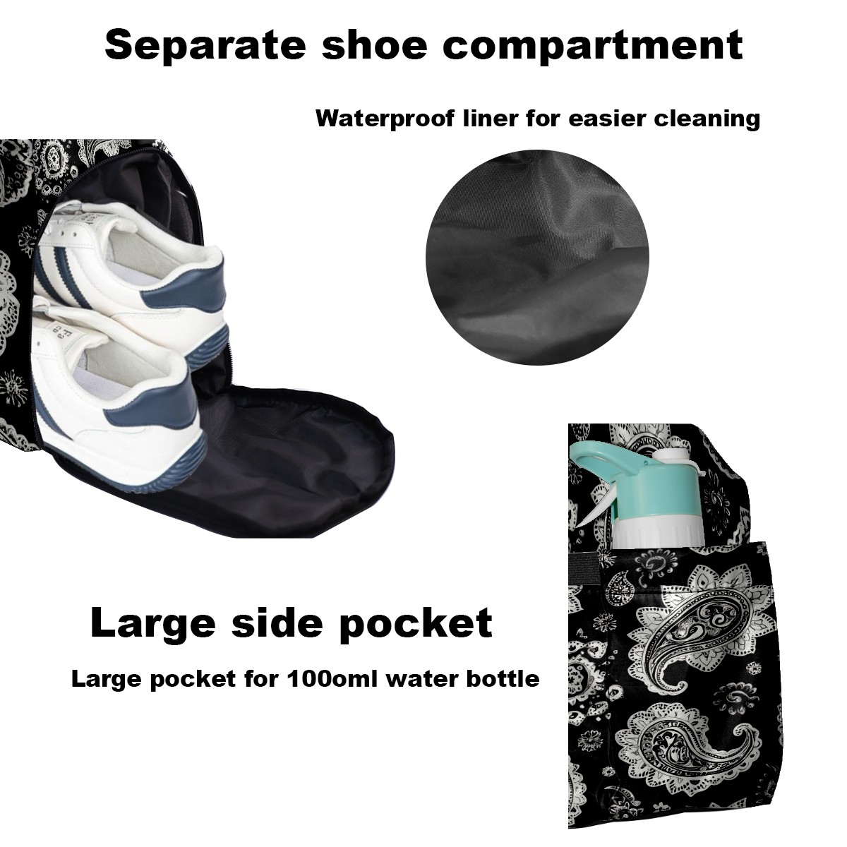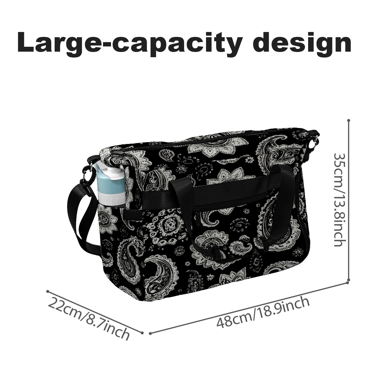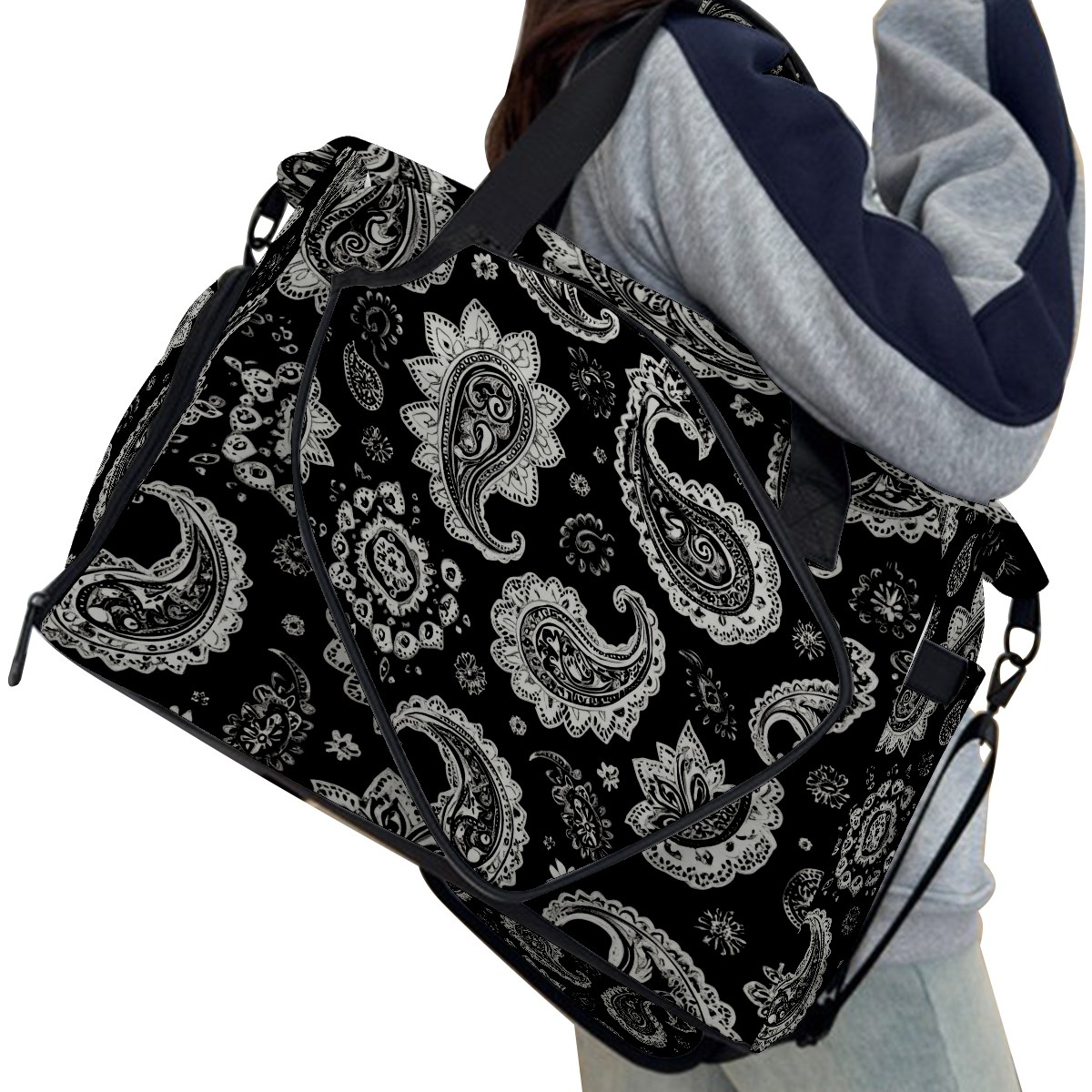 Pickleball Tote Bag Carryall for Paddles Balls and Accessories, Portable Lightweight Gear Bag for Players(Black And White Paisley)