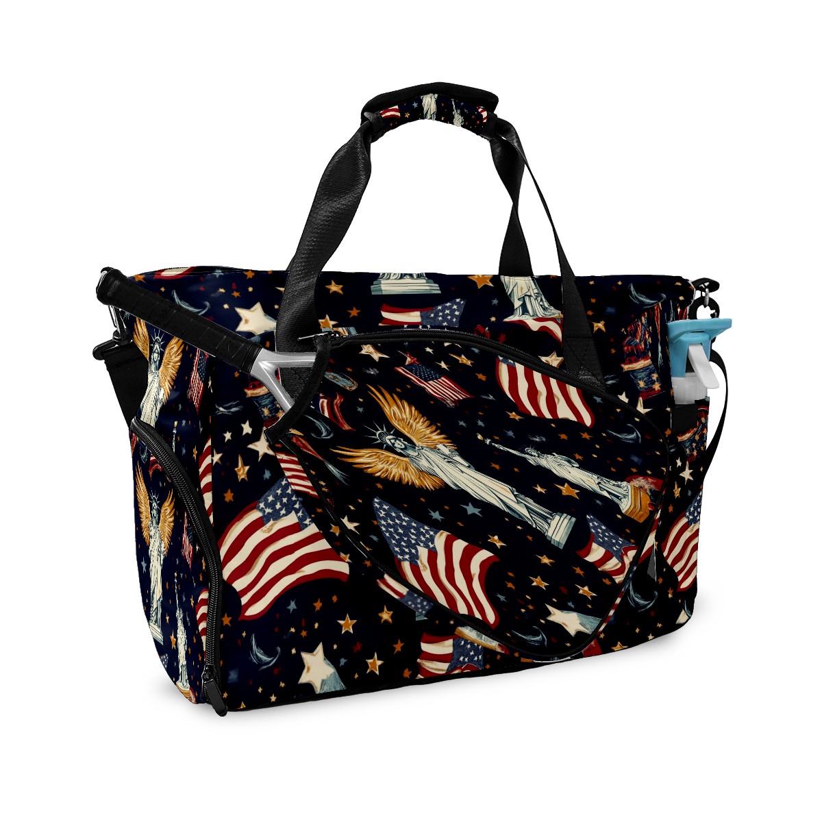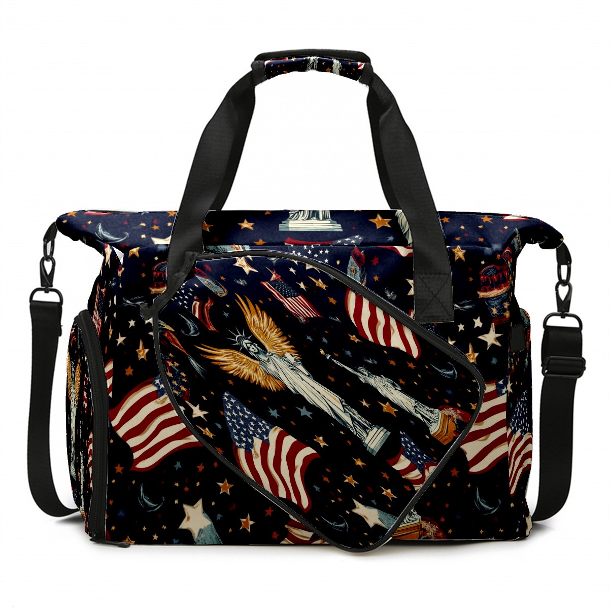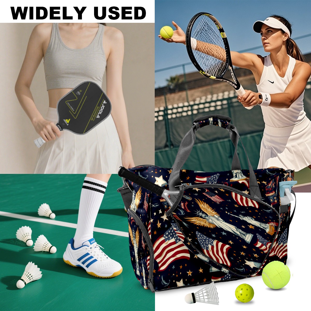 Pickleball Tote Bag Carryall for Paddles Balls and Accessories, Portable Lightweight Gear Bag for Players(Bald Eagle And American Flag)
