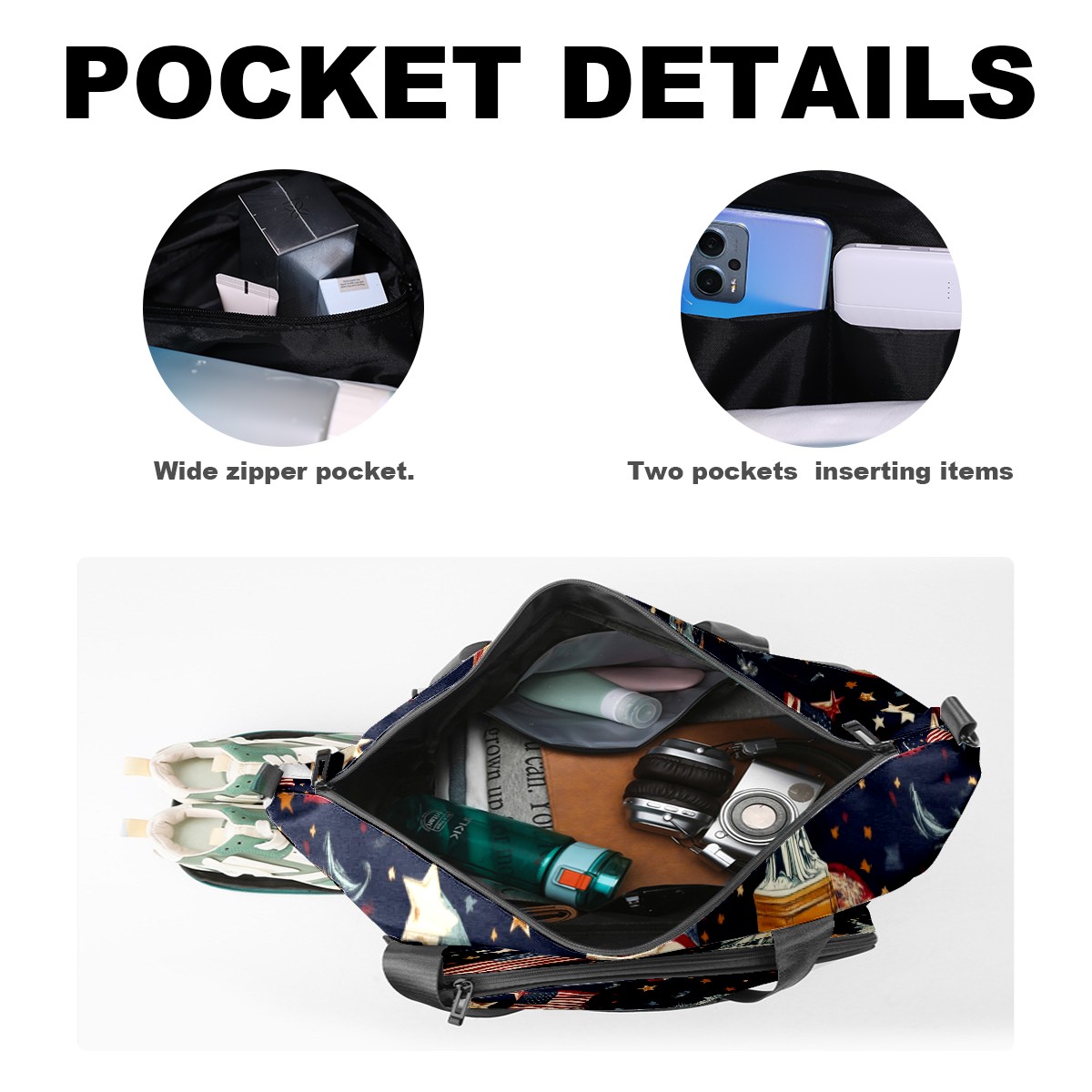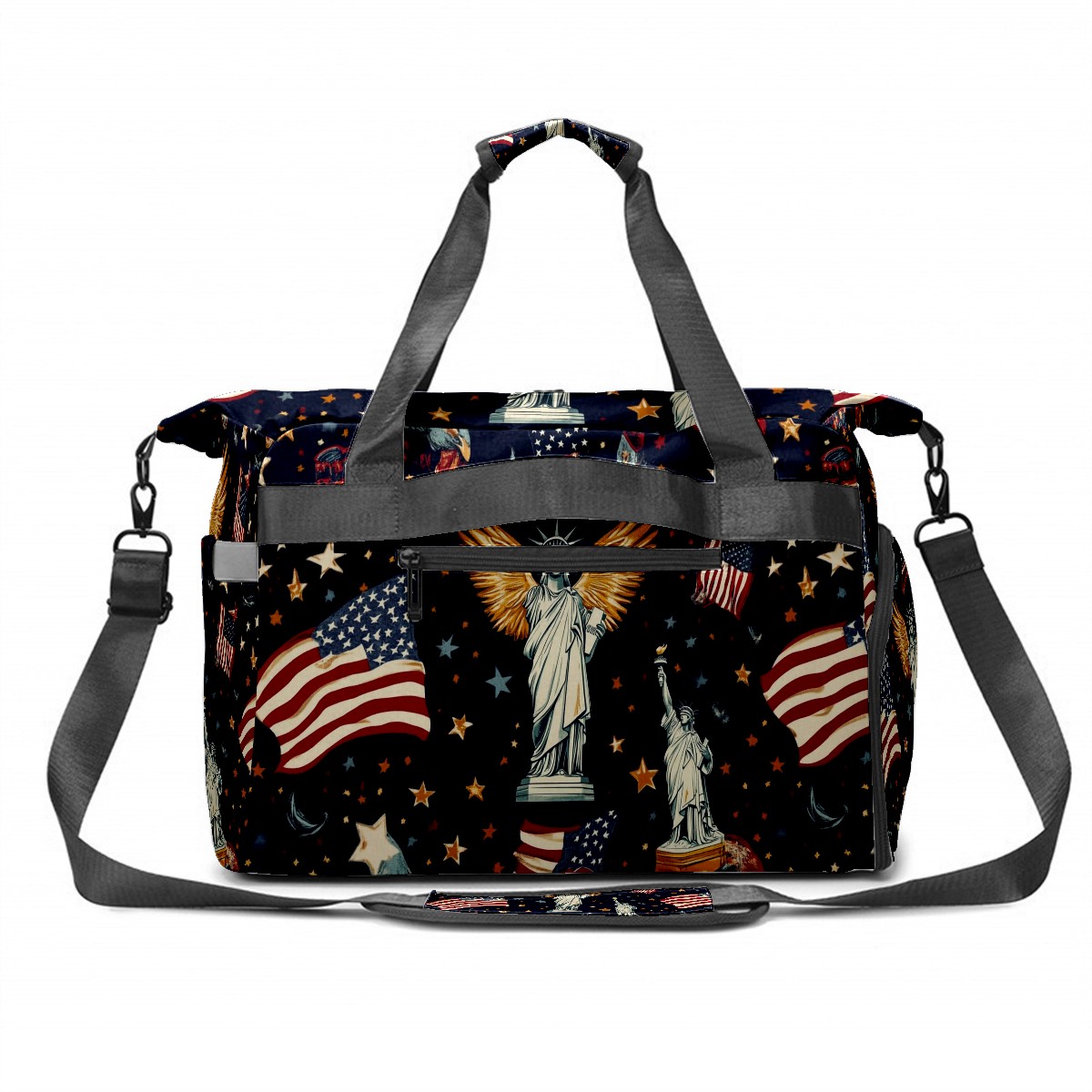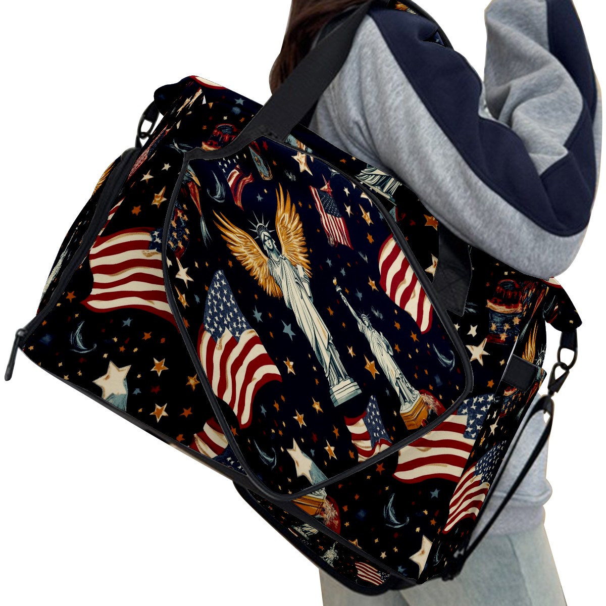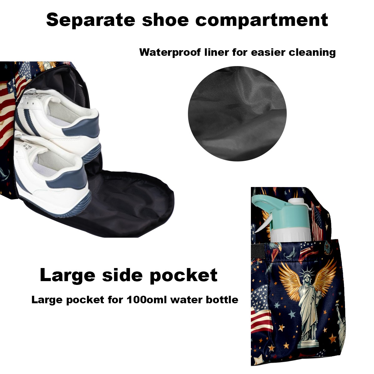 Pickleball Tote Bag Carryall for Paddles Balls and Accessories, Portable Lightweight Gear Bag for Players(Bald Eagle And American Flag)