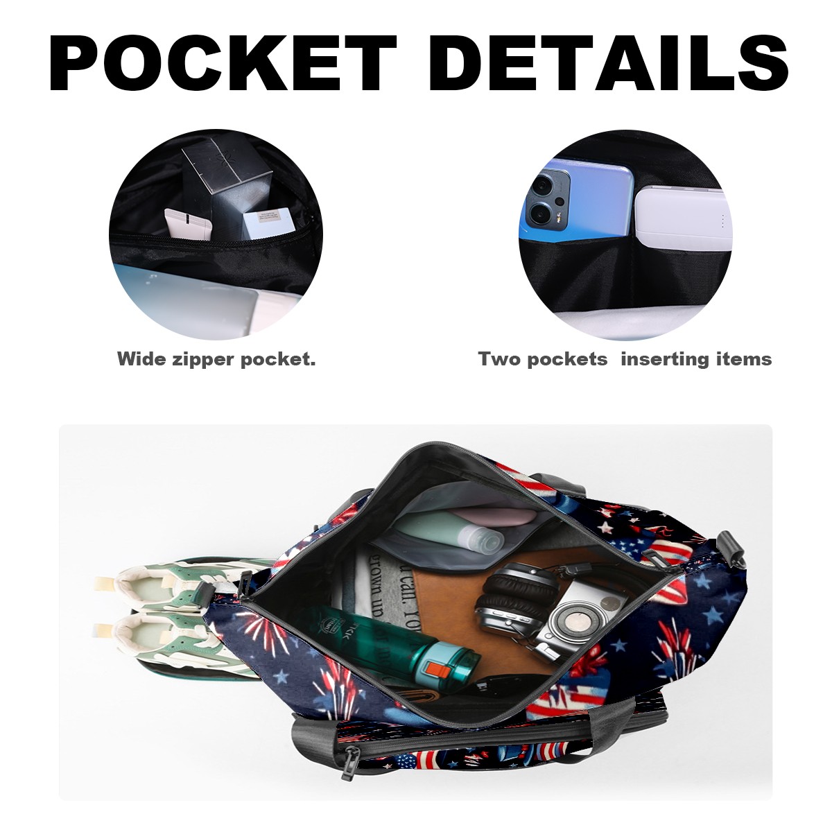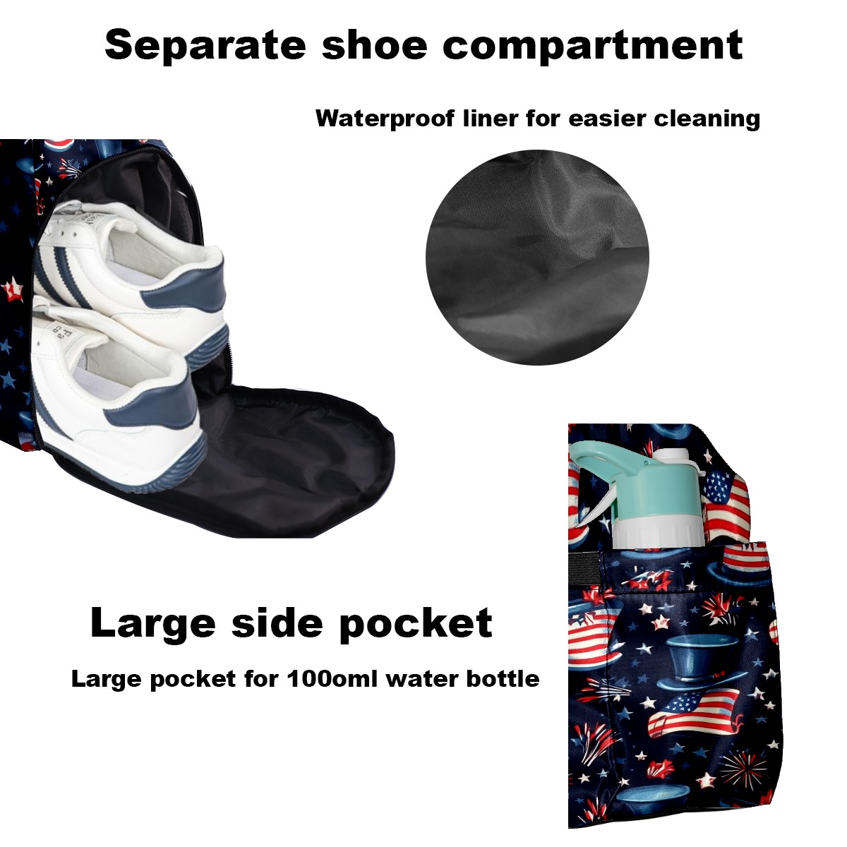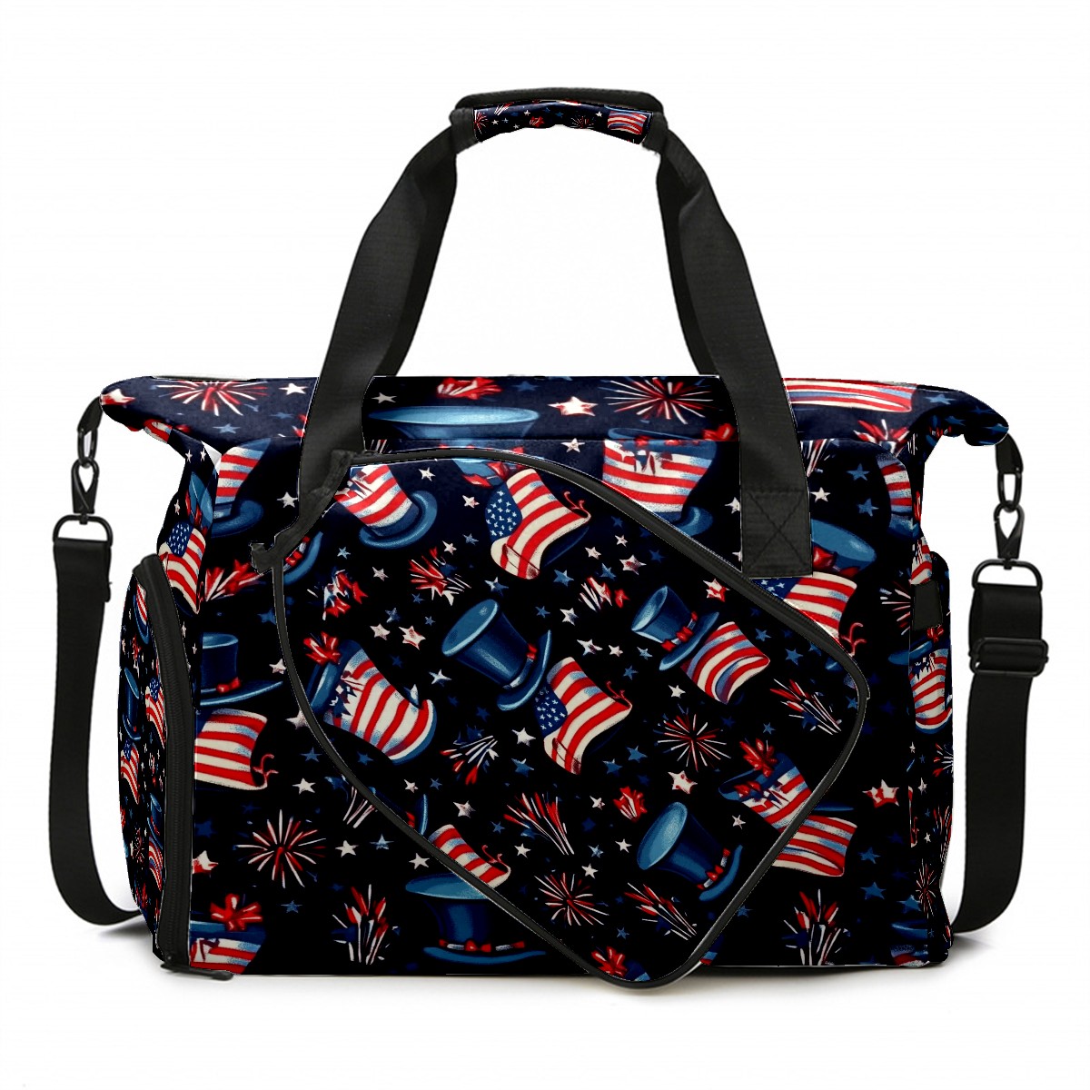 Pickleball Tote Bag Carryall for Paddles Balls and Accessories, Portable Lightweight Gear Bag for Players(American Flag Pattern)