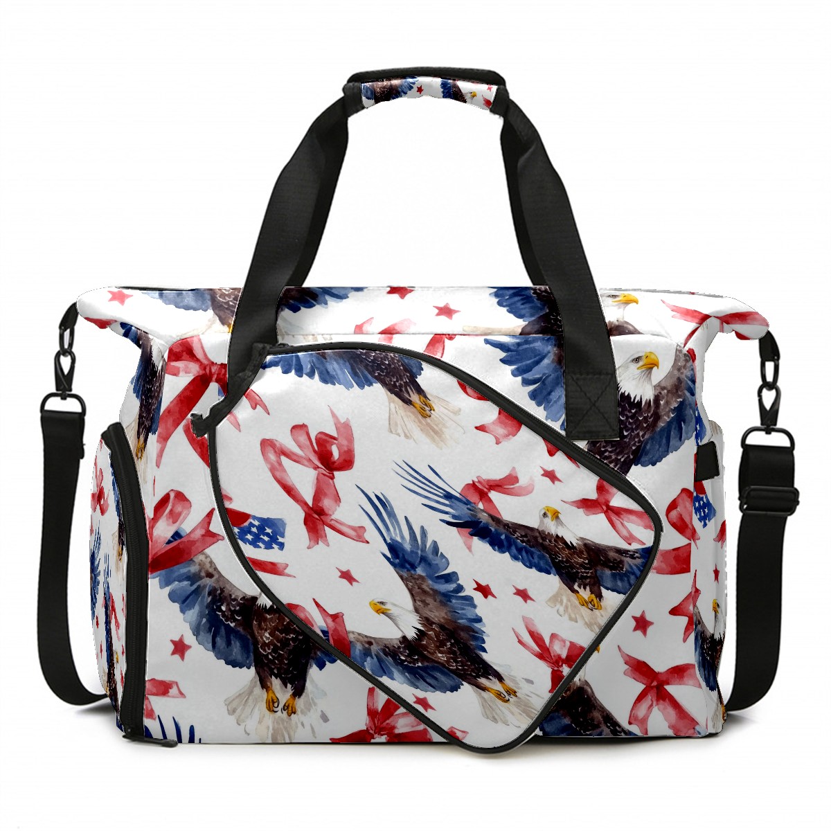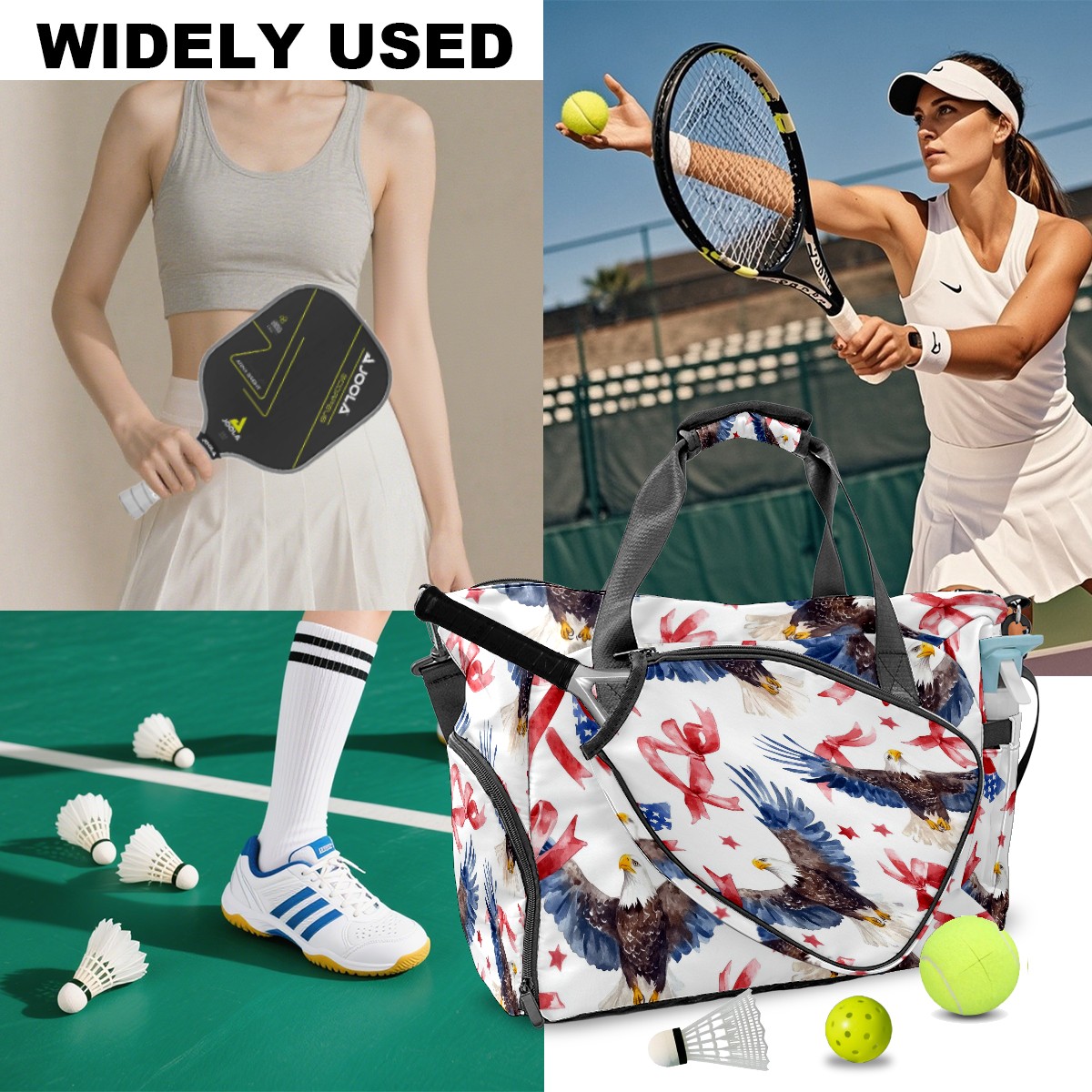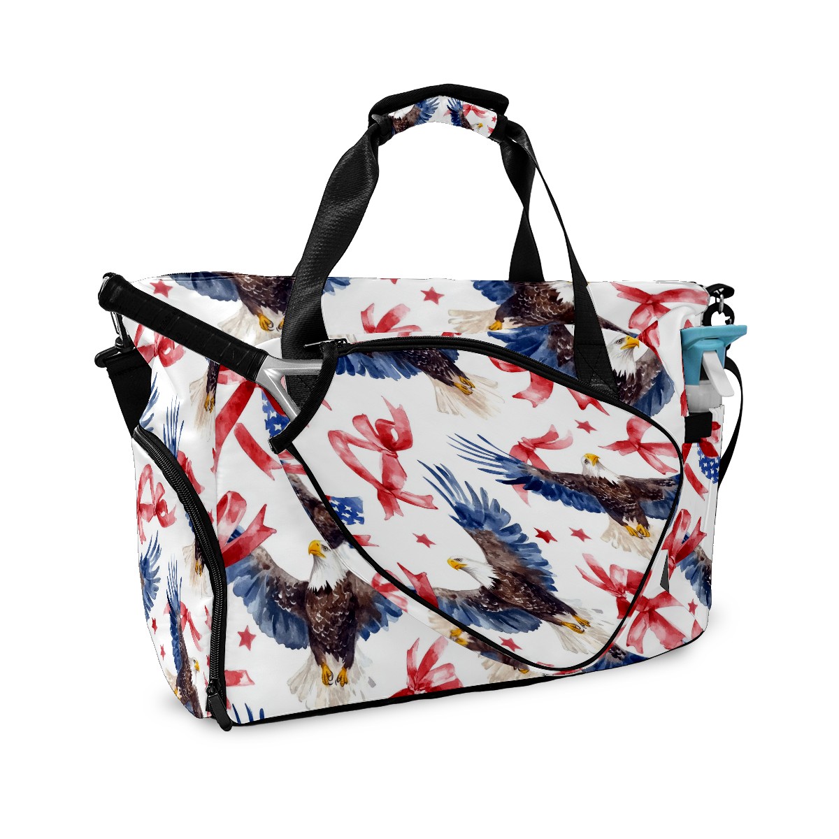 Pickleball Tote Bag Carryall for Paddles Balls and Accessories, Portable Lightweight Gear Bag for Players(American Flag Bows And Eagles)