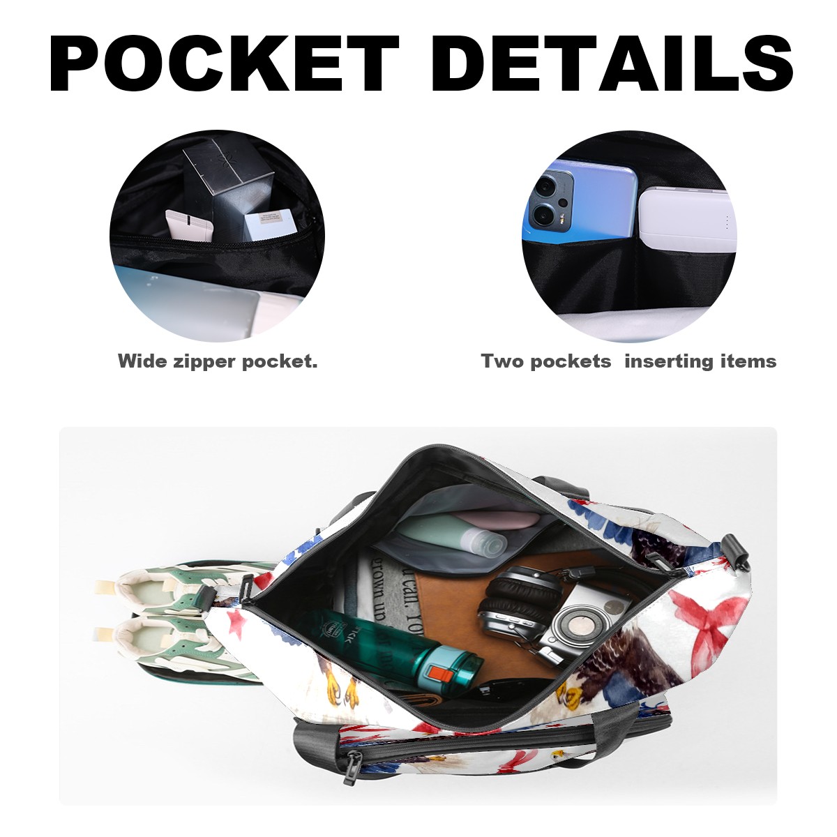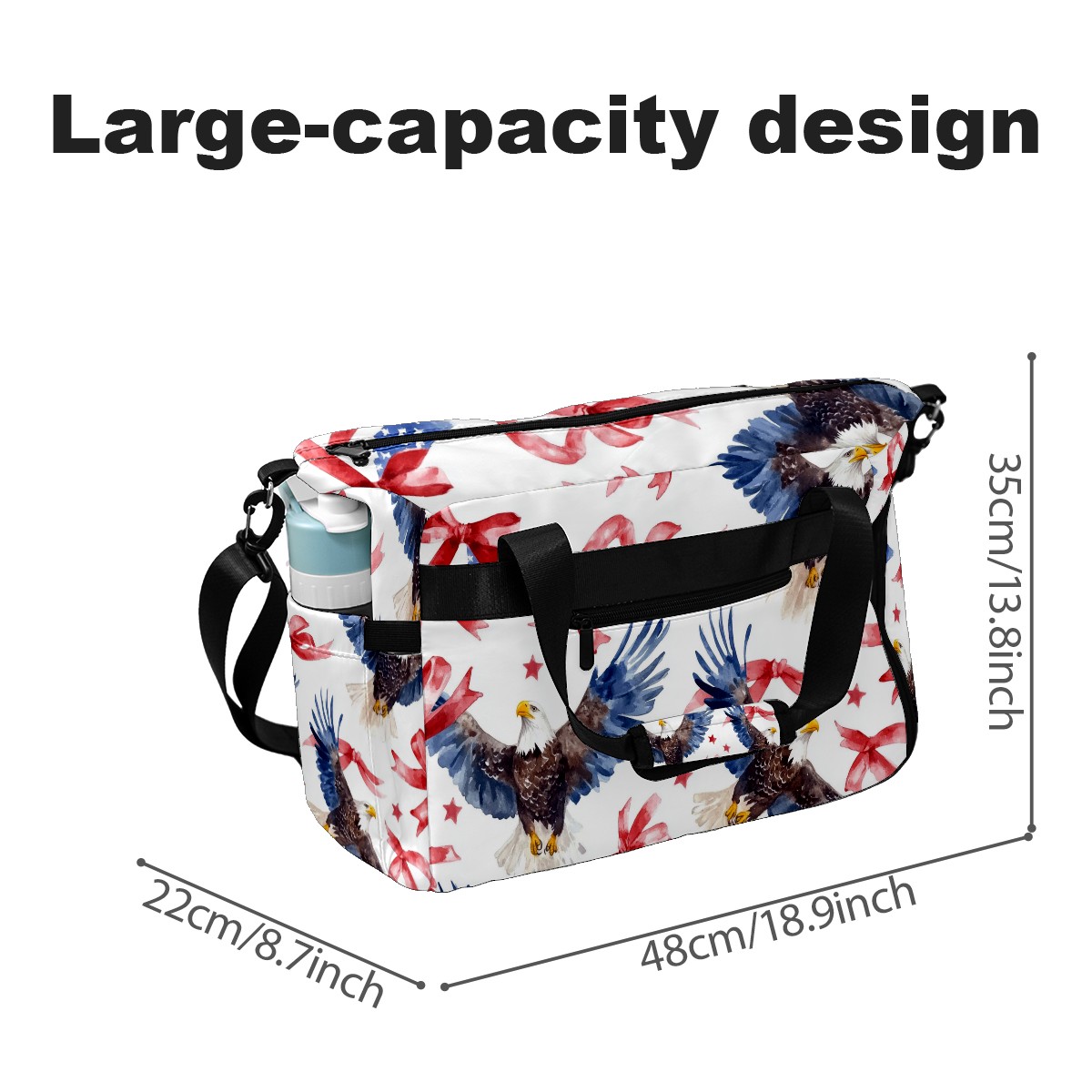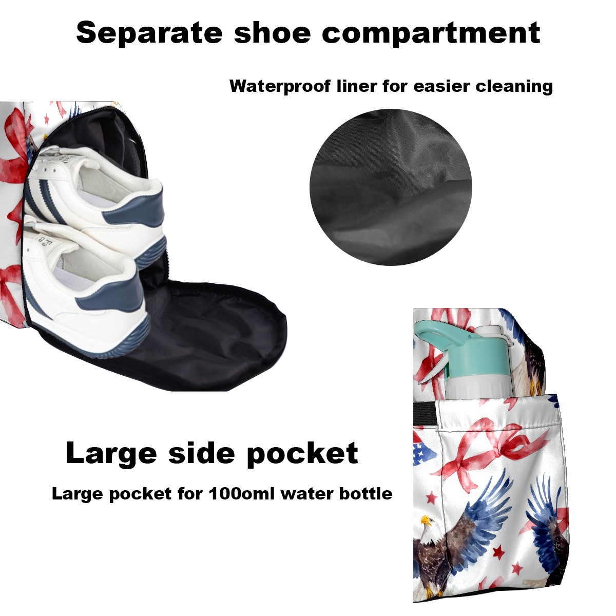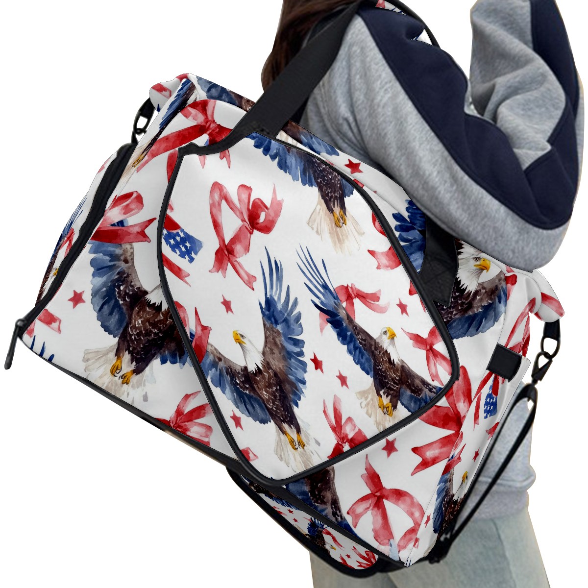 Pickleball Tote Bag Carryall for Paddles Balls and Accessories, Portable Lightweight Gear Bag for Players(American Flag Bows And Eagles)