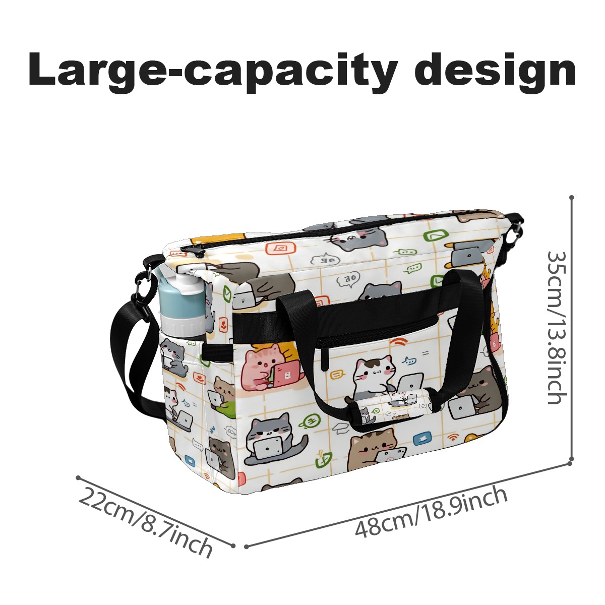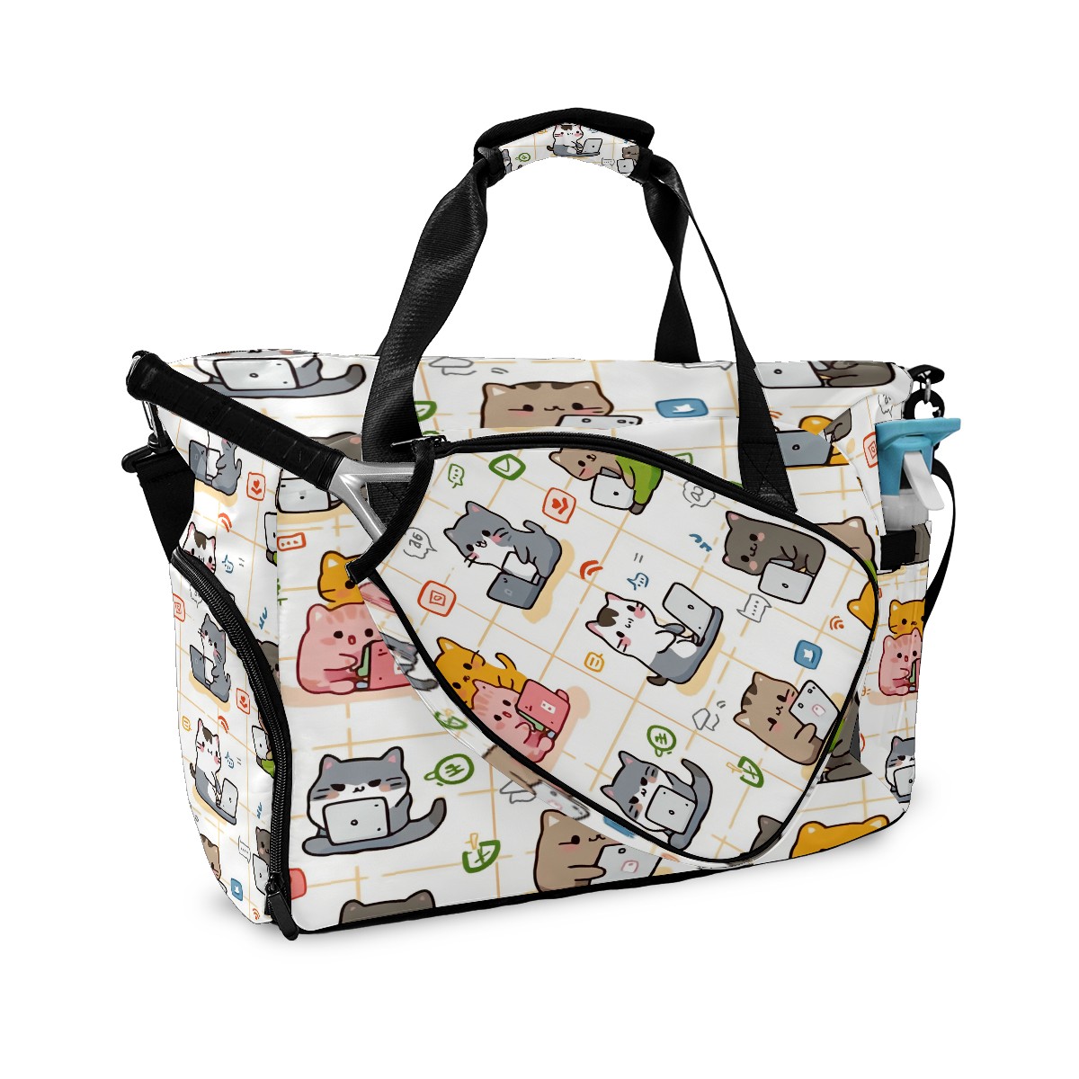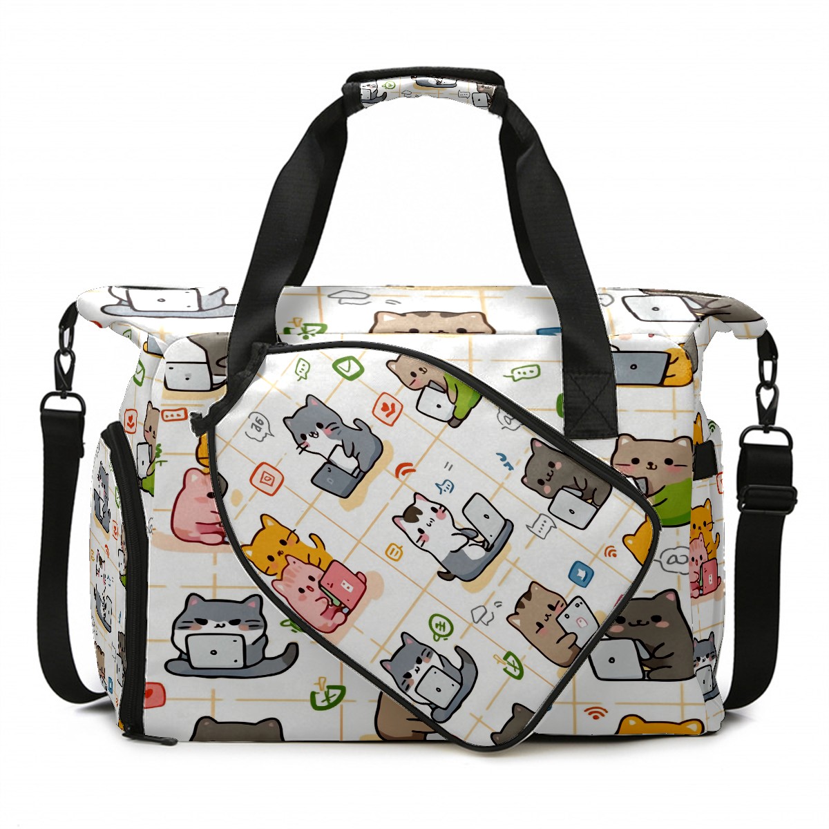 Pickleball Tote Bag Carryall for Paddles Balls and Accessories, Portable Lightweight Gear Bag for Players(Cats Working On Laptops)