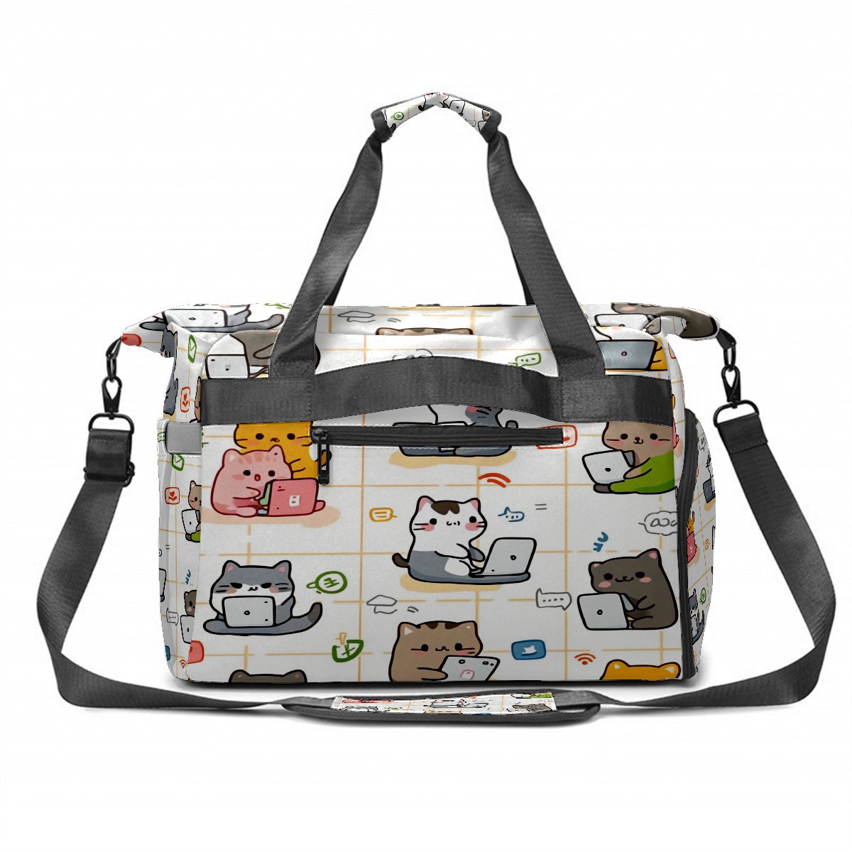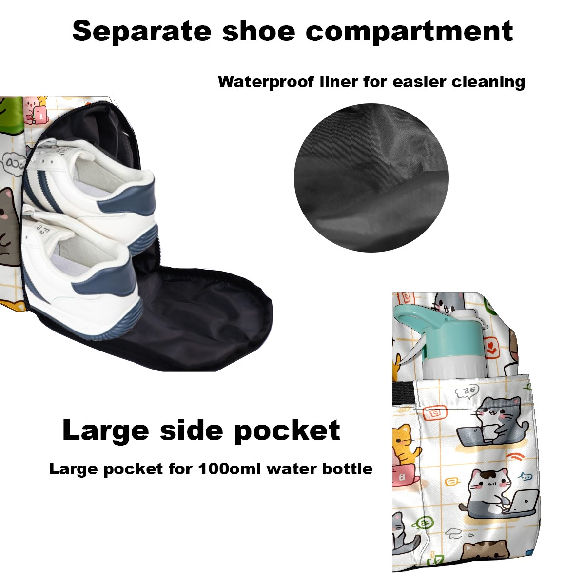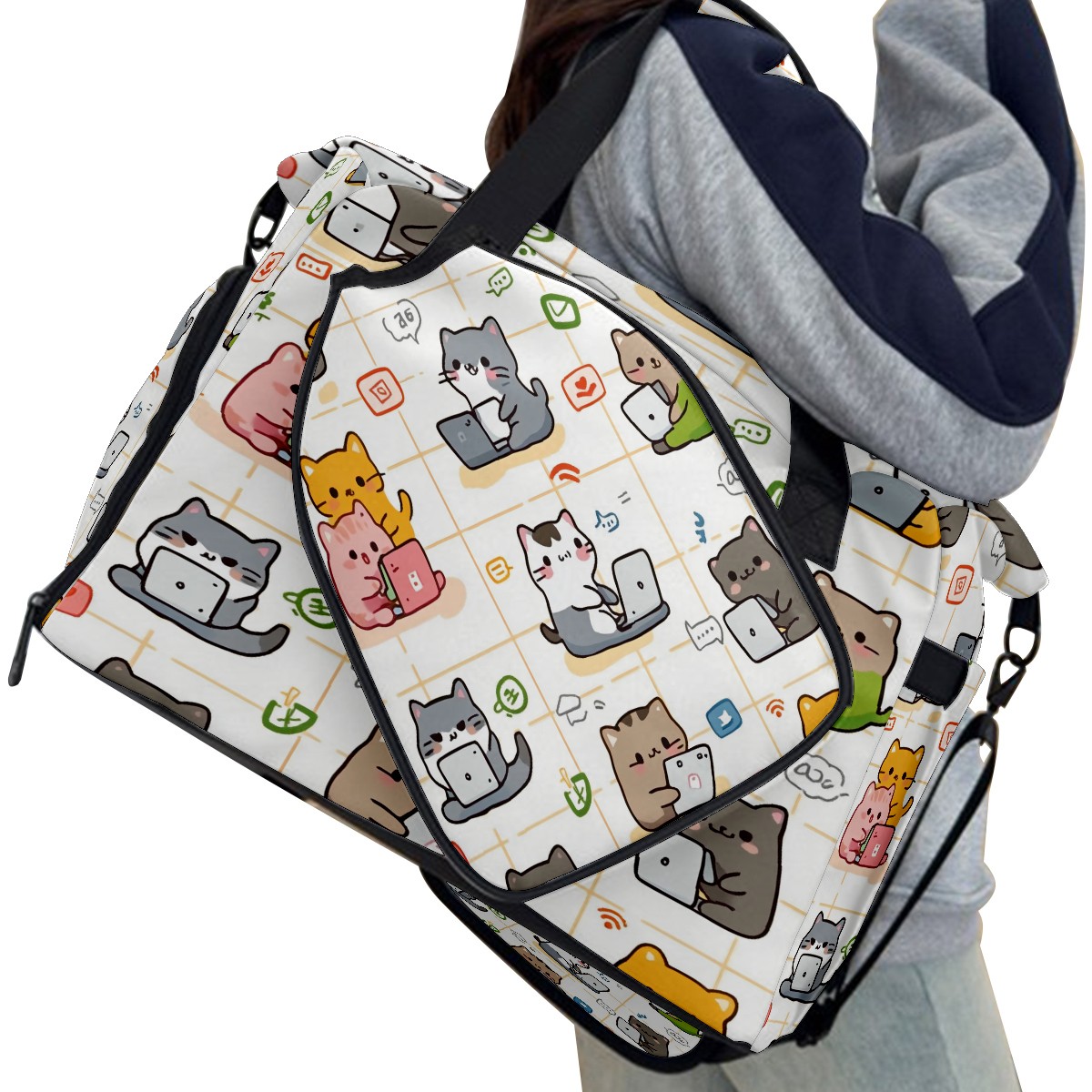Pickleball Tote Bag Carryall for Paddles Balls and Accessories, Portable Lightweight Gear Bag for Players(Cats Working On Laptops)