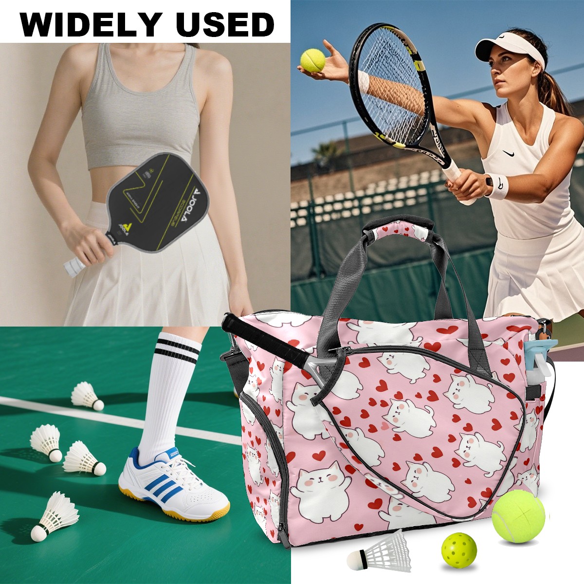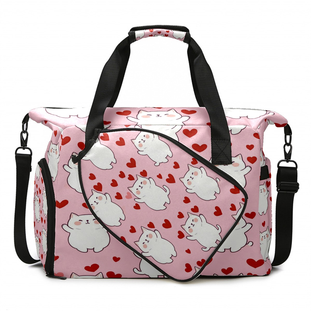 Pickleball Tote Bag Carryall for Paddles Balls and Accessories, Portable Lightweight Gear Bag for Players(Cats)
