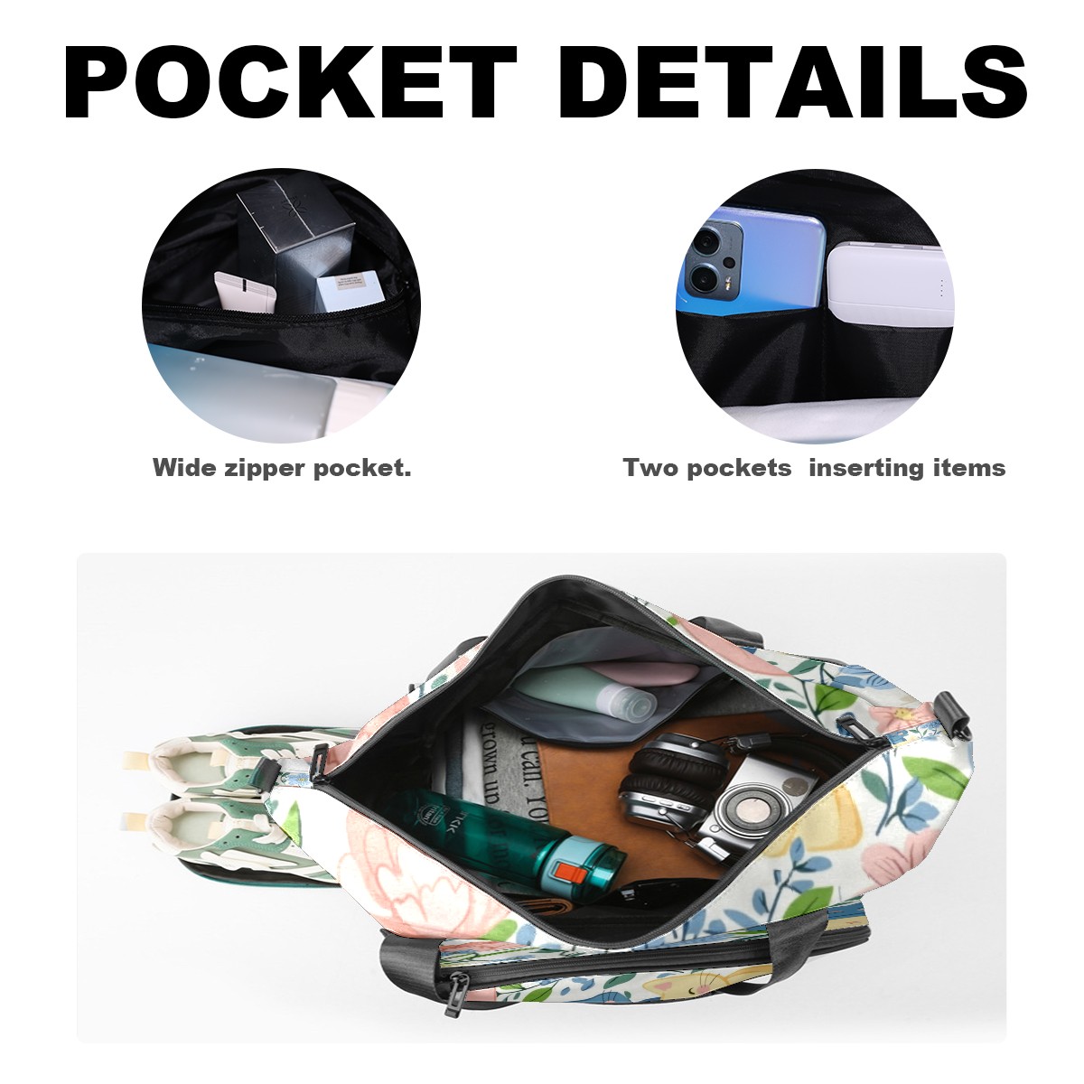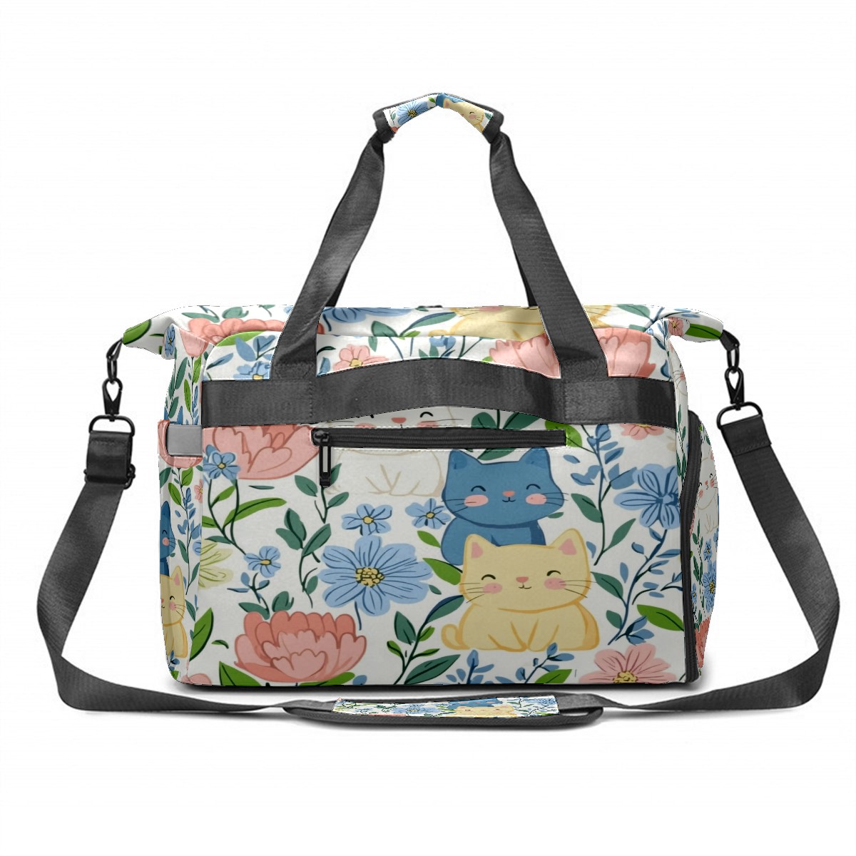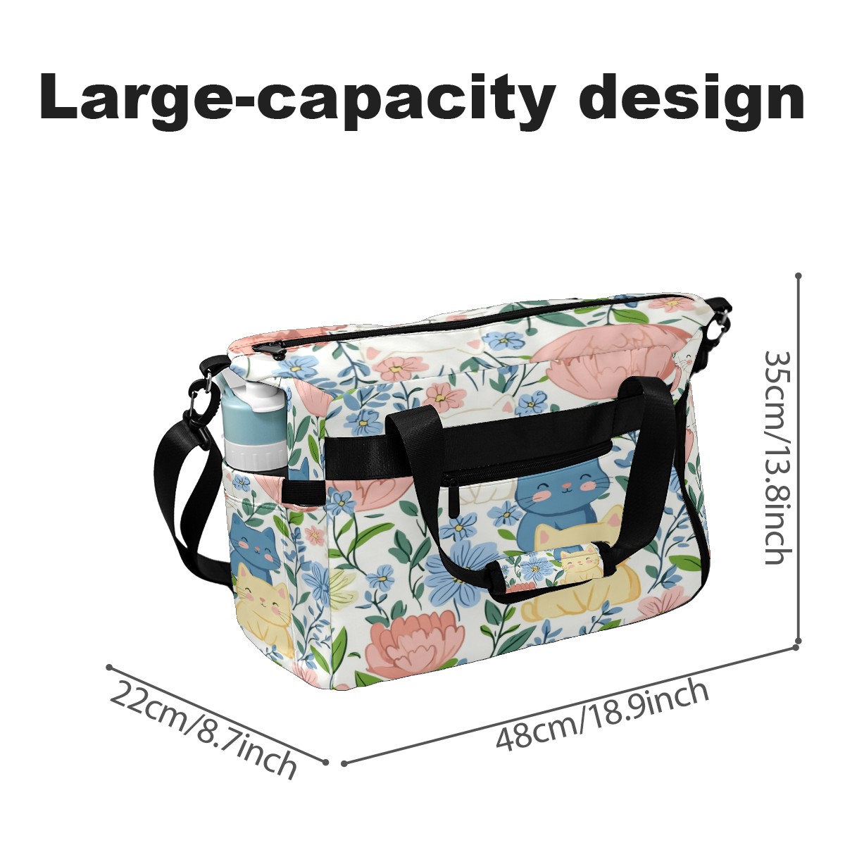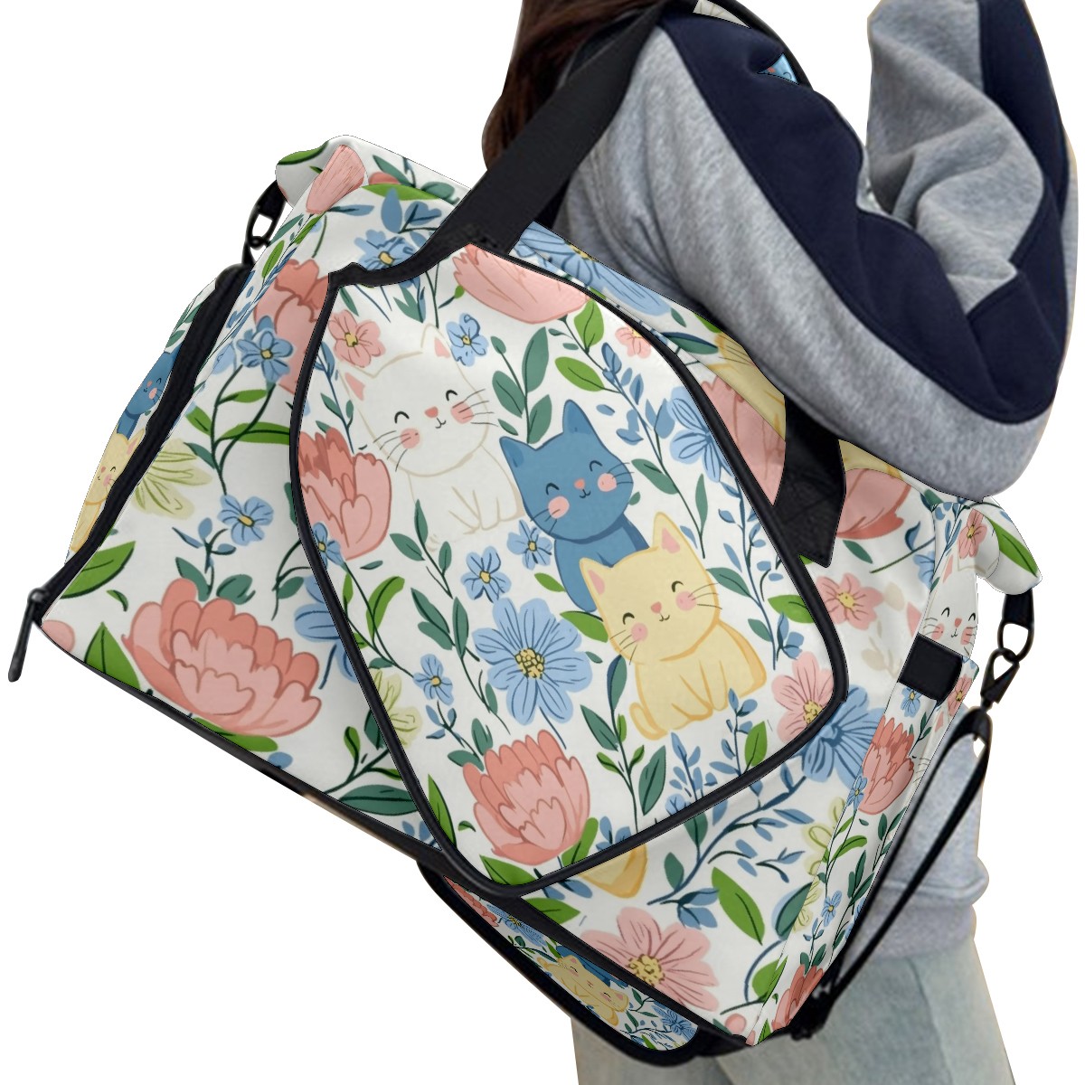Pickleball Tote Bag Carryall for Paddles Balls and Accessories, Portable Lightweight Gear Bag for Players(Cats In Flowers)