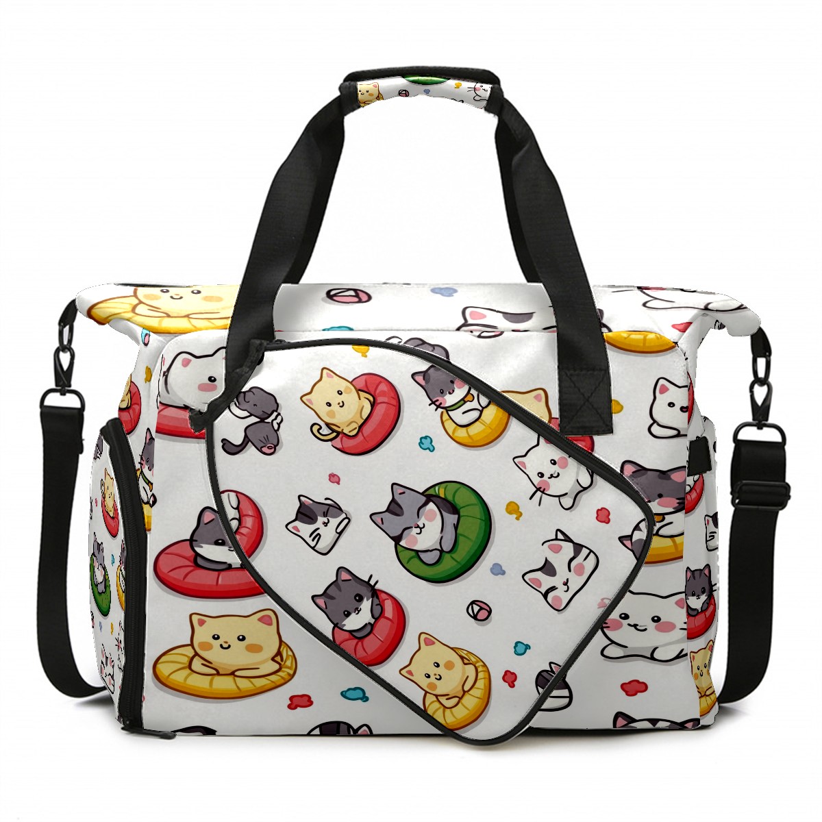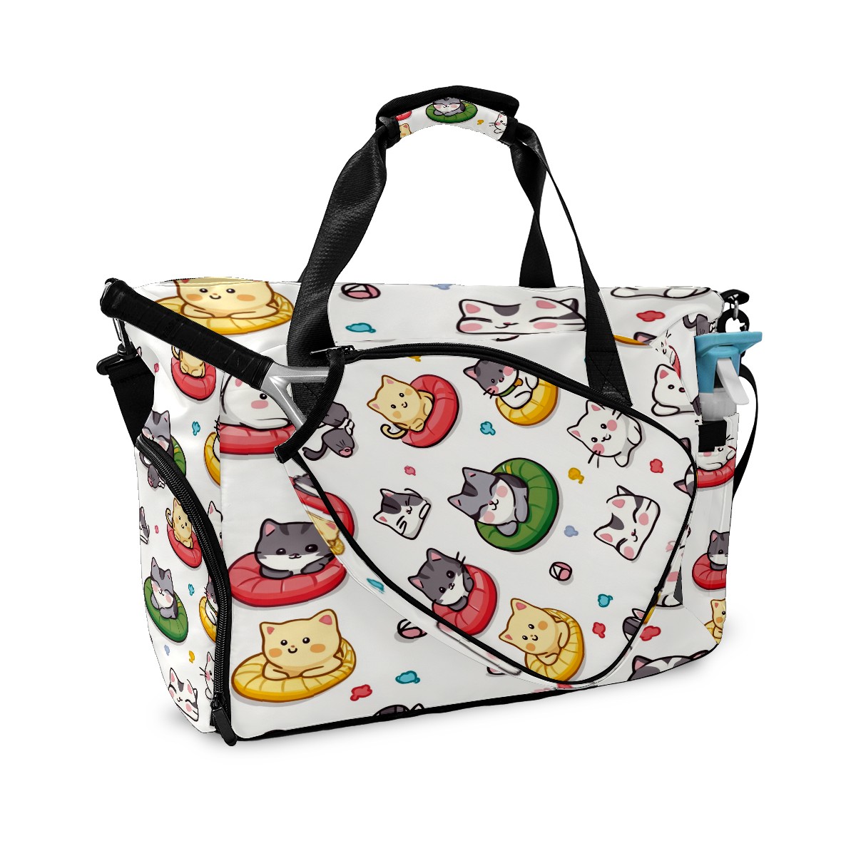 Pickleball Tote Bag Carryall for Paddles Balls and Accessories, Portable Lightweight Gear Bag for Players(Cats Playing)