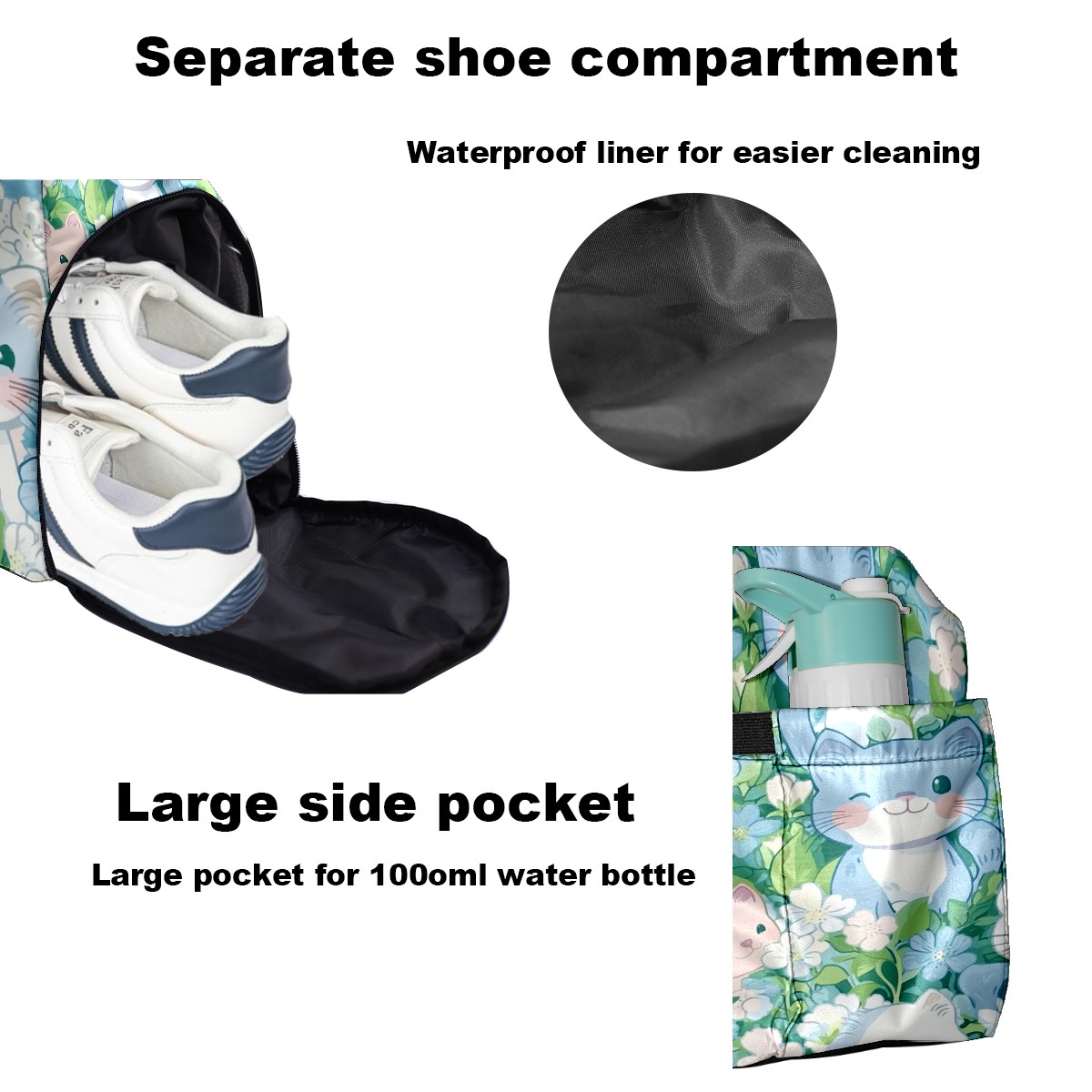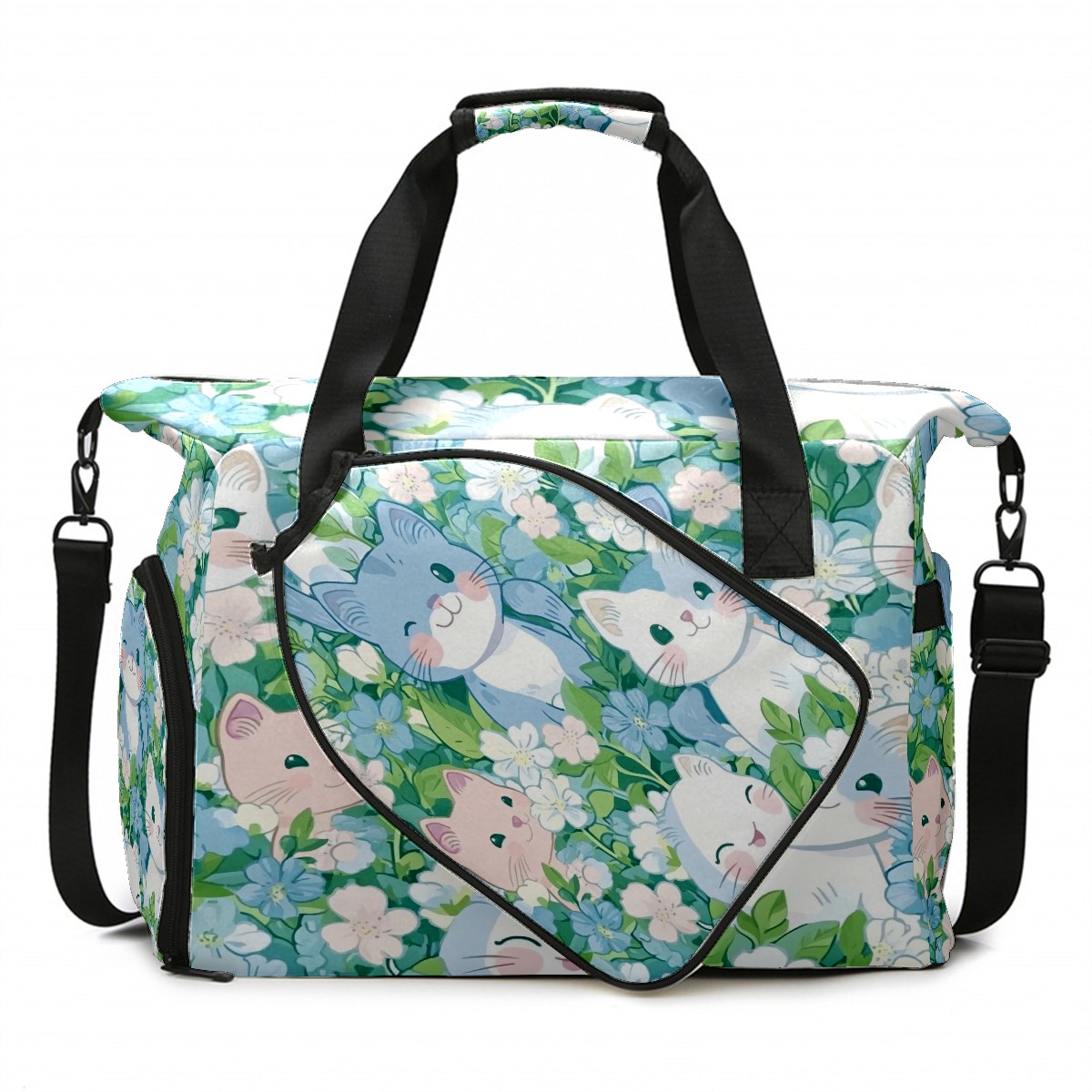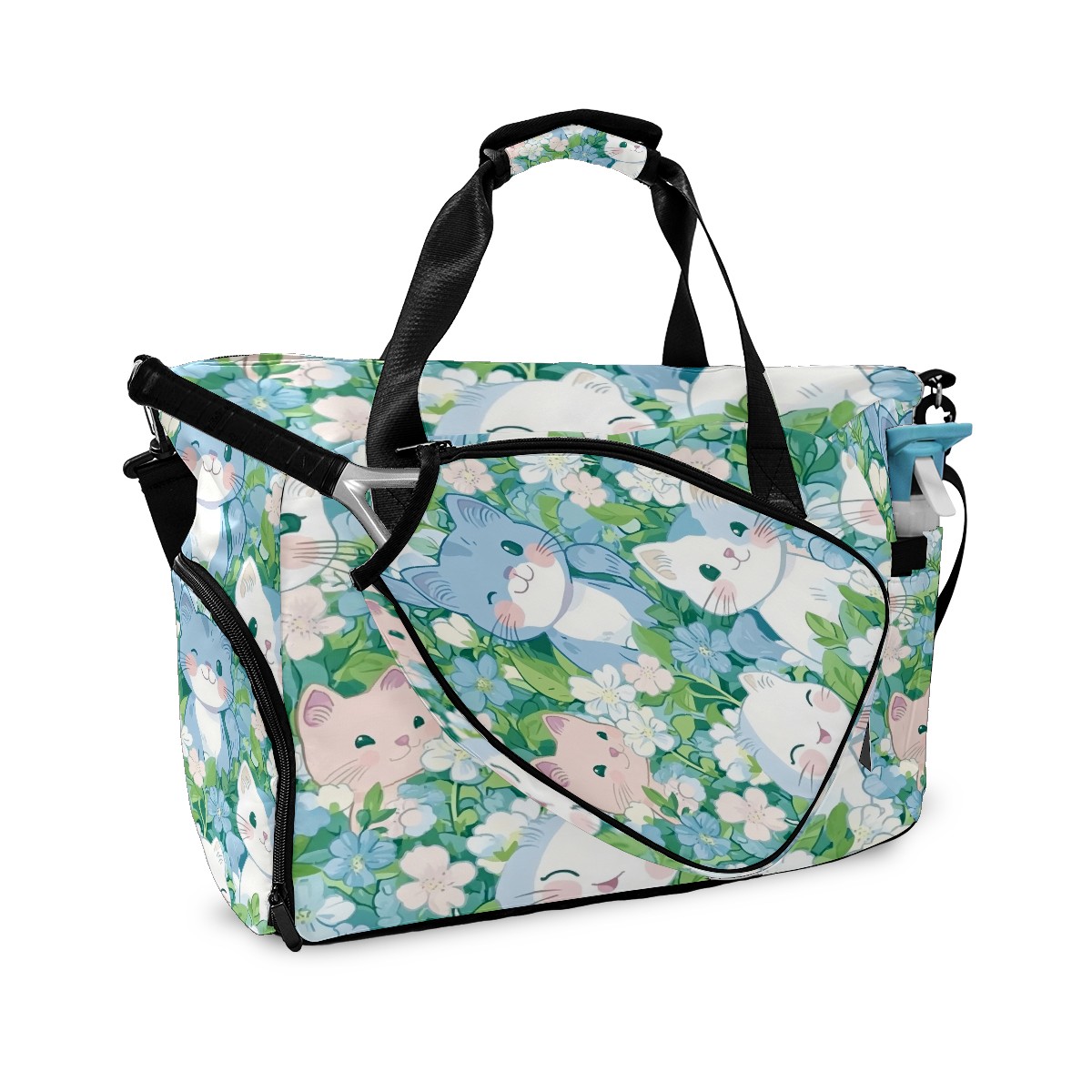 Pickleball Tote Bag Carryall for Paddles Balls and Accessories, Portable Lightweight Gear Bag for Players(Cartoon Cats)