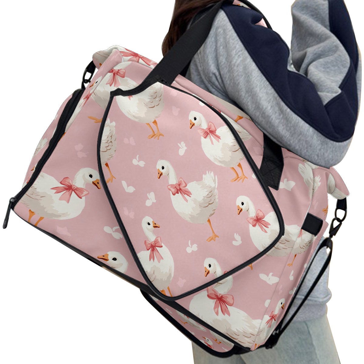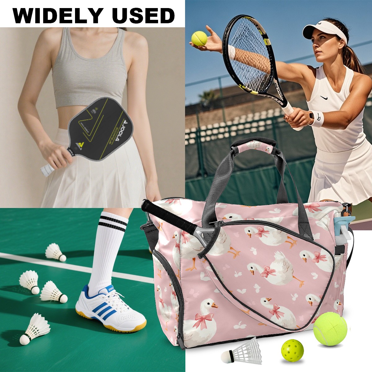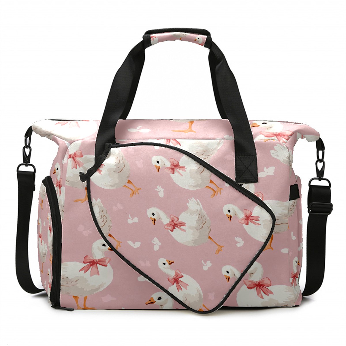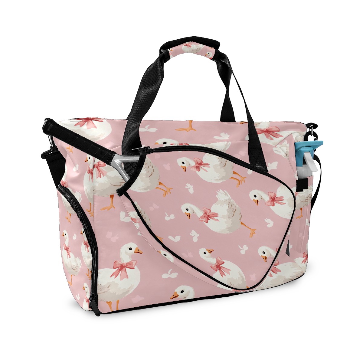 Pickleball Tote Bag Carryall for Paddles Balls and Accessories, Portable Lightweight Gear Bag for Players(White Geese)