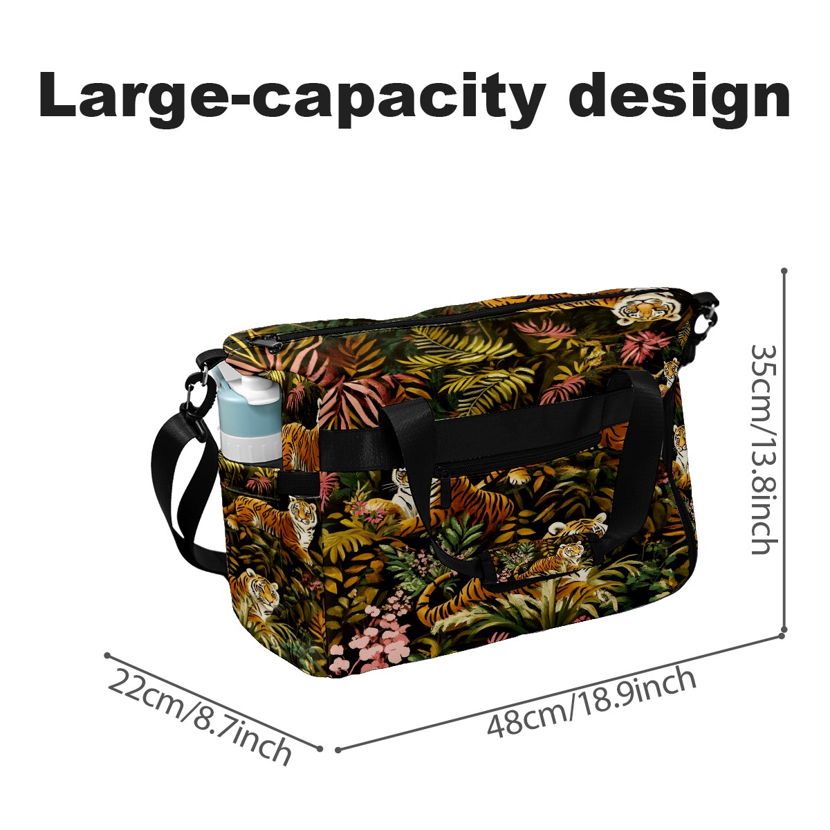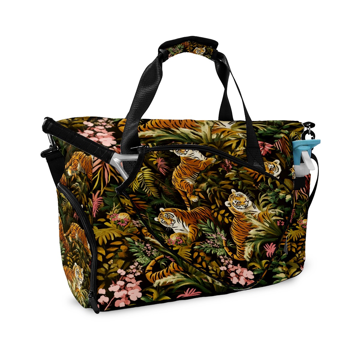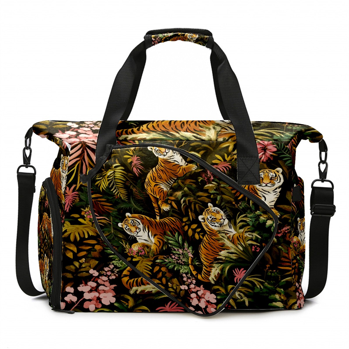 Pickleball Tote Bag Carryall for Paddles Balls and Accessories, Portable Lightweight Gear Bag for Players(Tigers And Leopards)