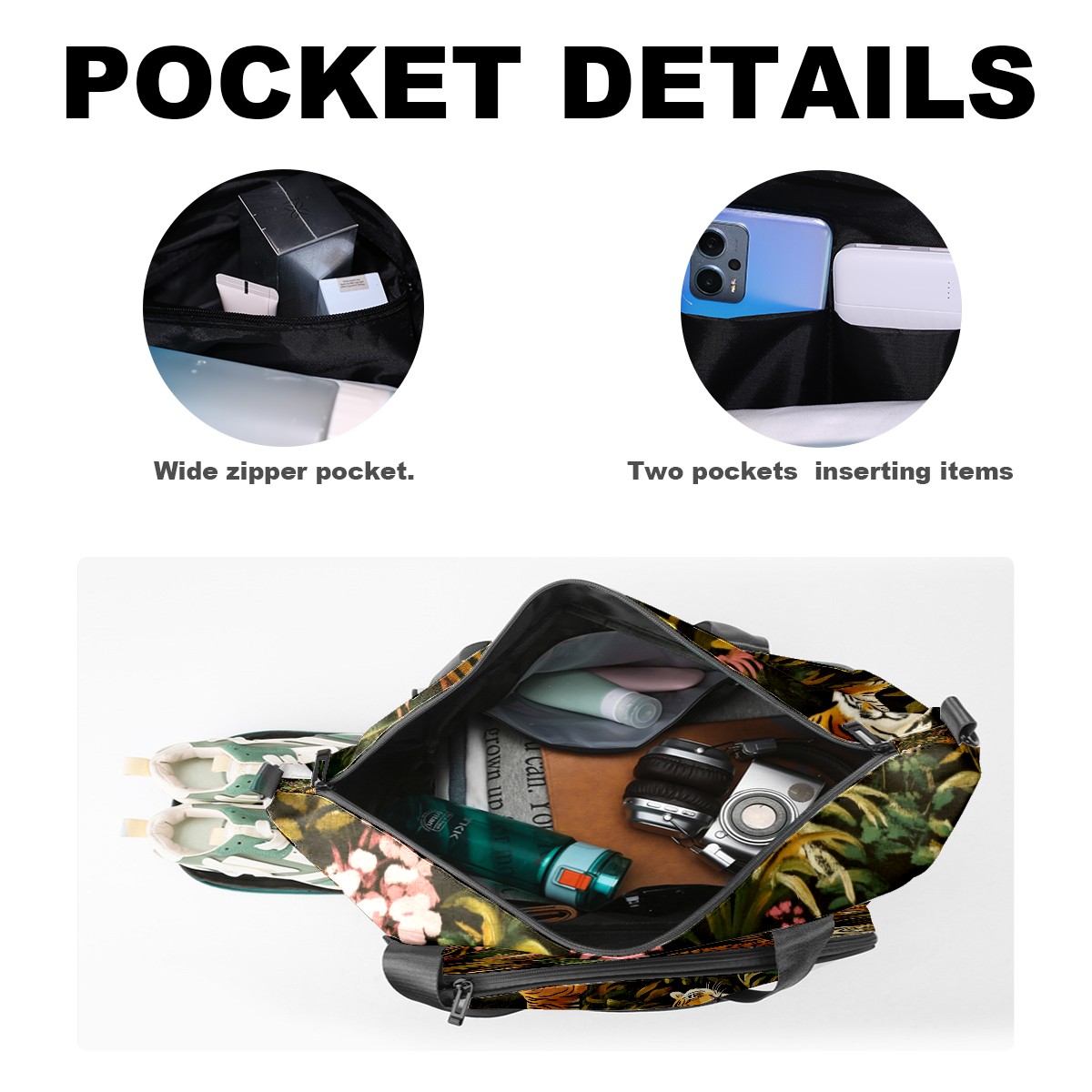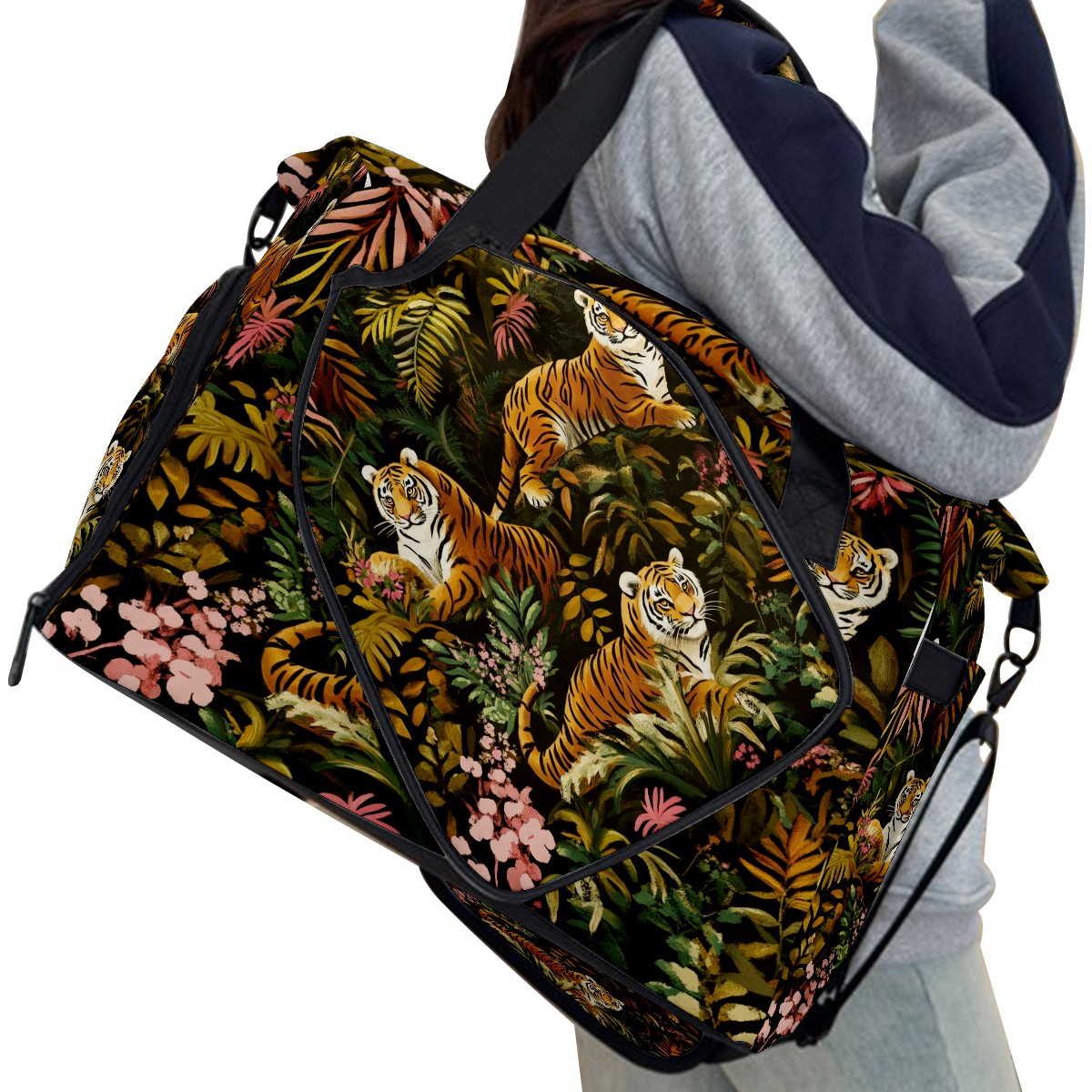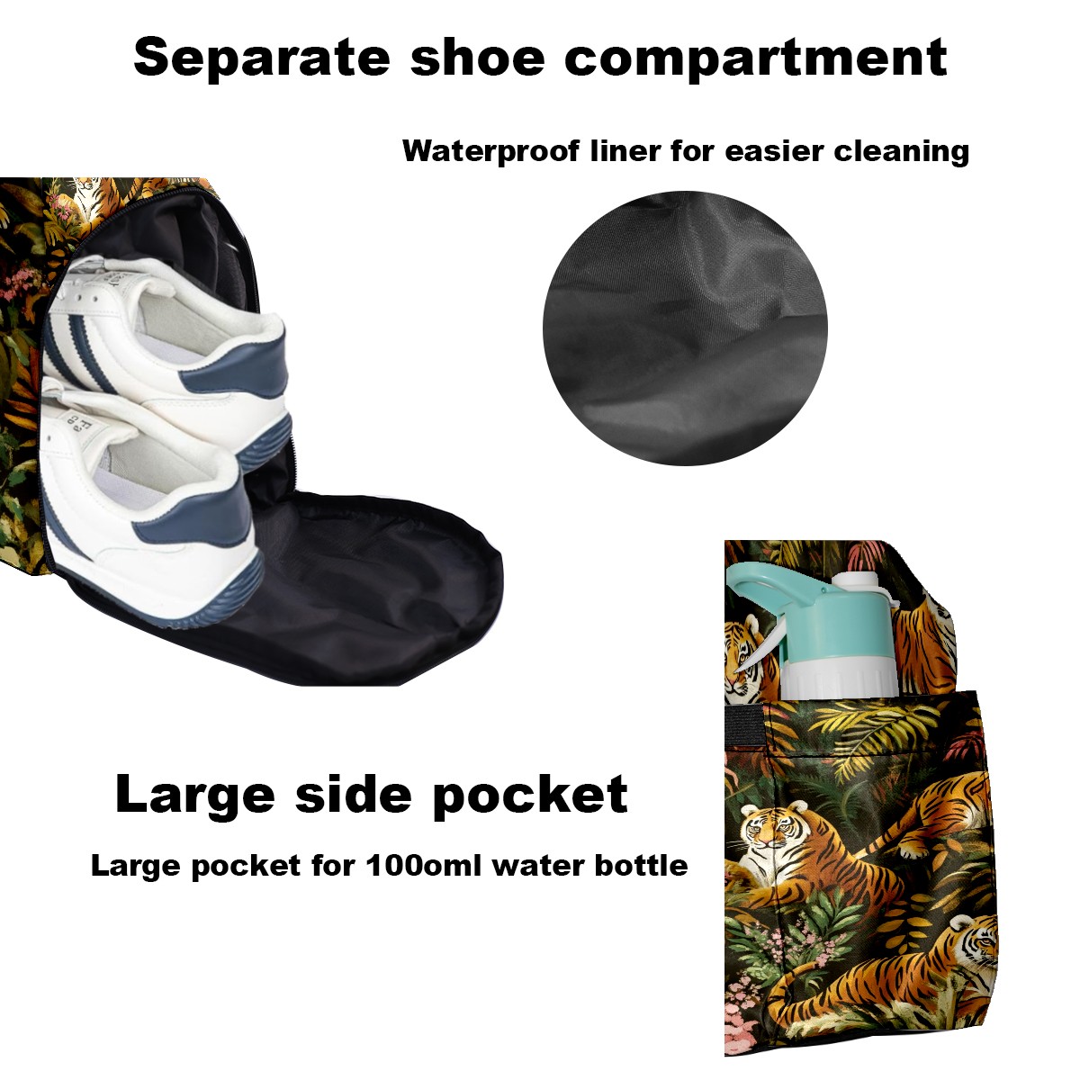 Pickleball Tote Bag Carryall for Paddles Balls and Accessories, Portable Lightweight Gear Bag for Players(Tigers And Leopards)