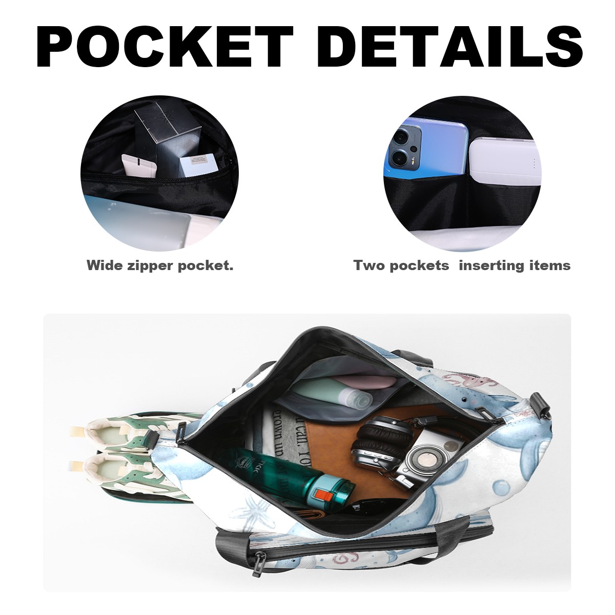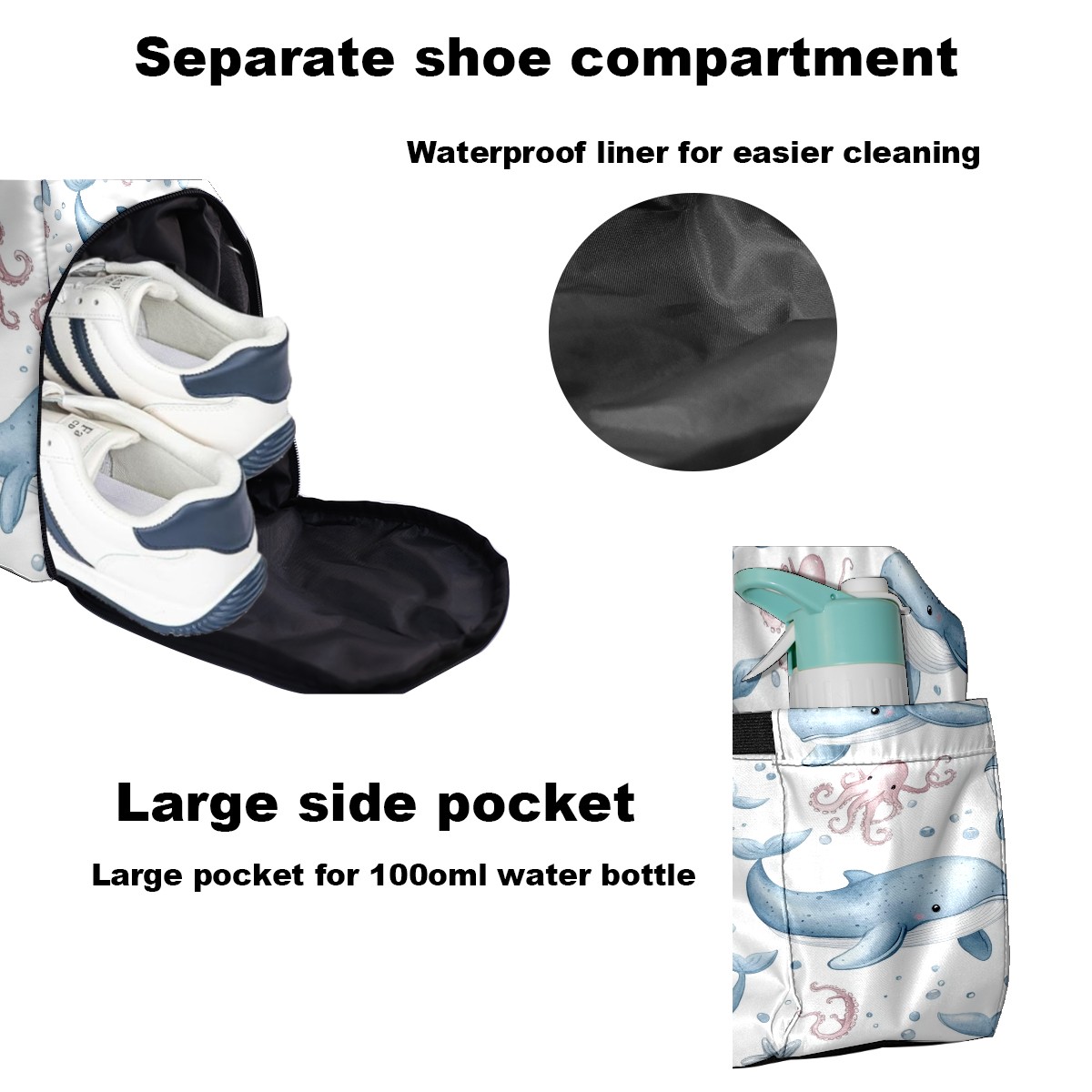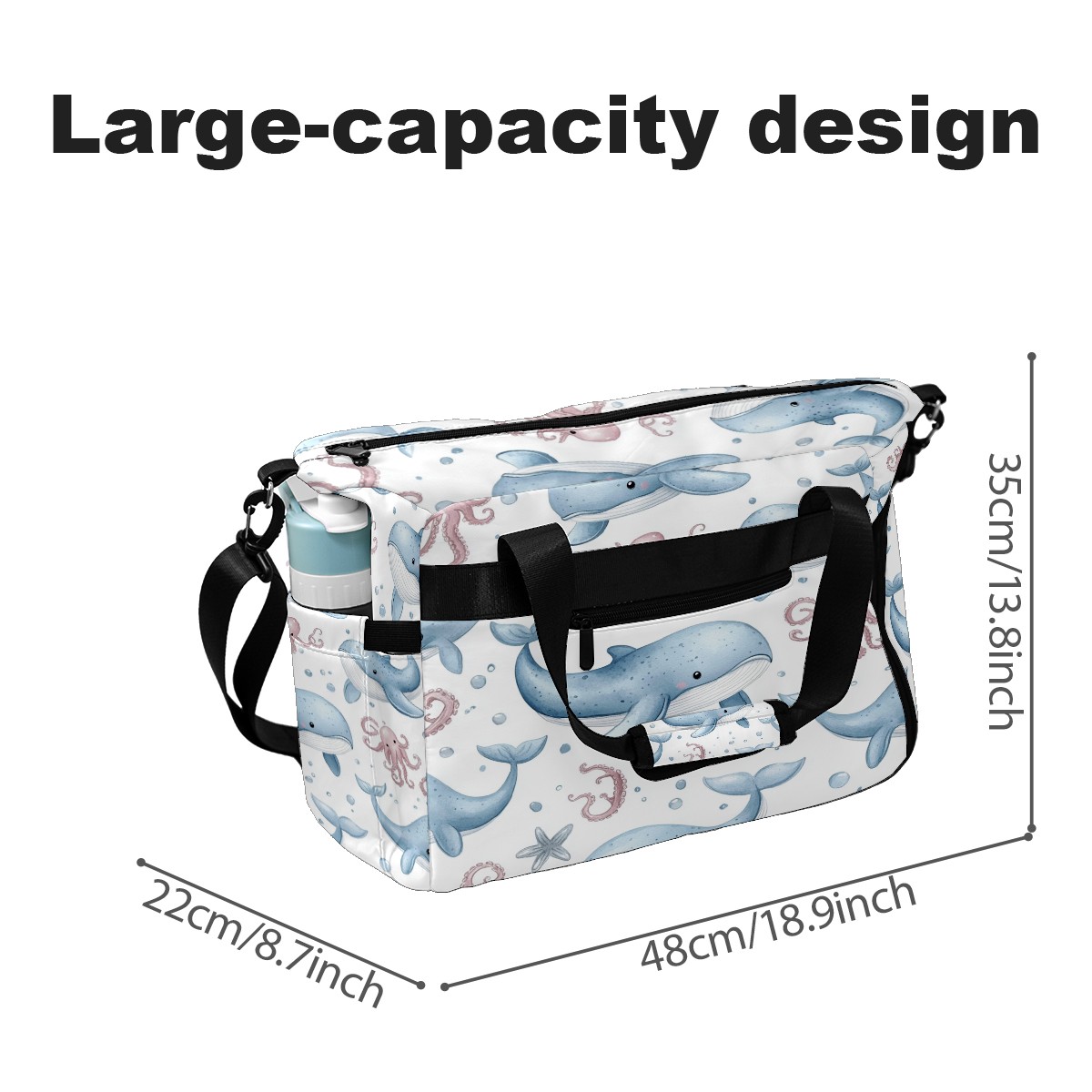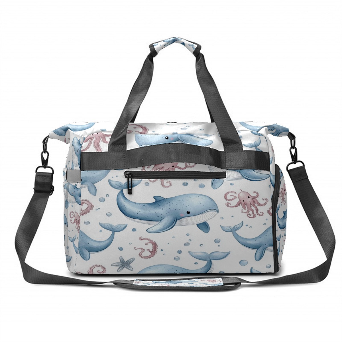 Pickleball Tote Bag Carryall for Paddles Balls and Accessories, Portable Lightweight Gear Bag for Players(Whales Octopus)
