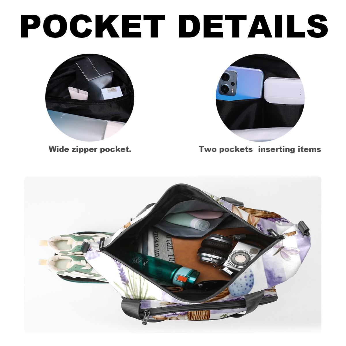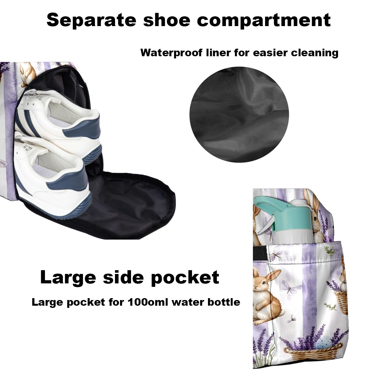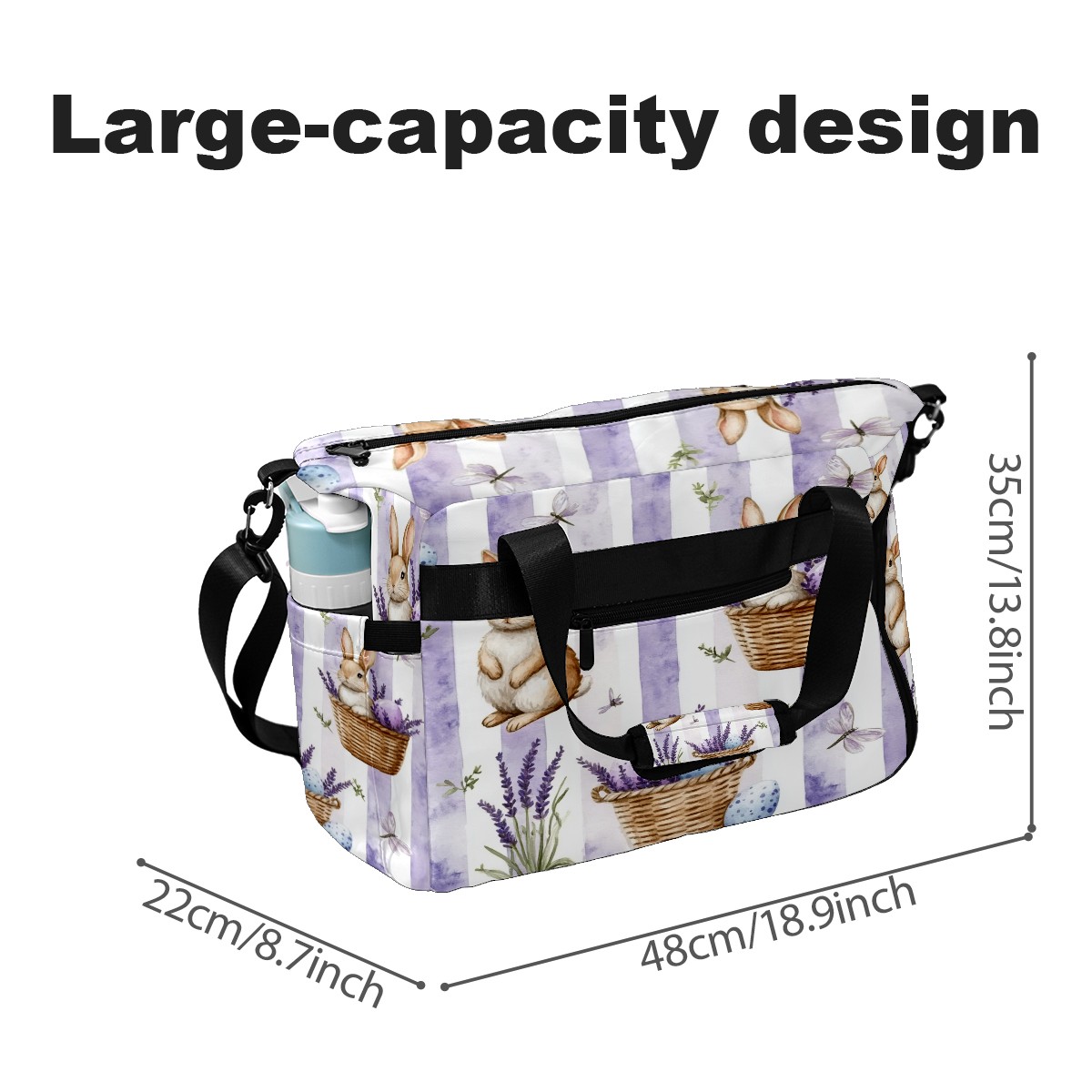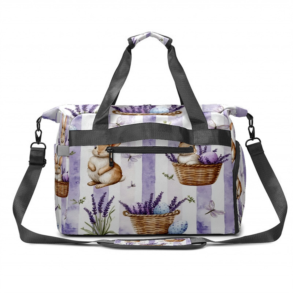 Pickleball Tote Bag Carryall for Paddles Balls and Accessories, Portable Lightweight Gear Bag for Players(Bunnies And Lavender)