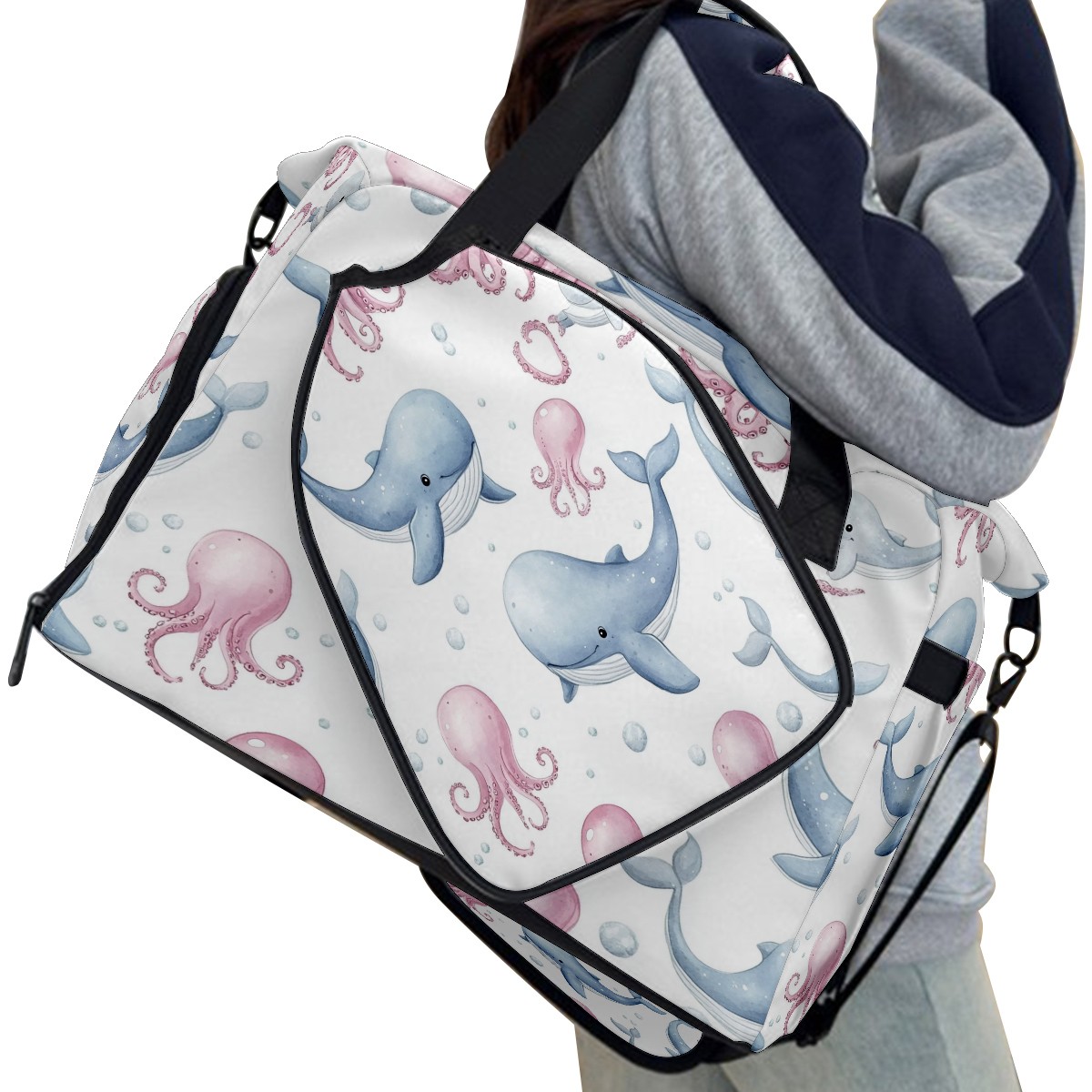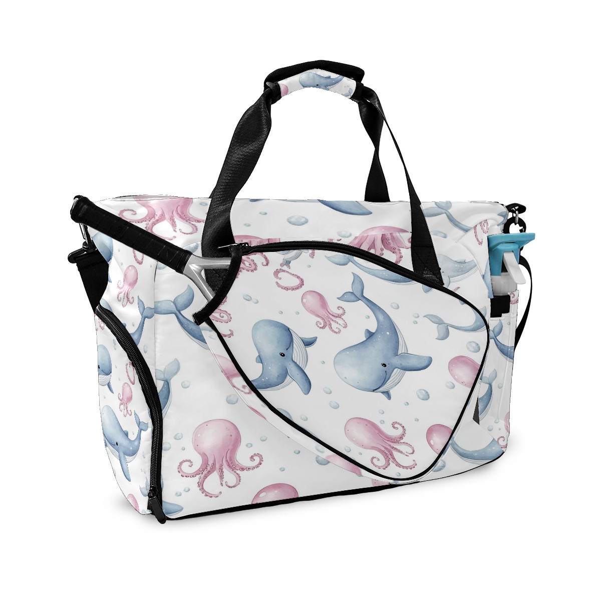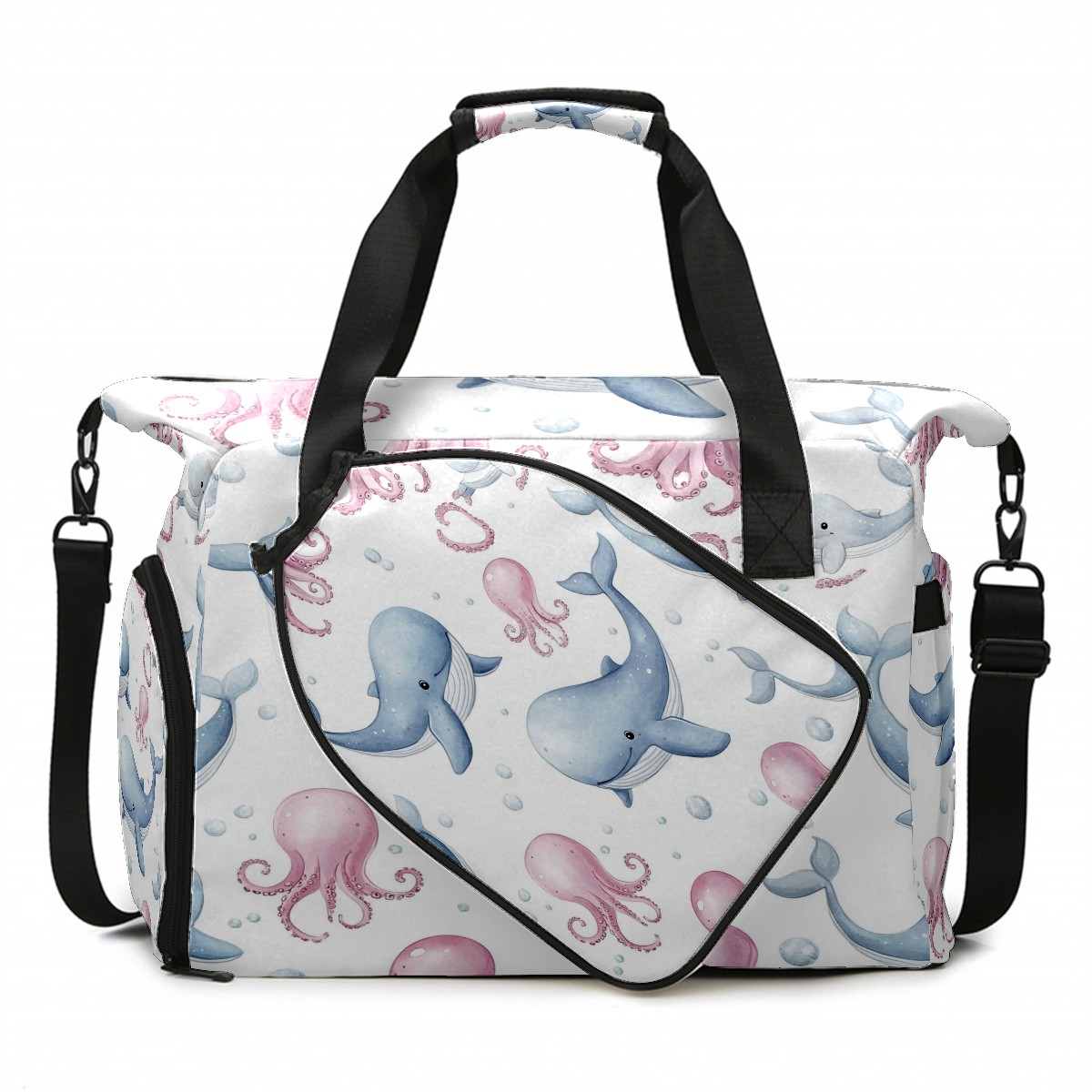 Pickleball Tote Bag Carryall for Paddles Balls and Accessories, Portable Lightweight Gear Bag for Players(Blue Whales)