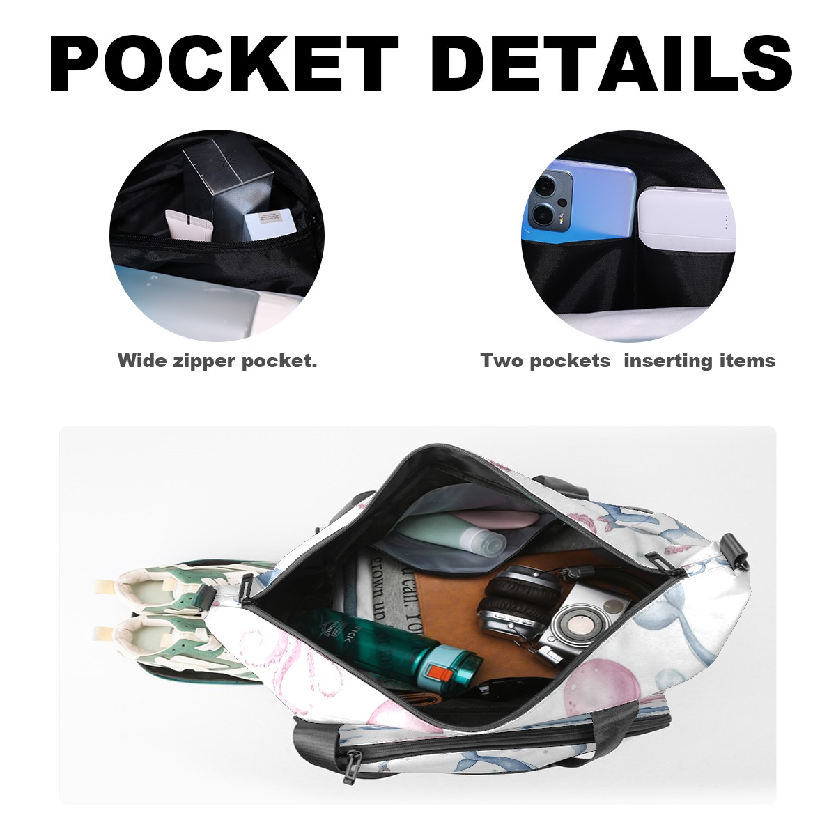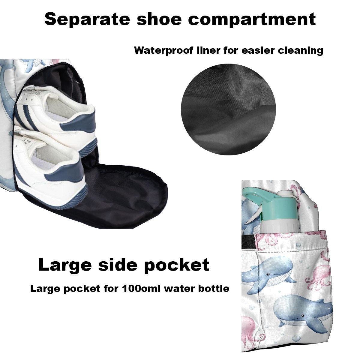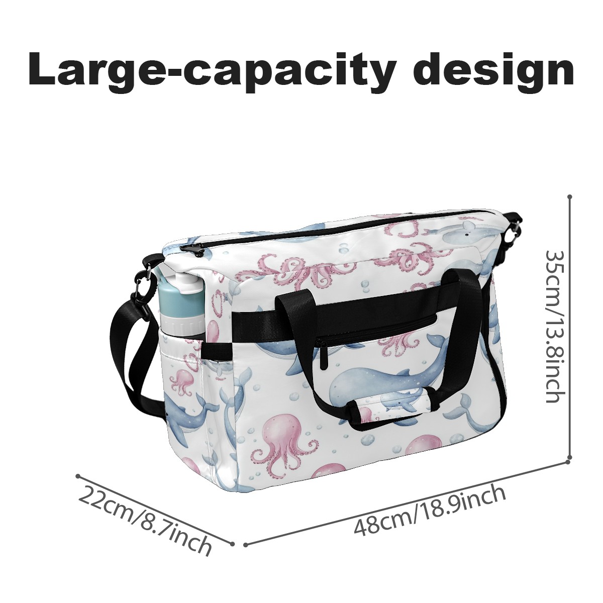Pickleball Tote Bag Carryall for Paddles Balls and Accessories, Portable Lightweight Gear Bag for Players(Blue Whales)