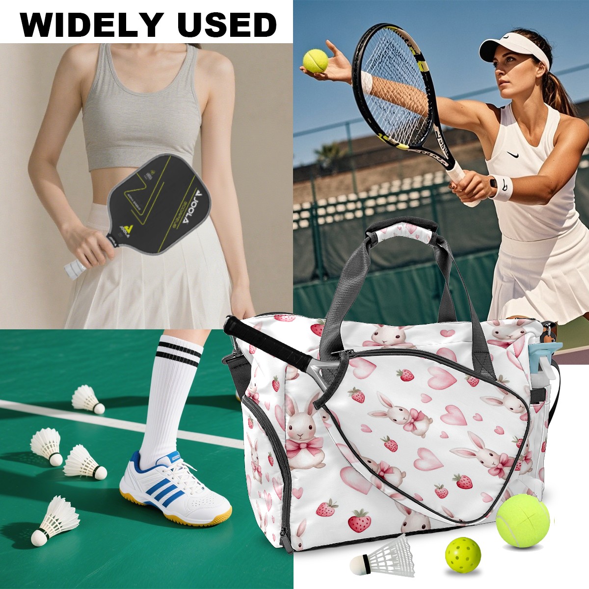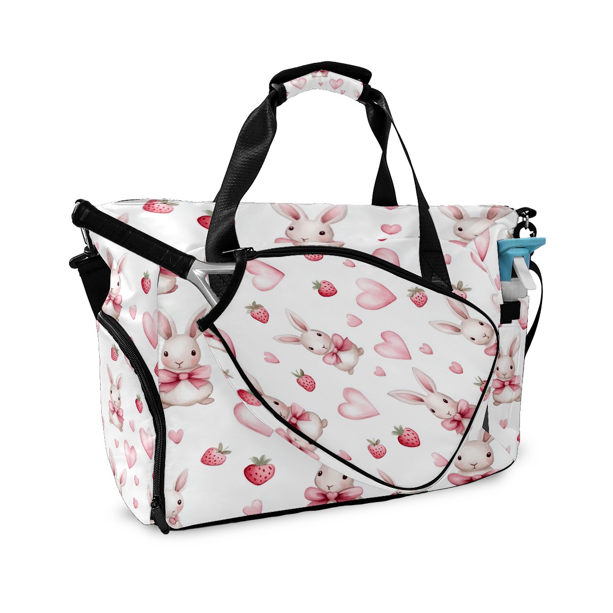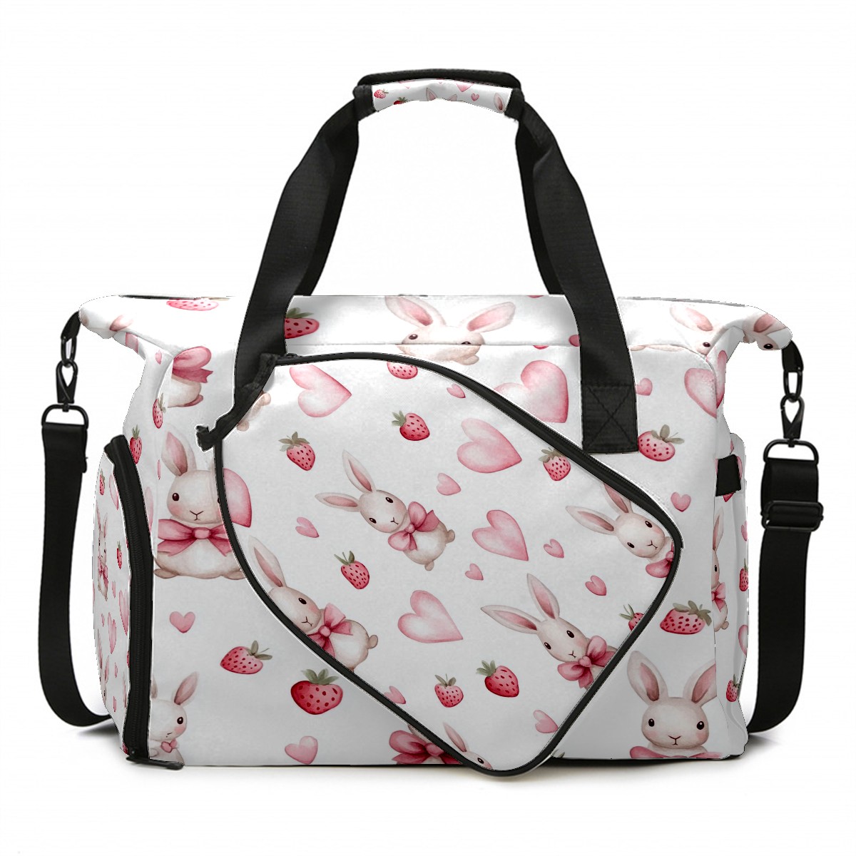 Pickleball Tote Bag Carryall for Paddles Balls and Accessories, Portable Lightweight Gear Bag for Players(Bunnies And Pink Heart)
