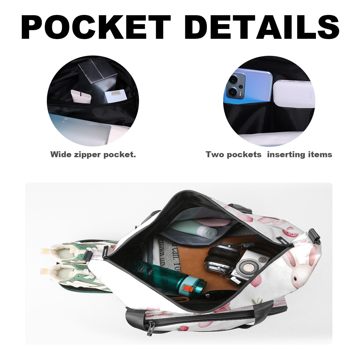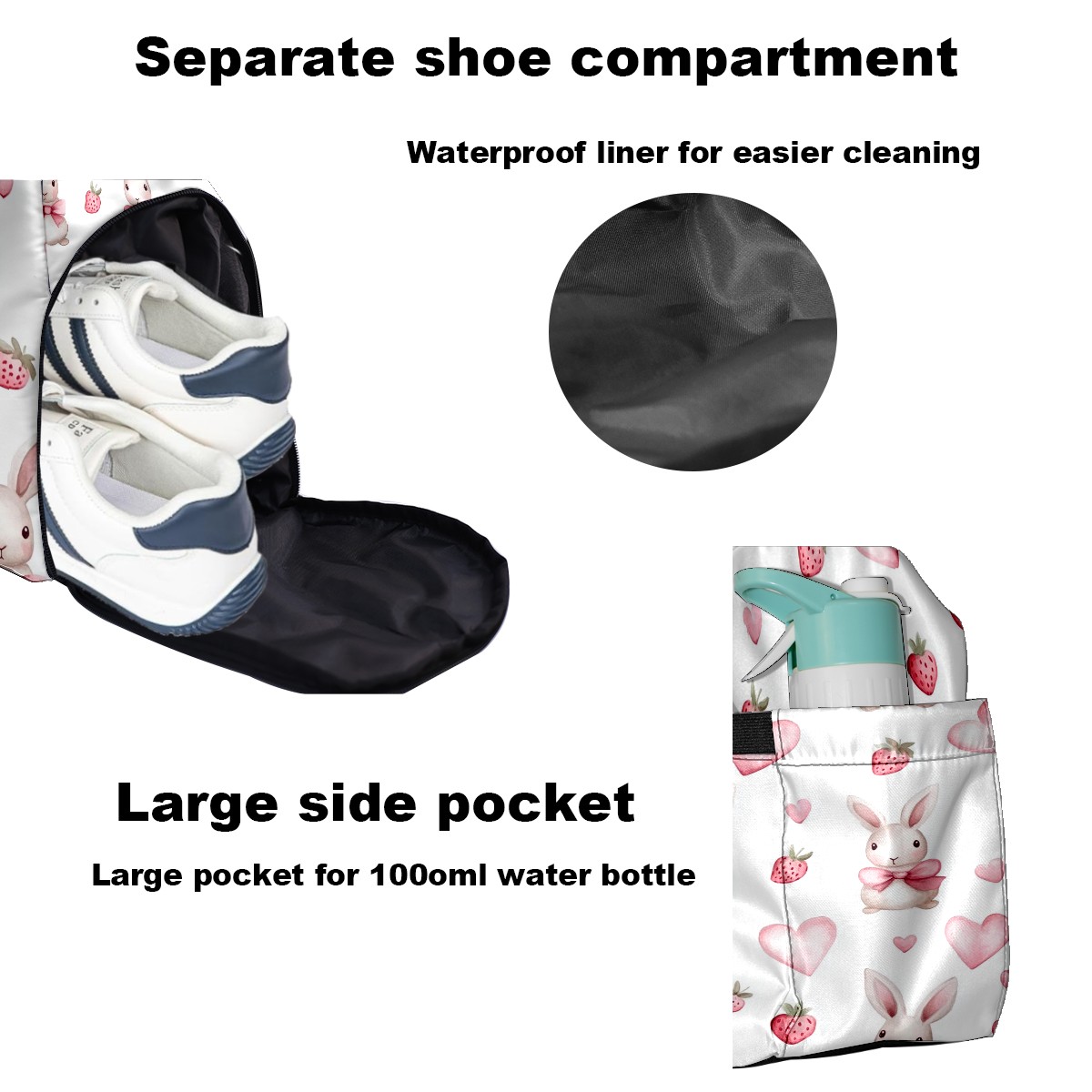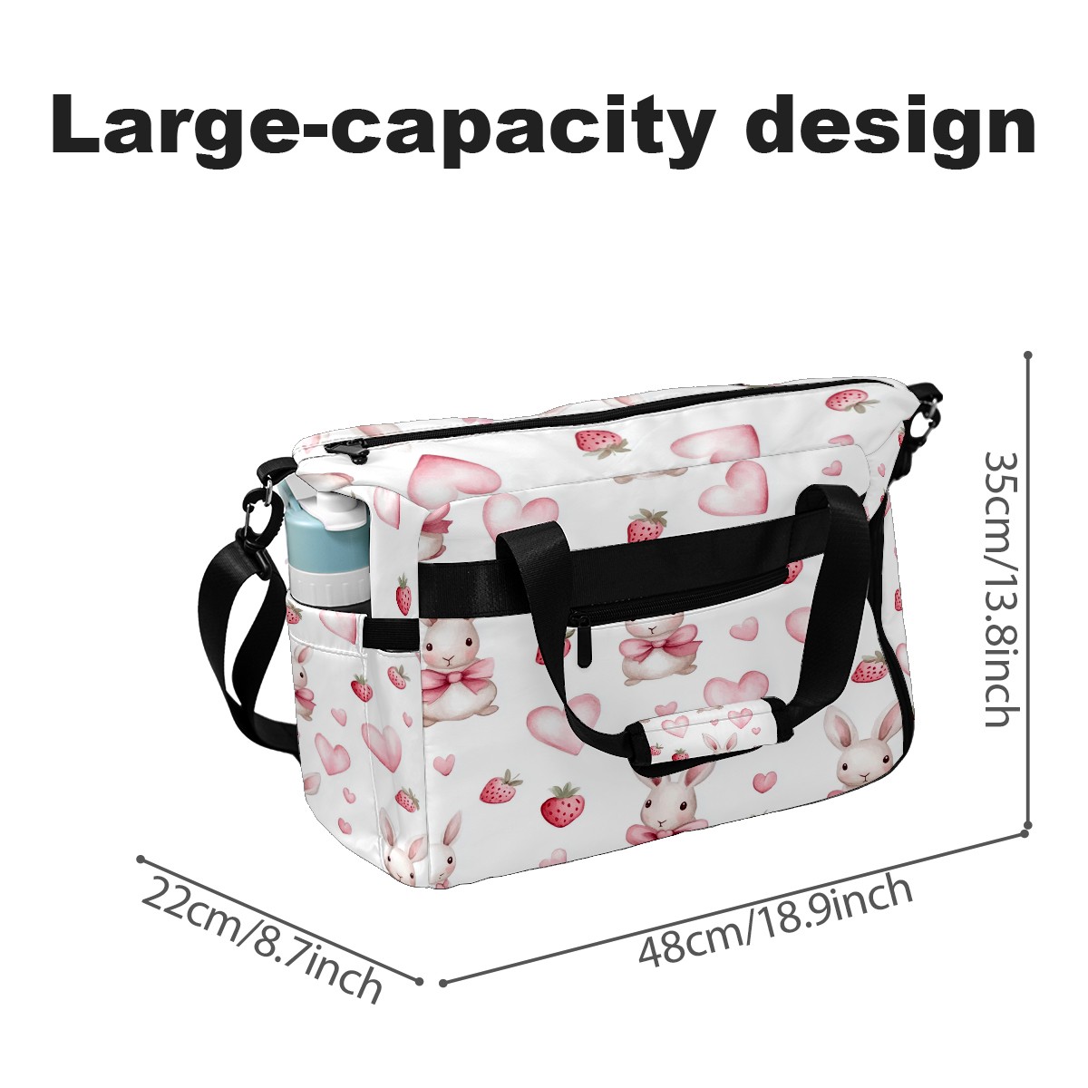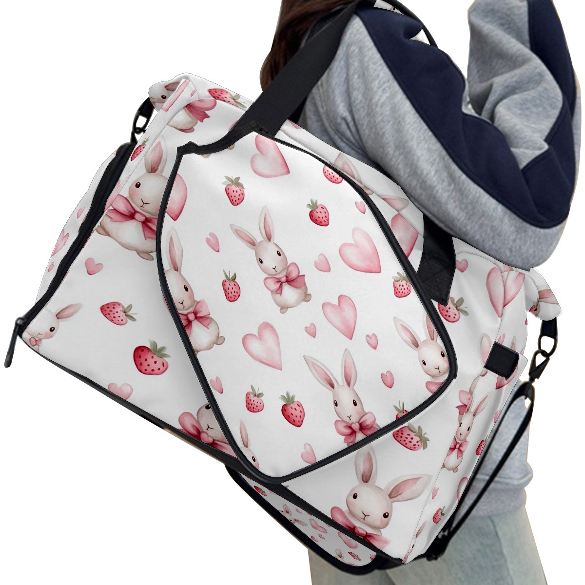 Pickleball Tote Bag Carryall for Paddles Balls and Accessories, Portable Lightweight Gear Bag for Players(Bunnies And Pink Heart)
