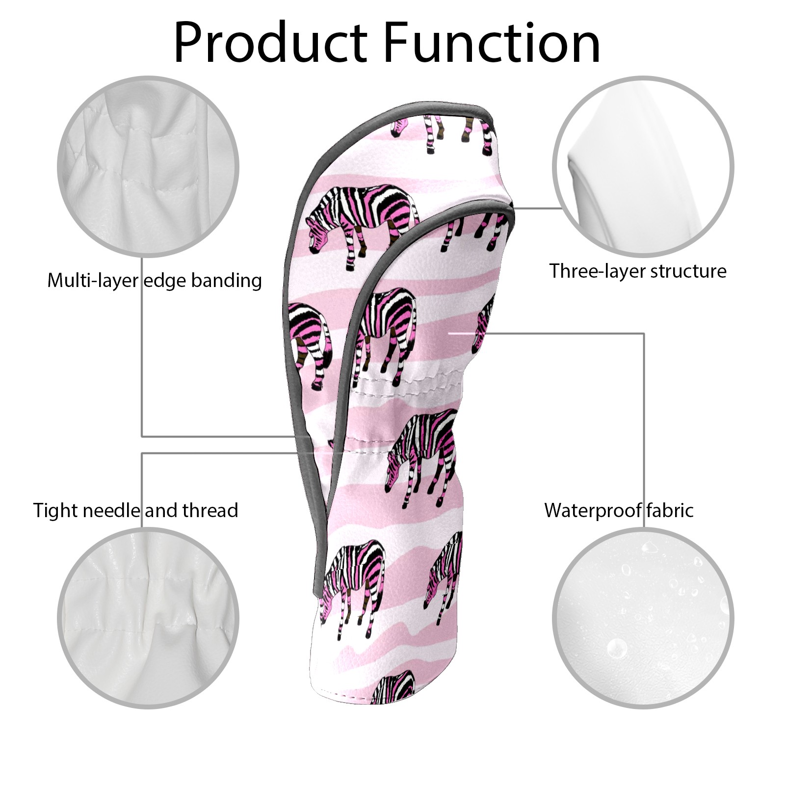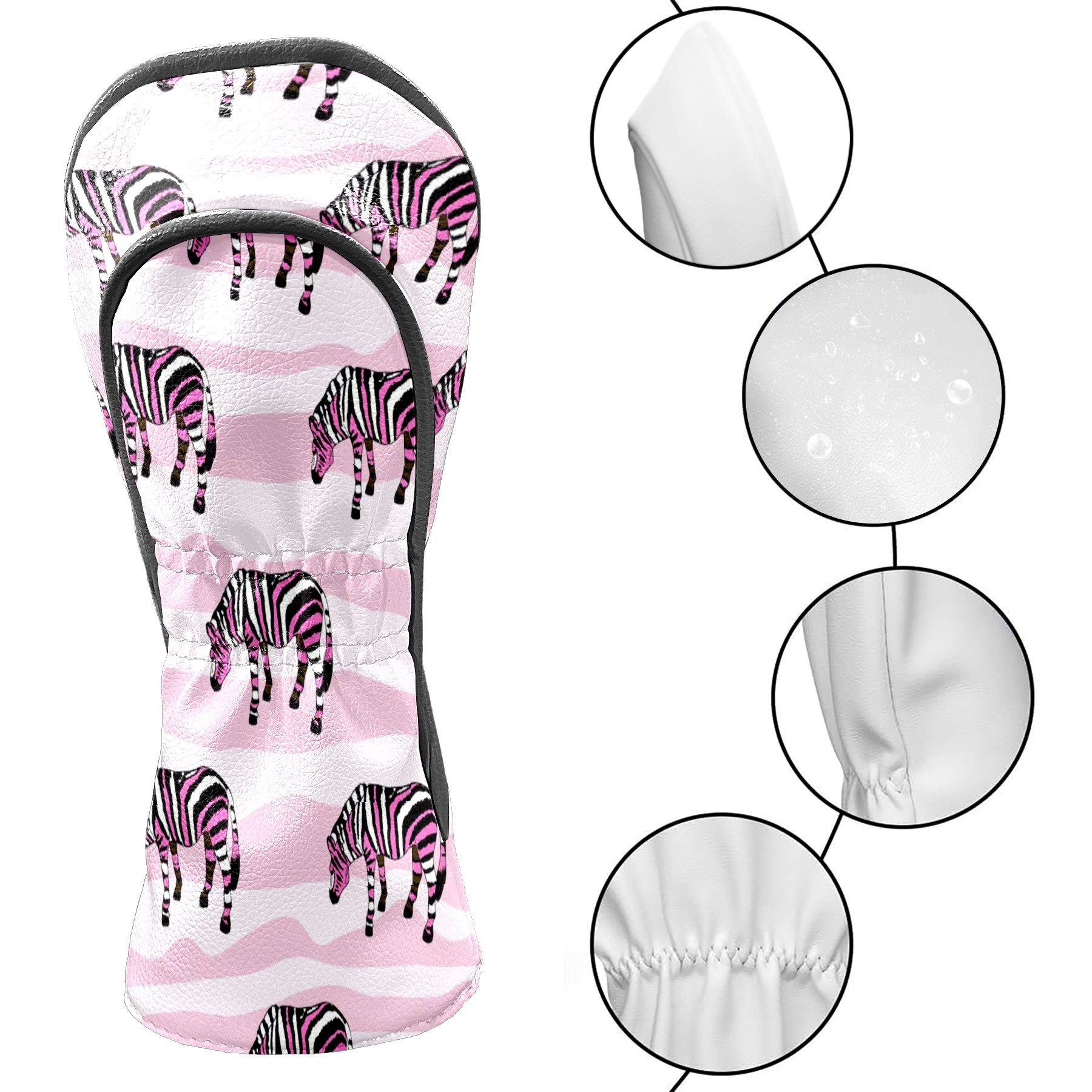 Golf Club Head Cover Waterproof Leather for Driver & Fairway Wood, Driver Headcovers, Golf Accessories for Men Women, Anti-Scratch, Golf Gift for Golfers, 1/3/5 Wood Cover Pink Zebra