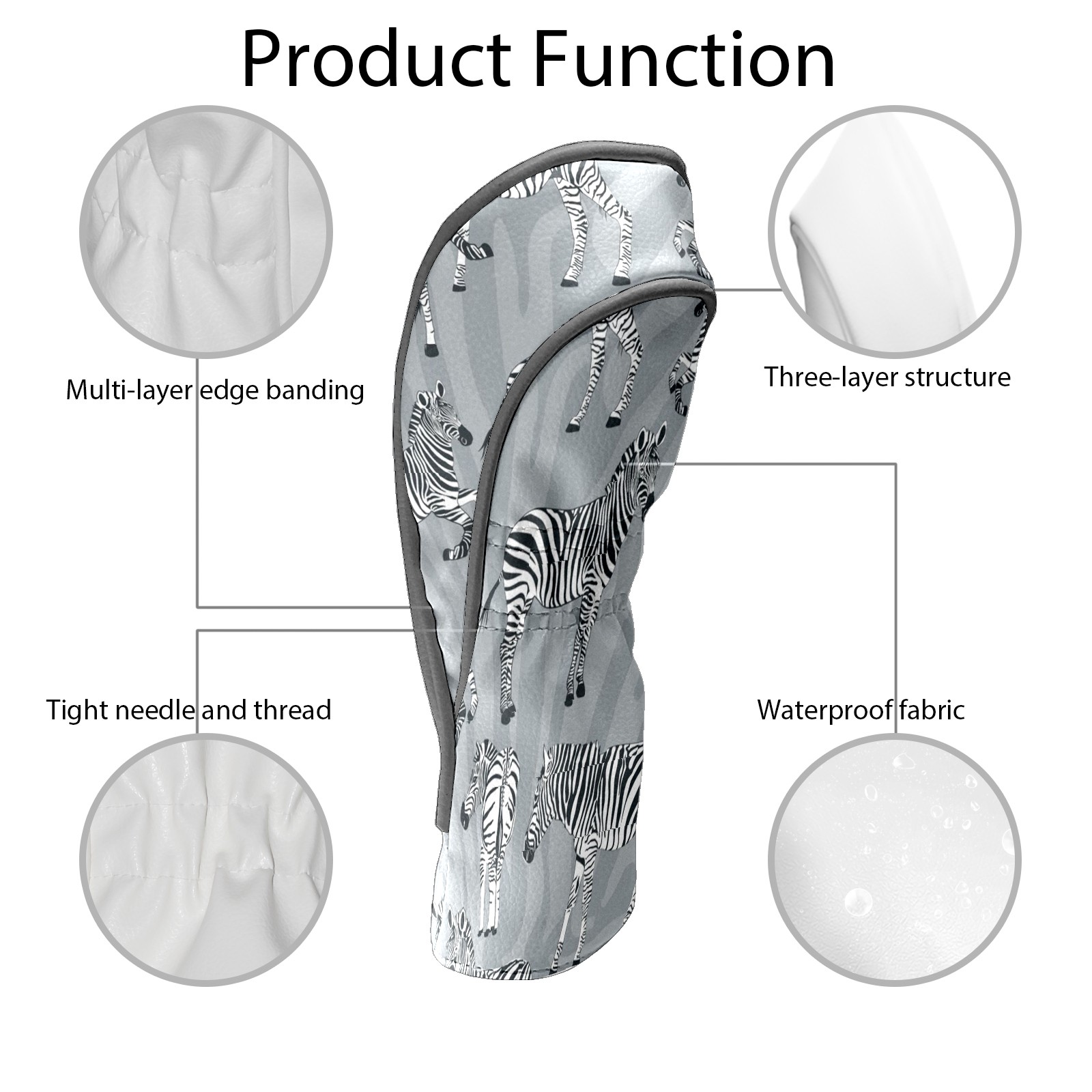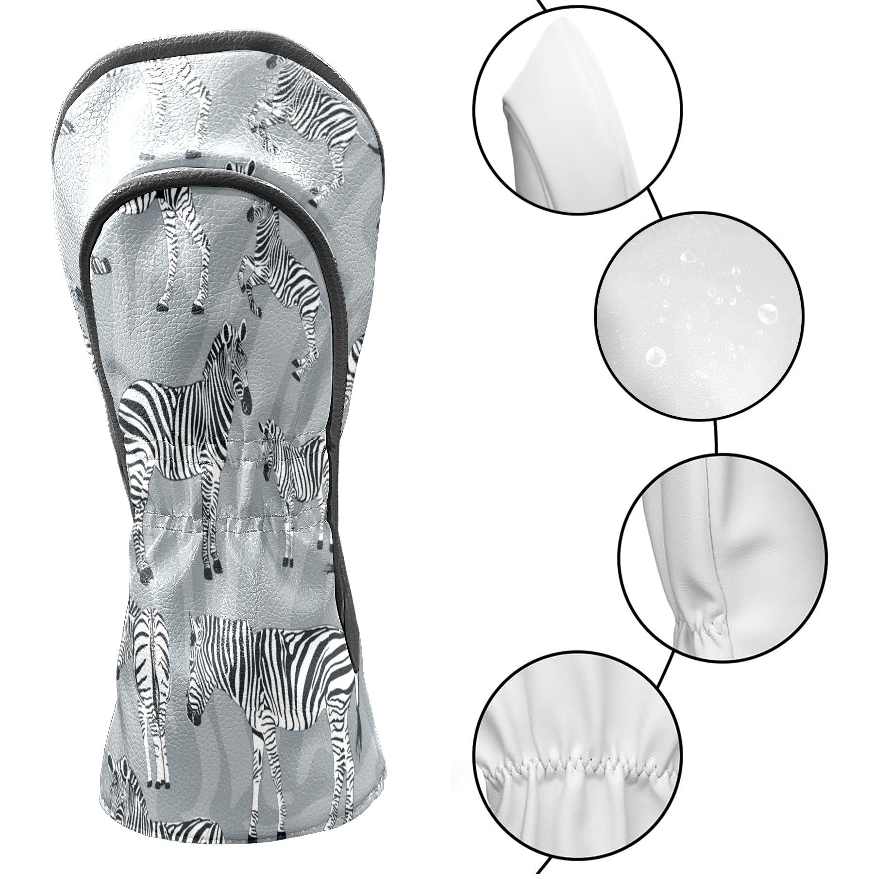 Golf Club Head Cover Waterproof Leather for Driver & Fairway Wood, Driver Headcovers, Golf Accessories for Men Women, Anti-Scratch, Golf Gift for Golfers, 1/3/5 Wood Cover Gray Zebra