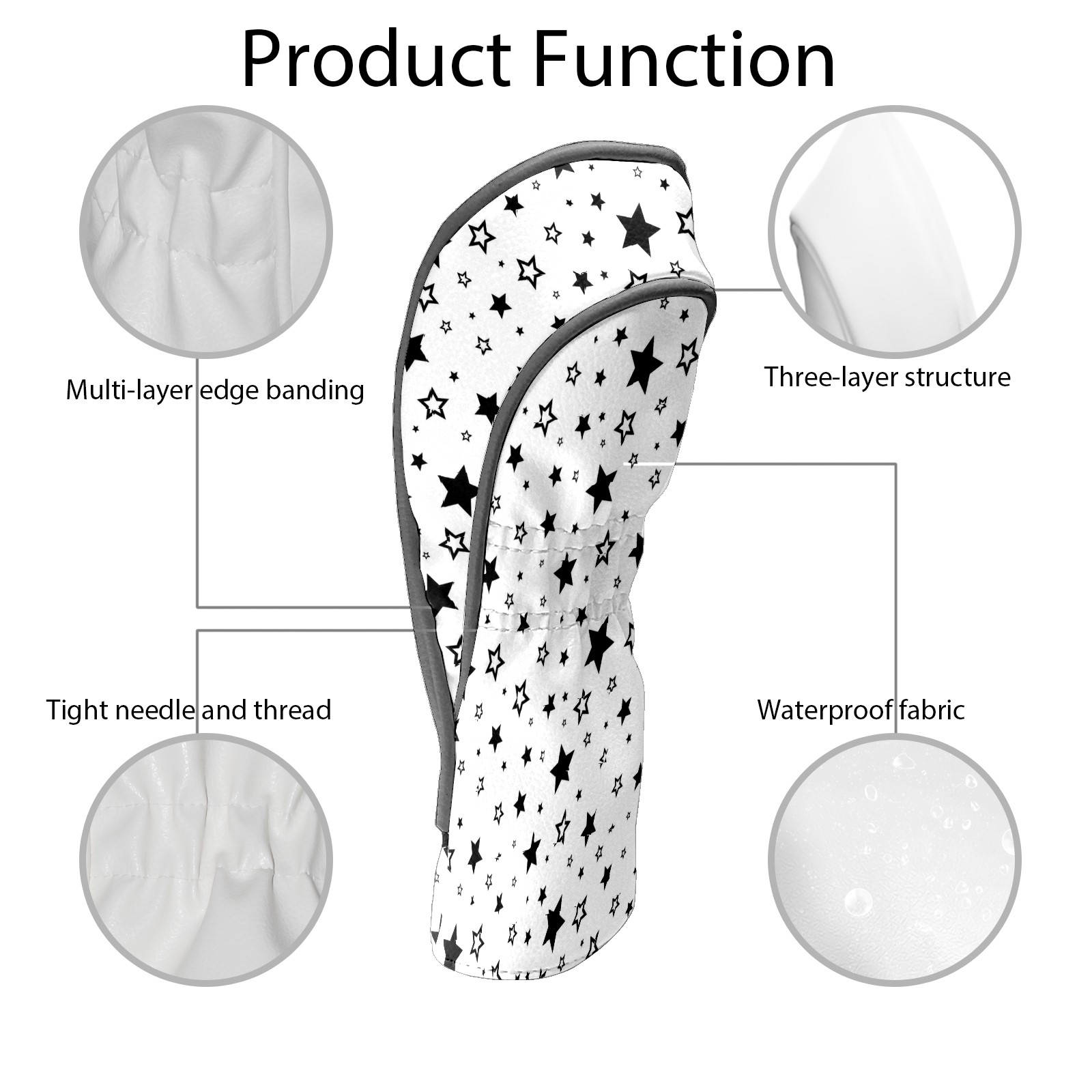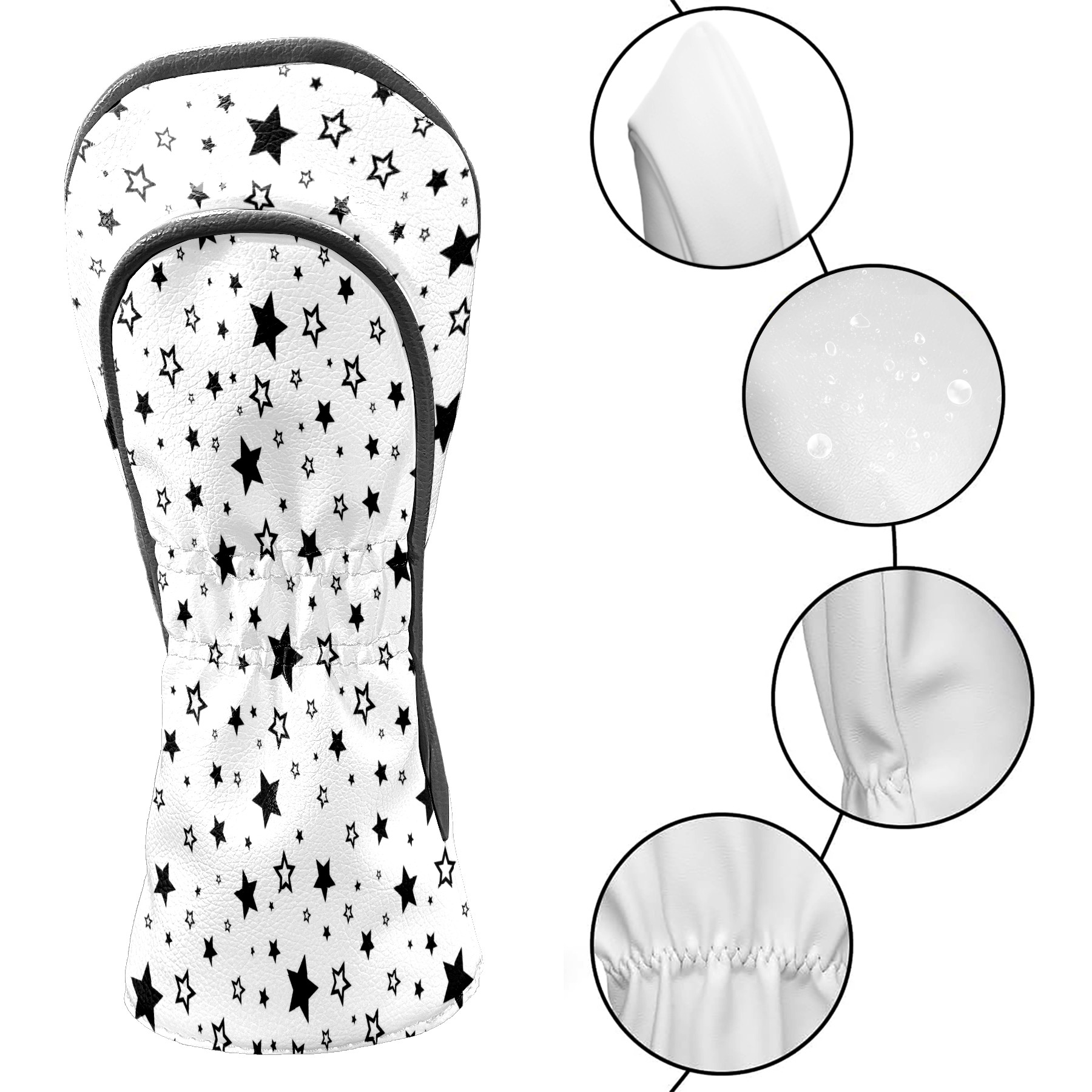 Golf Club Head Cover Waterproof Leather for Driver & Fairway Wood, Driver Headcovers, Golf Accessories for Men Women, Anti-Scratch, Golf Gift for Golfers, 1/3/5 Wood Cover Black Stars