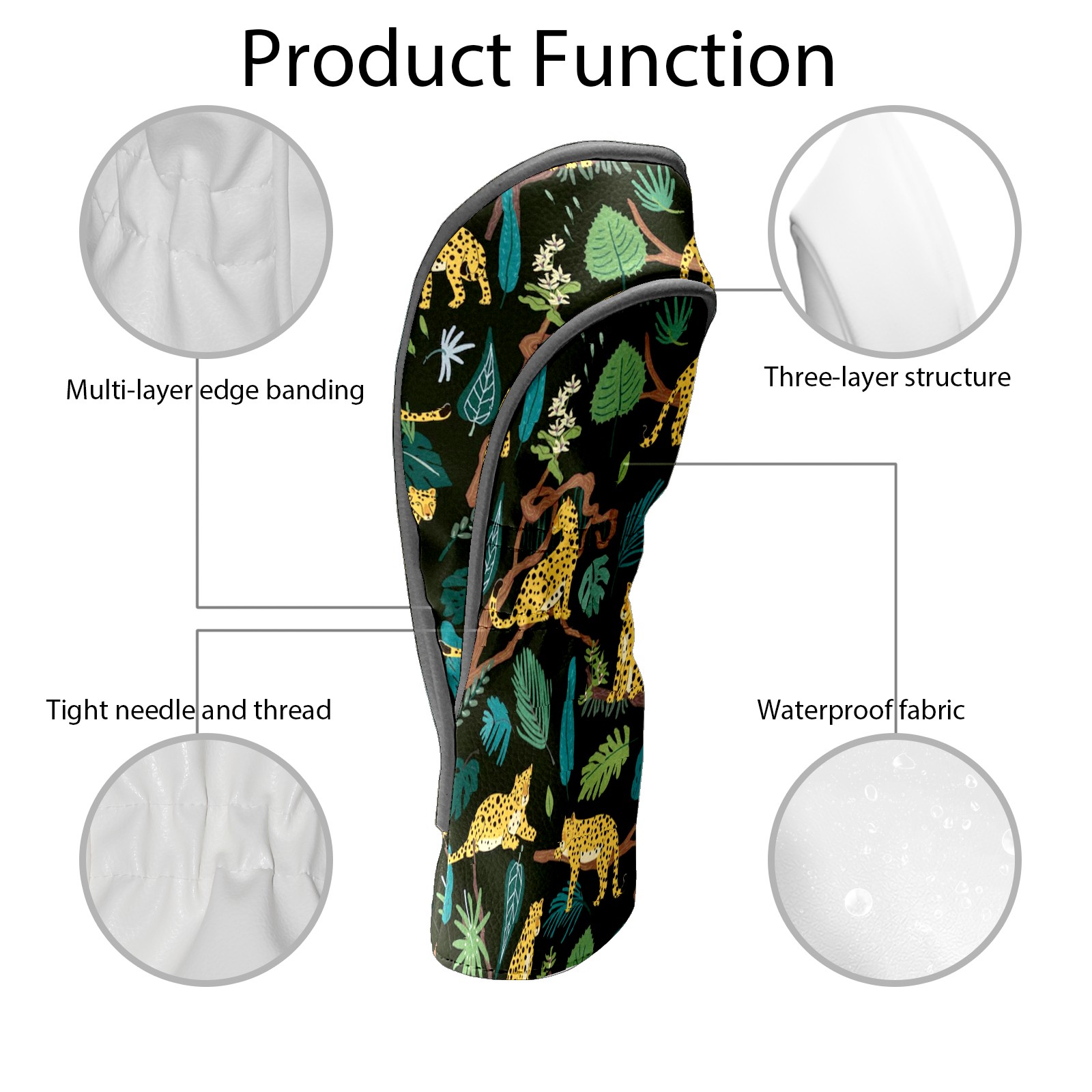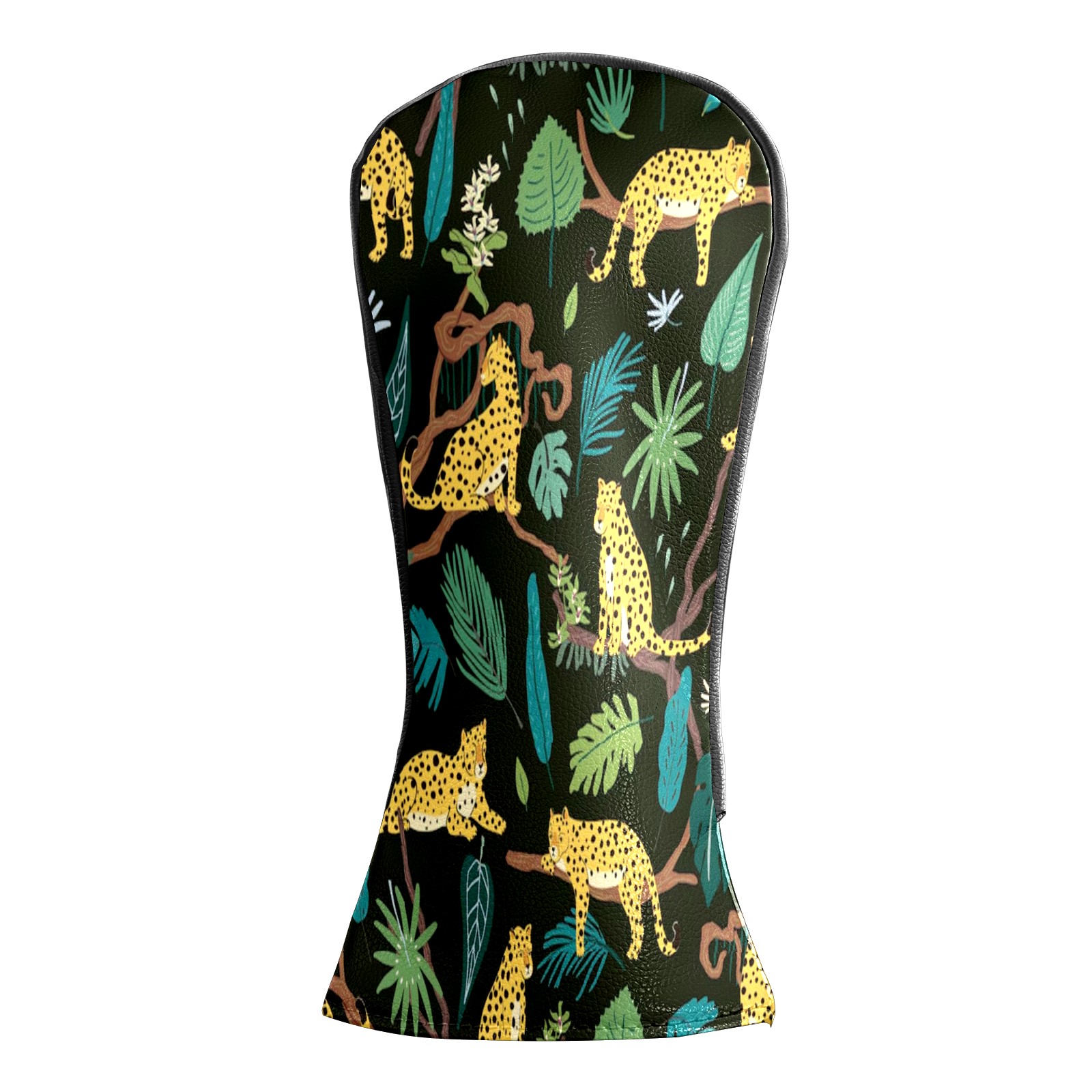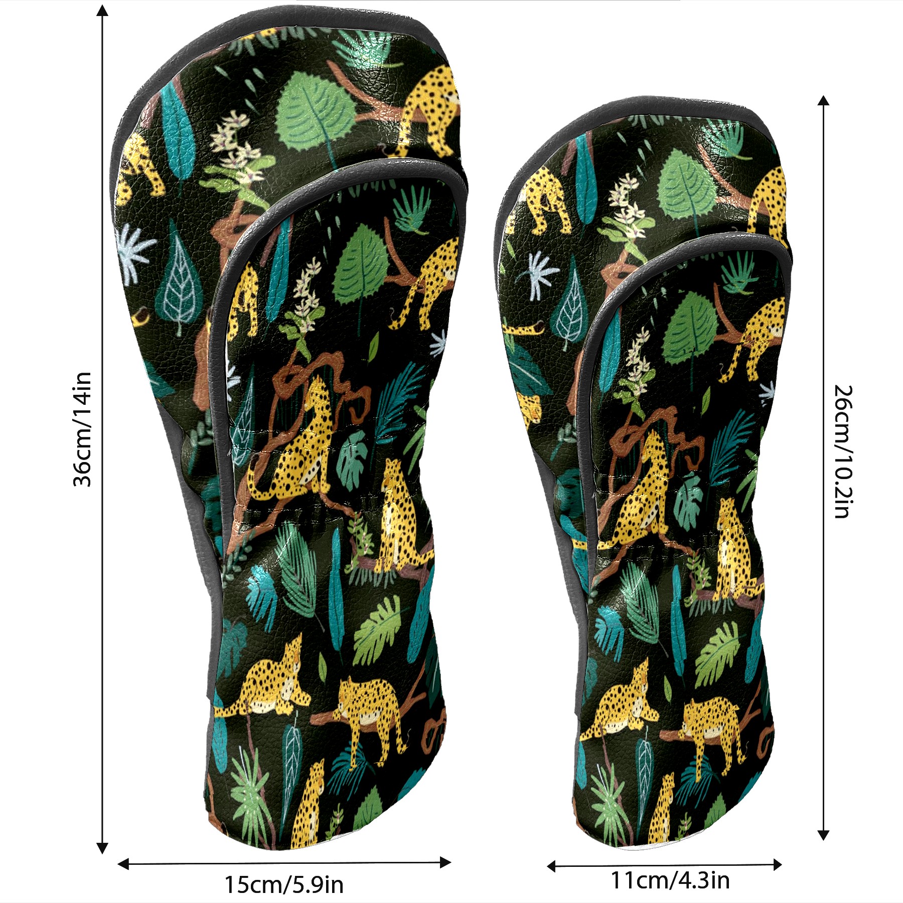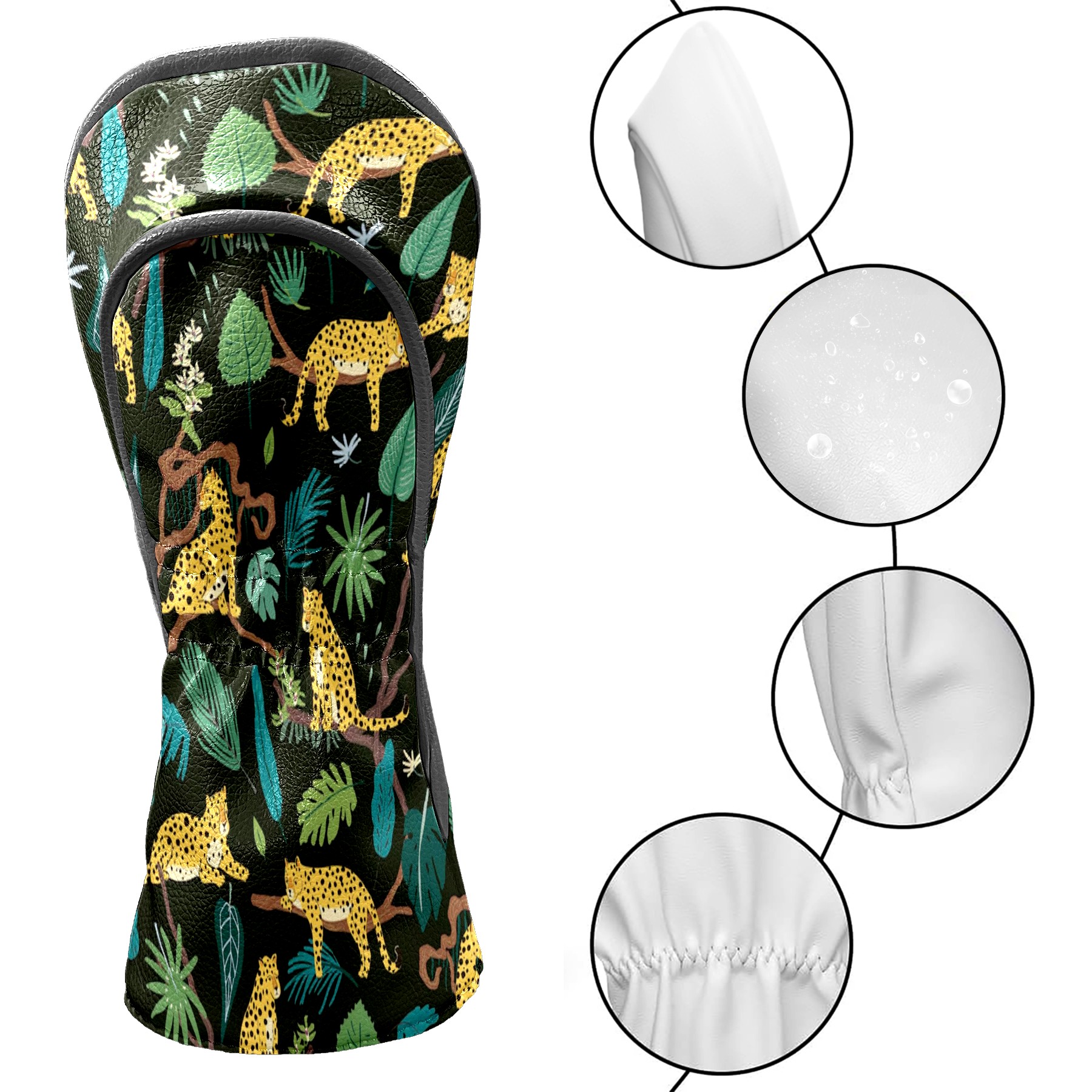 Golf Club Head Cover Waterproof Leather for Driver & Fairway Wood, Driver Headcovers, Golf Accessories for Men Women, Anti-Scratch, Golf Gift for Golfers, 1/3/5 Wood Cover Yellow Leopard Forest